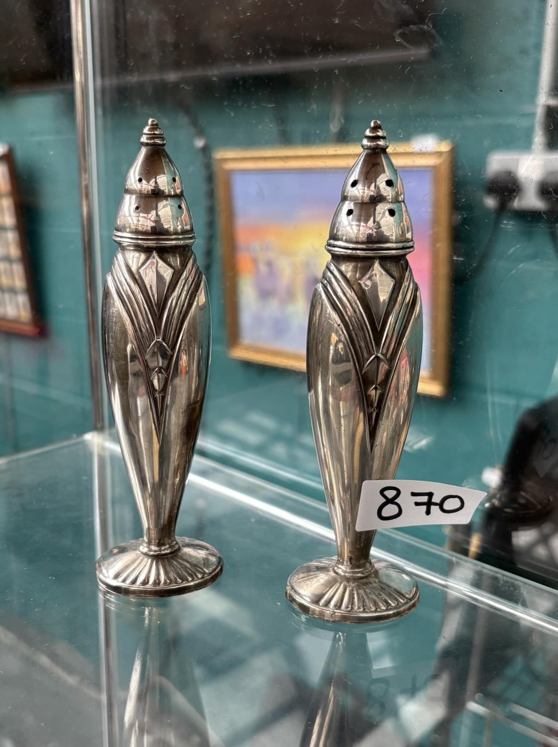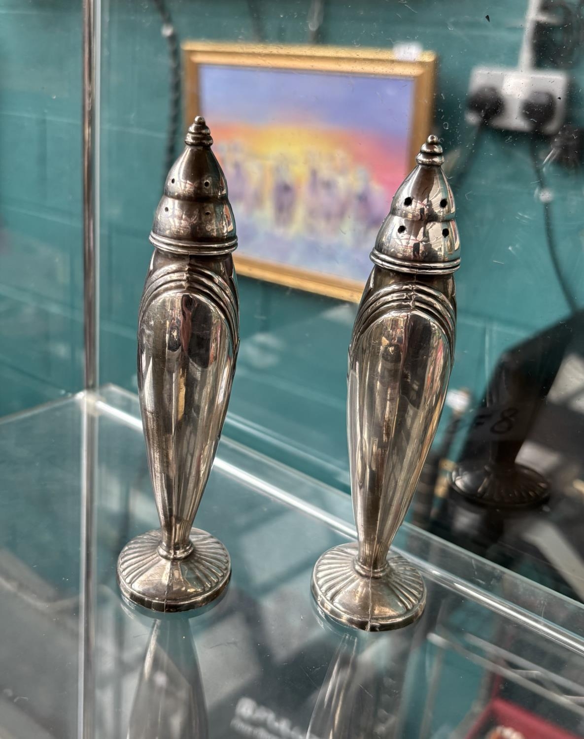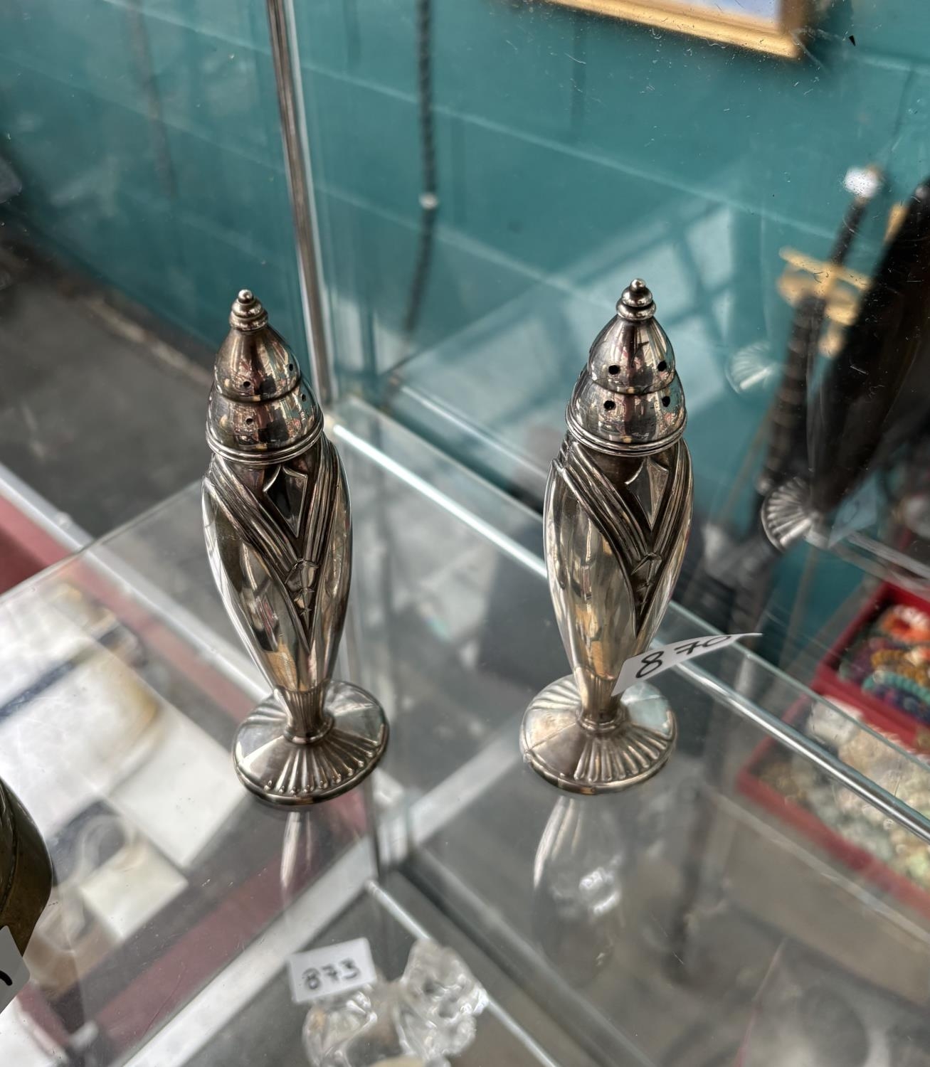 Pair of 5.5" Art Deco plated salt & peppers
