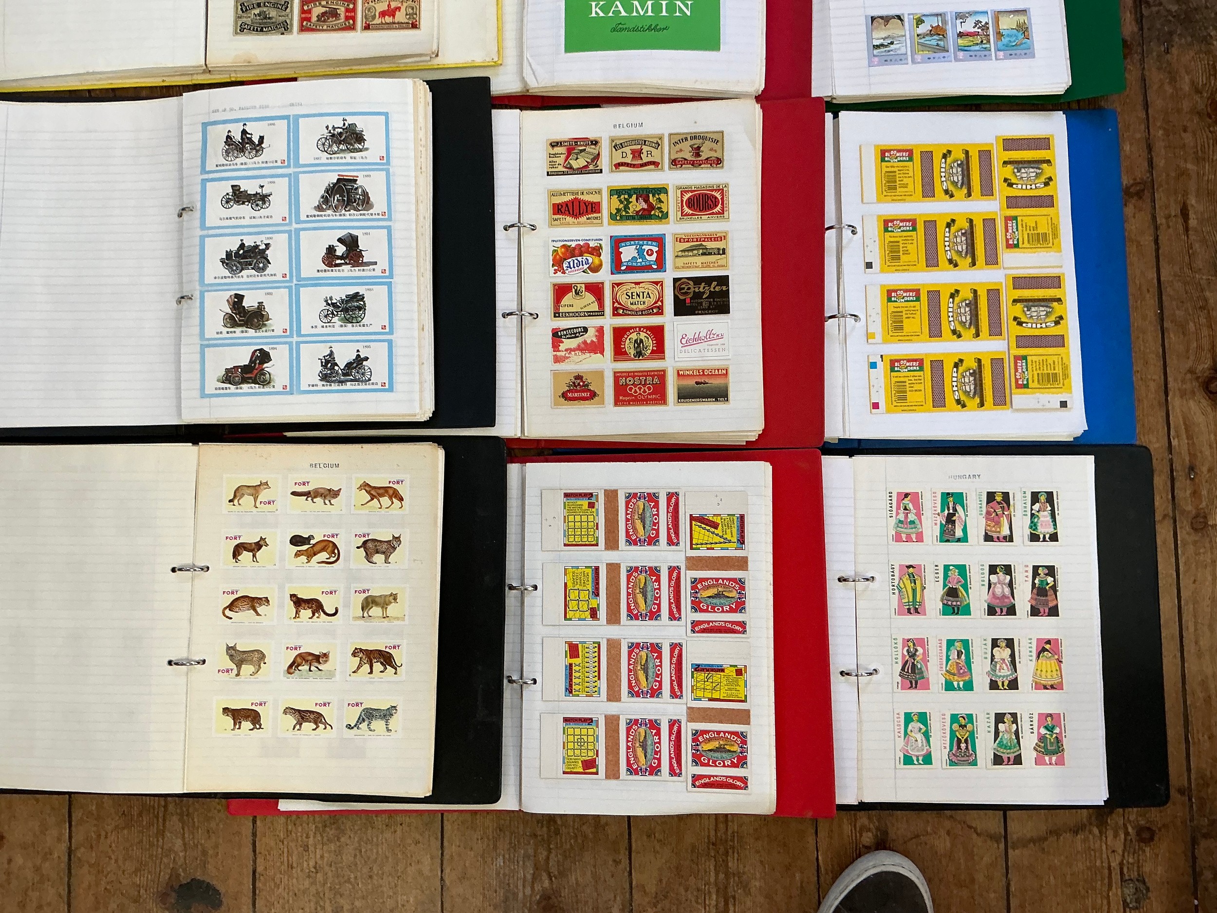 A Large Collection of Nine Albums of Vintage Matchbox Labels & Matchboxes from all over the World to include Hungary, Belgium, China, Ireland, etc. Needs Viewing.