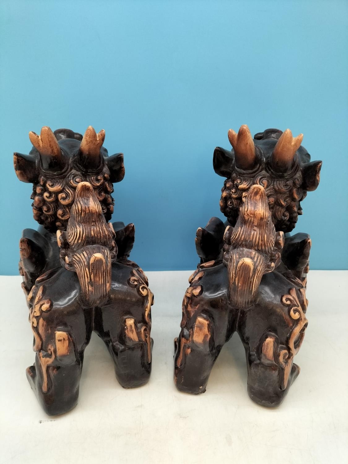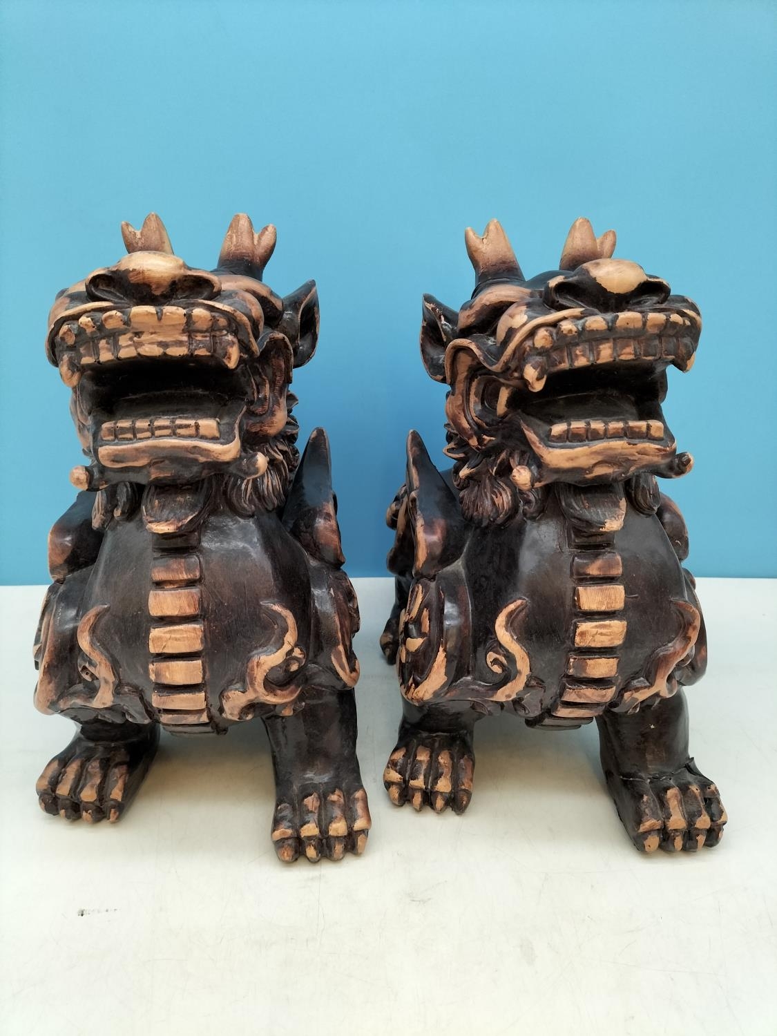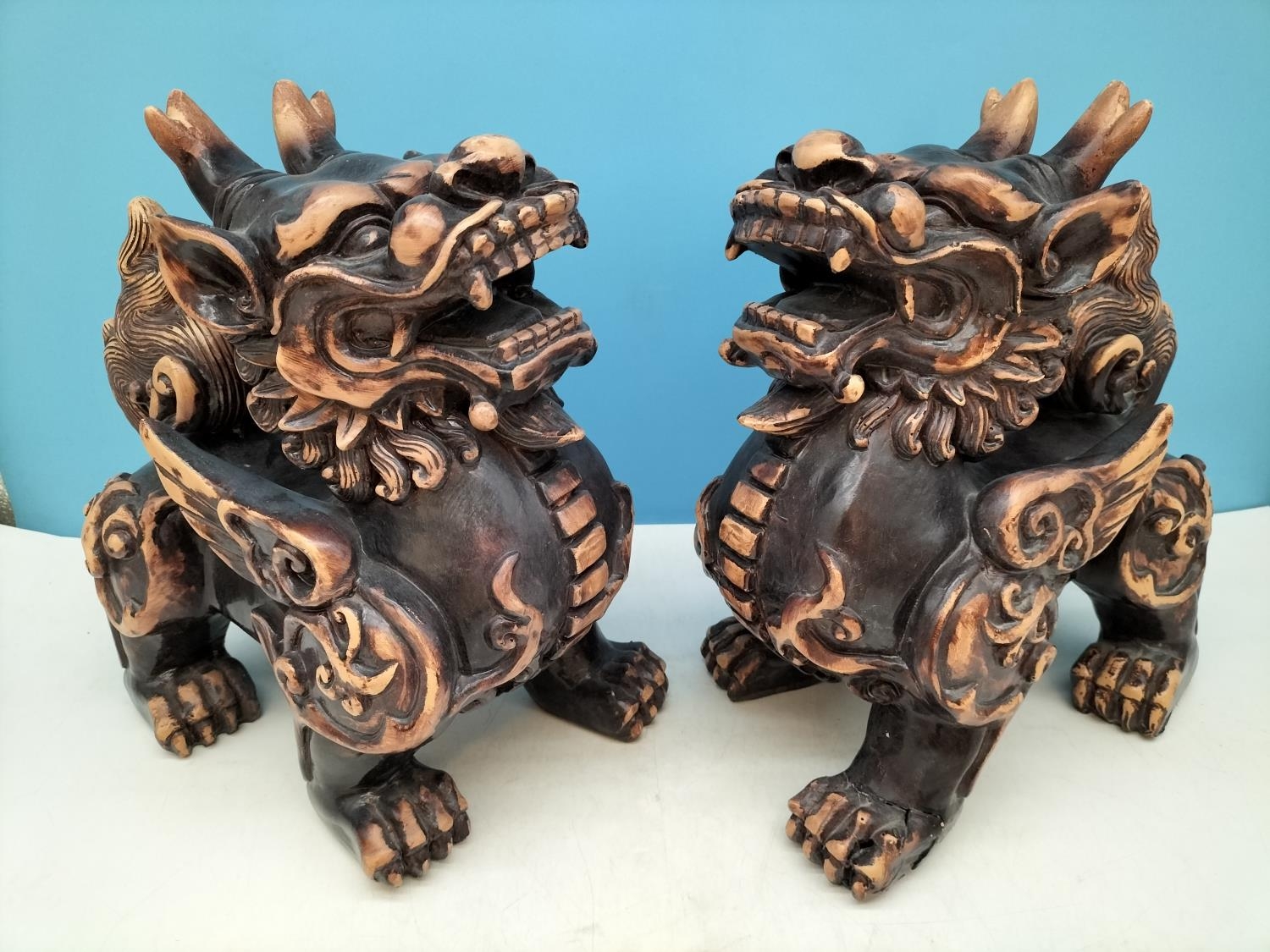Large Pair of Resin Foo Dogs. 29cm High, 27cm x 17cm. Damage to One Foot.