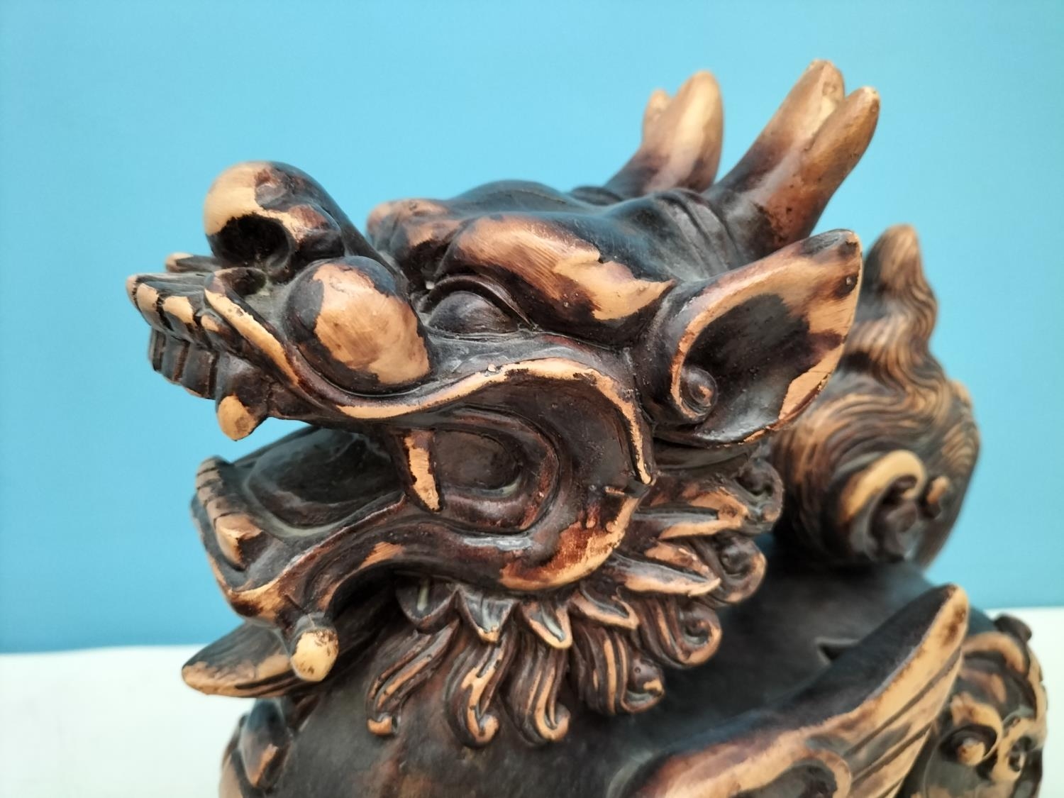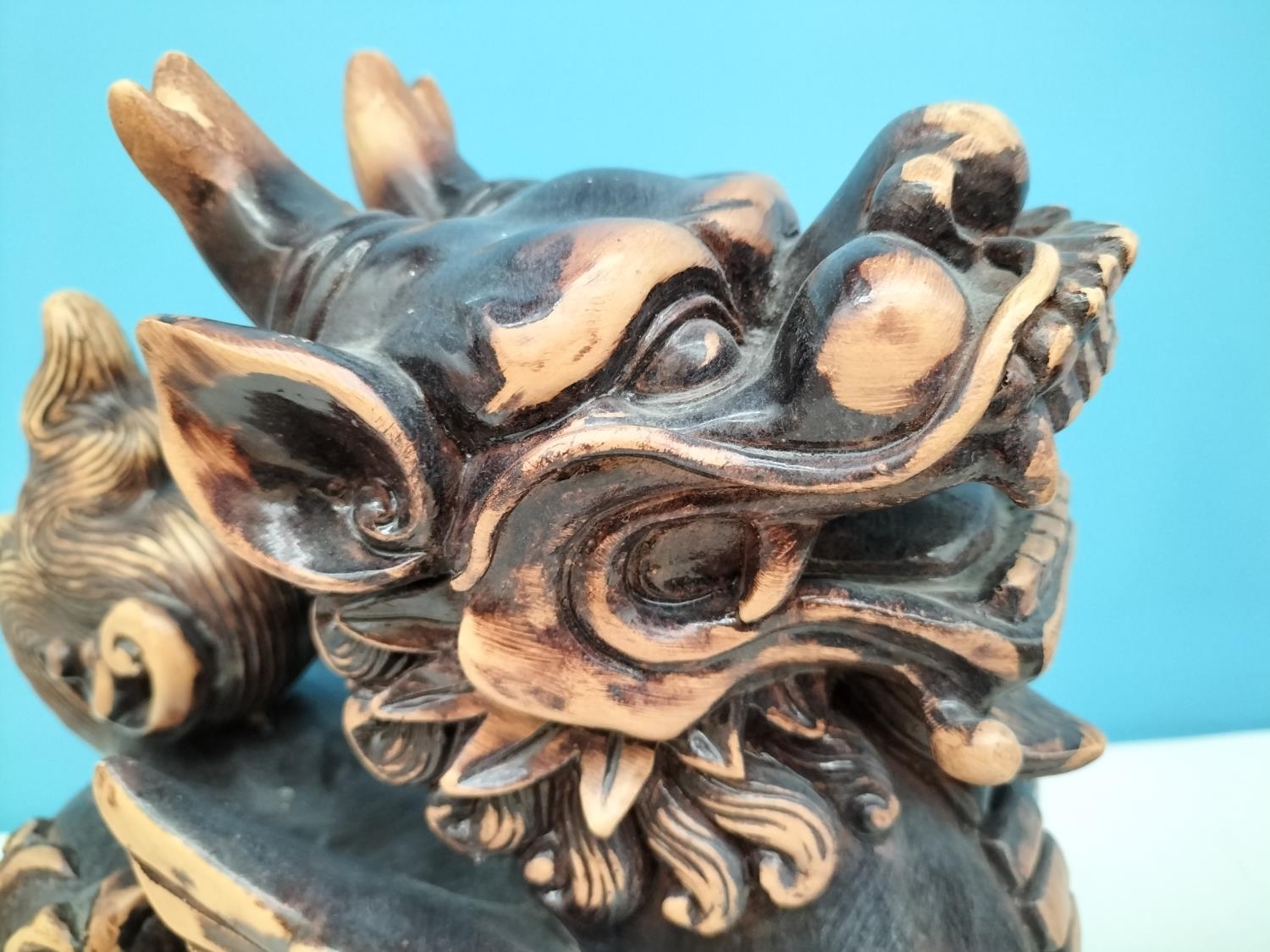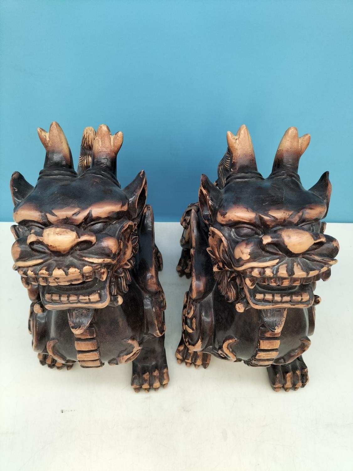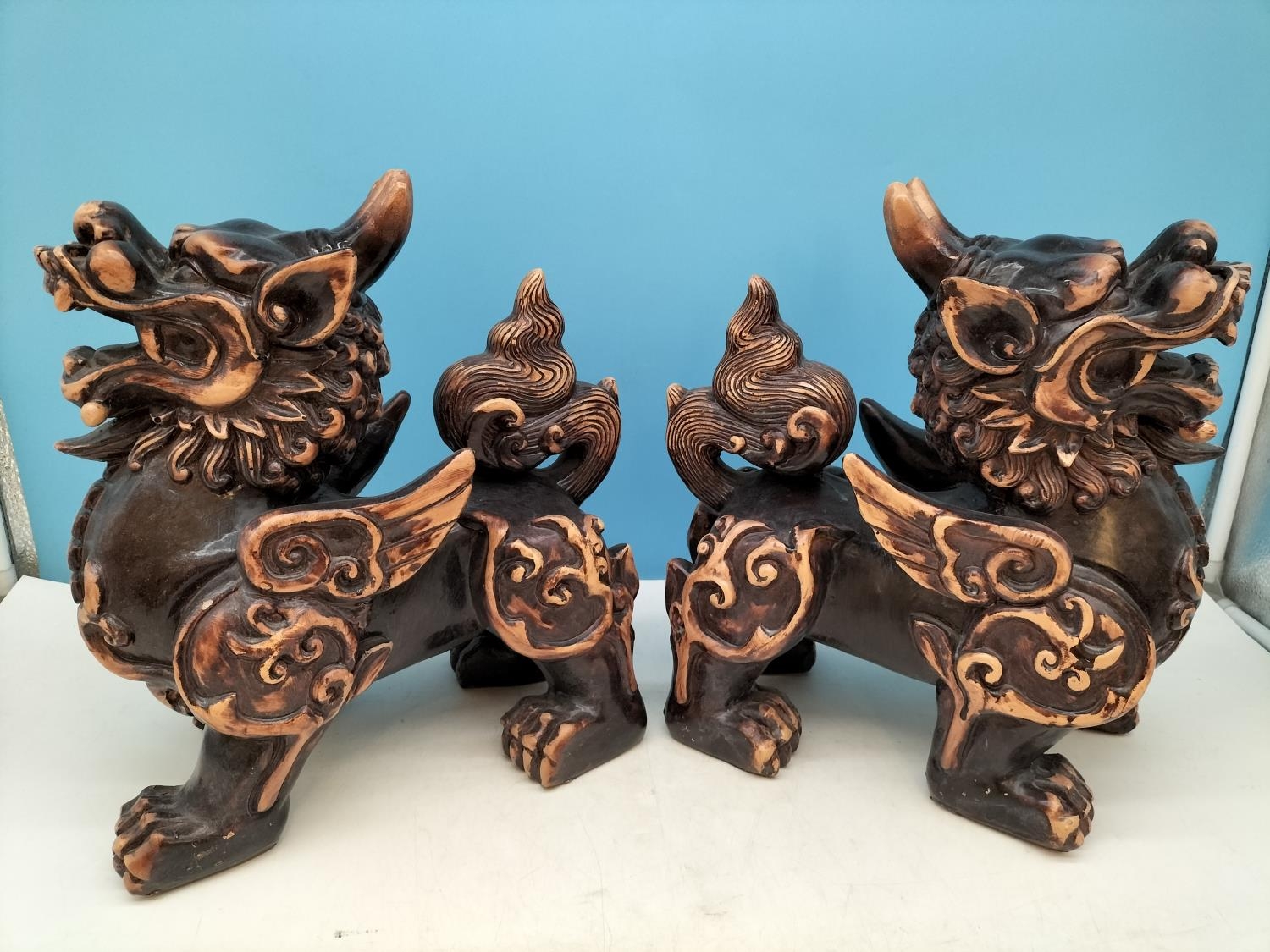 Large Pair of Resin Foo Dogs. 29cm High, 27cm x 17cm. Damage to One Foot.