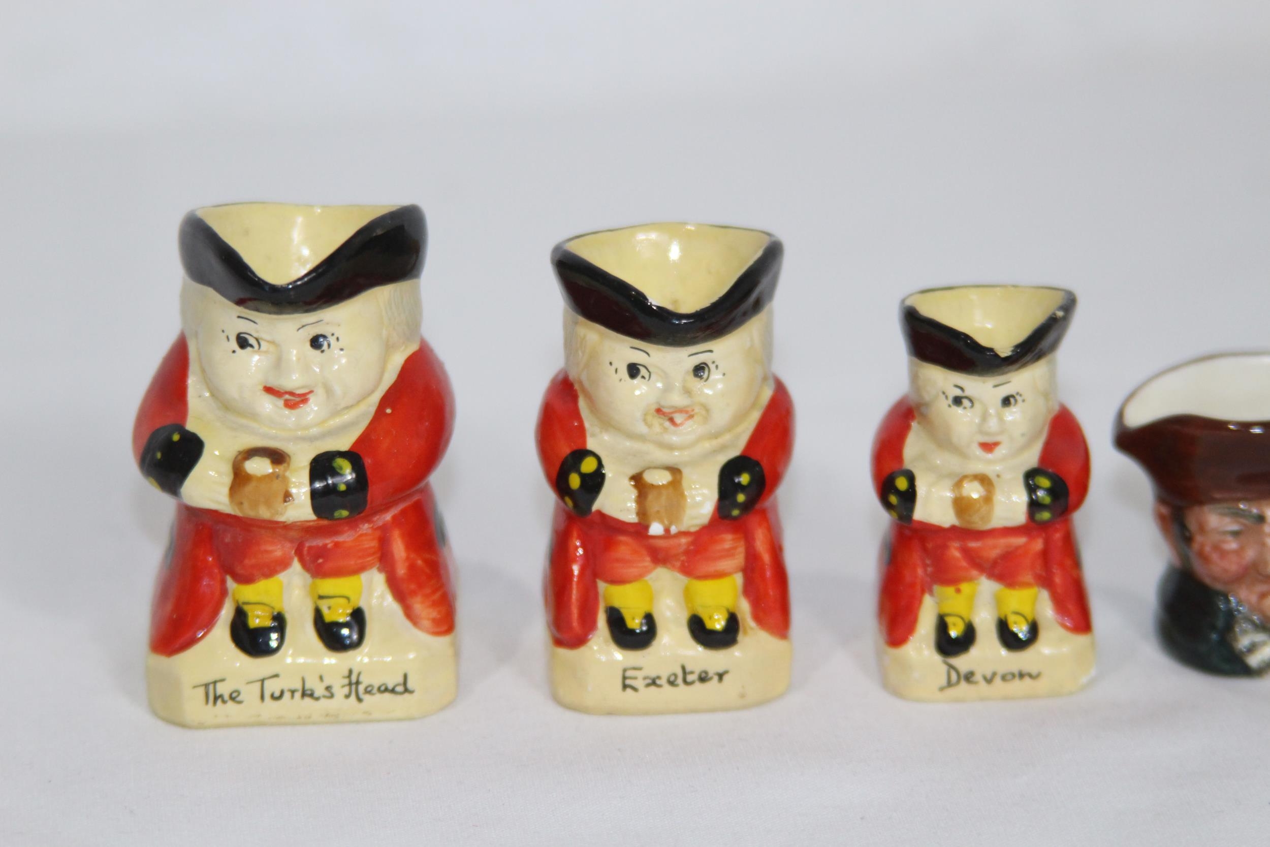 QUANTITY OF MINIATURE TOBY JUGS MOSTLY ROYAL DOULTON6cm