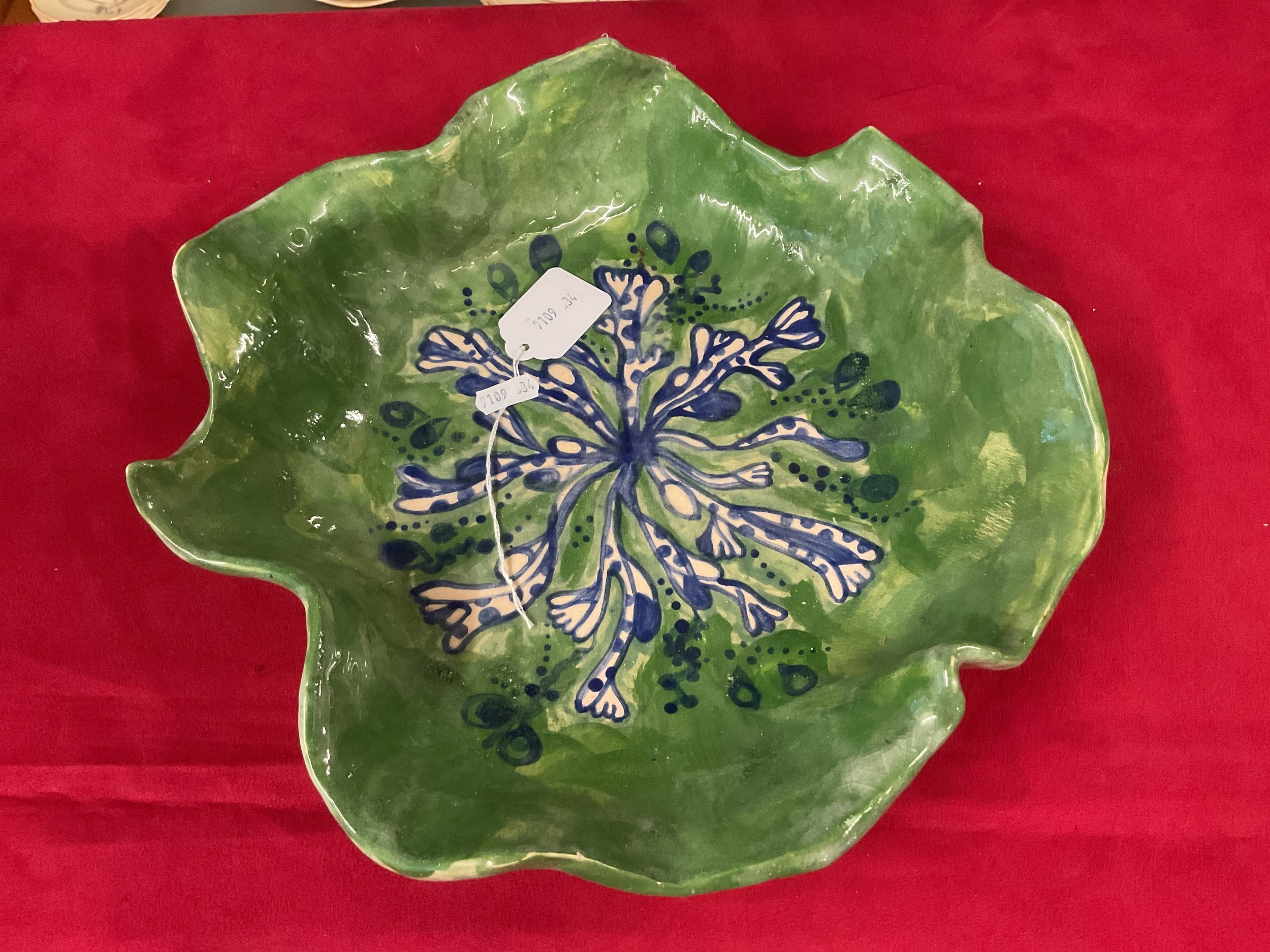 A green and blue glazed studio pottery bowl