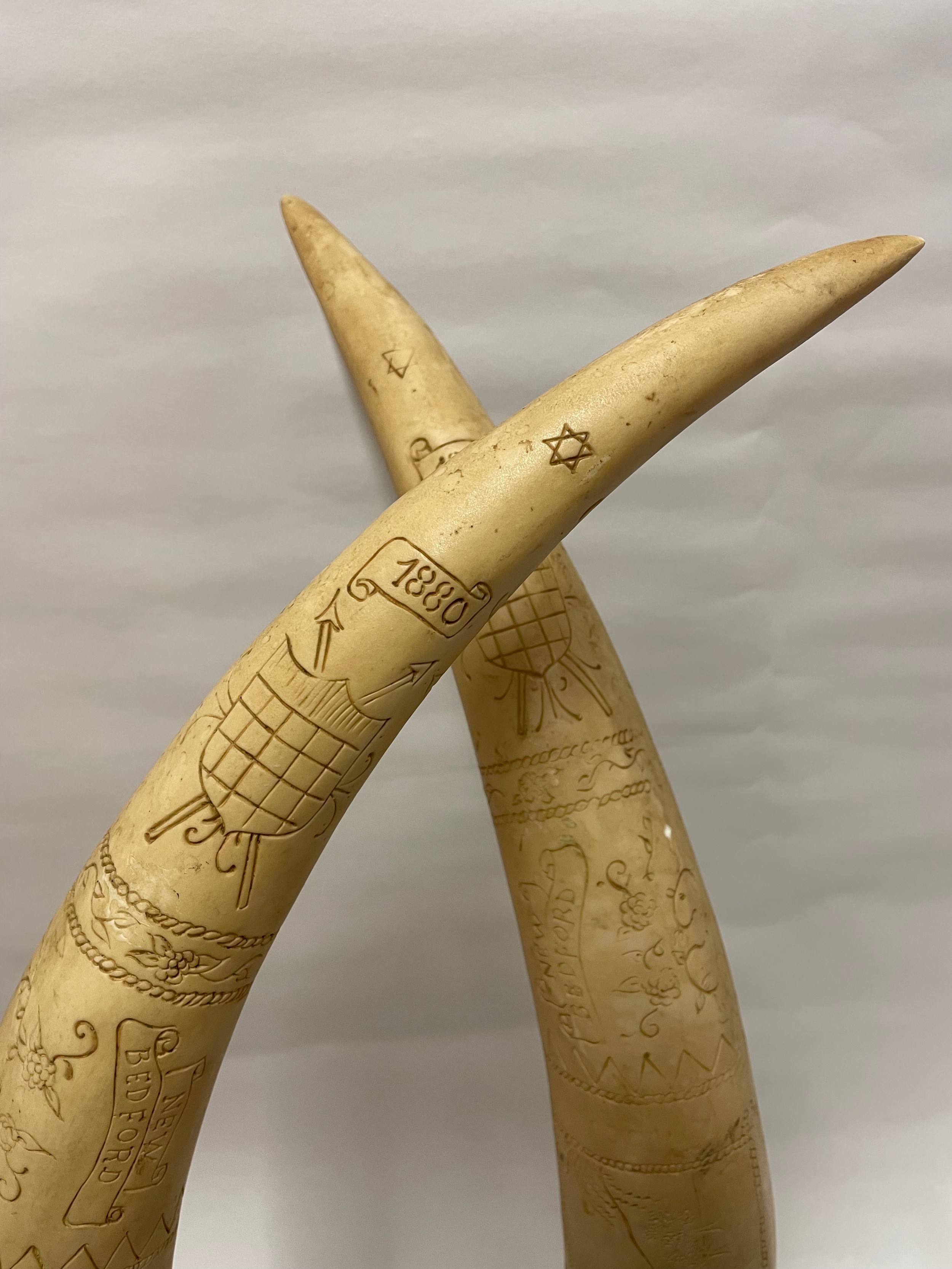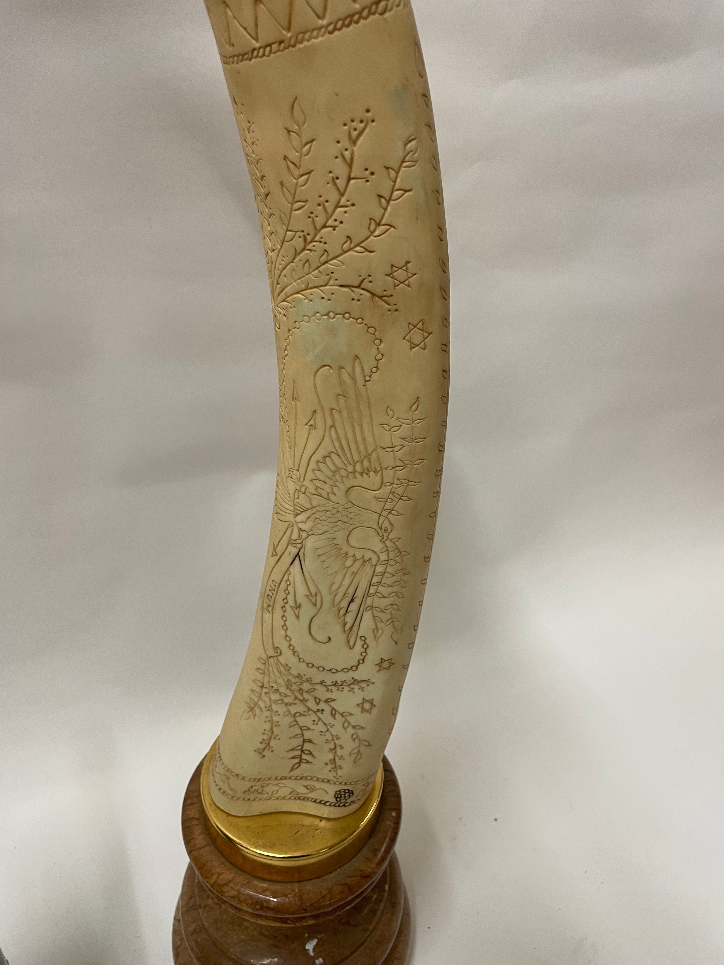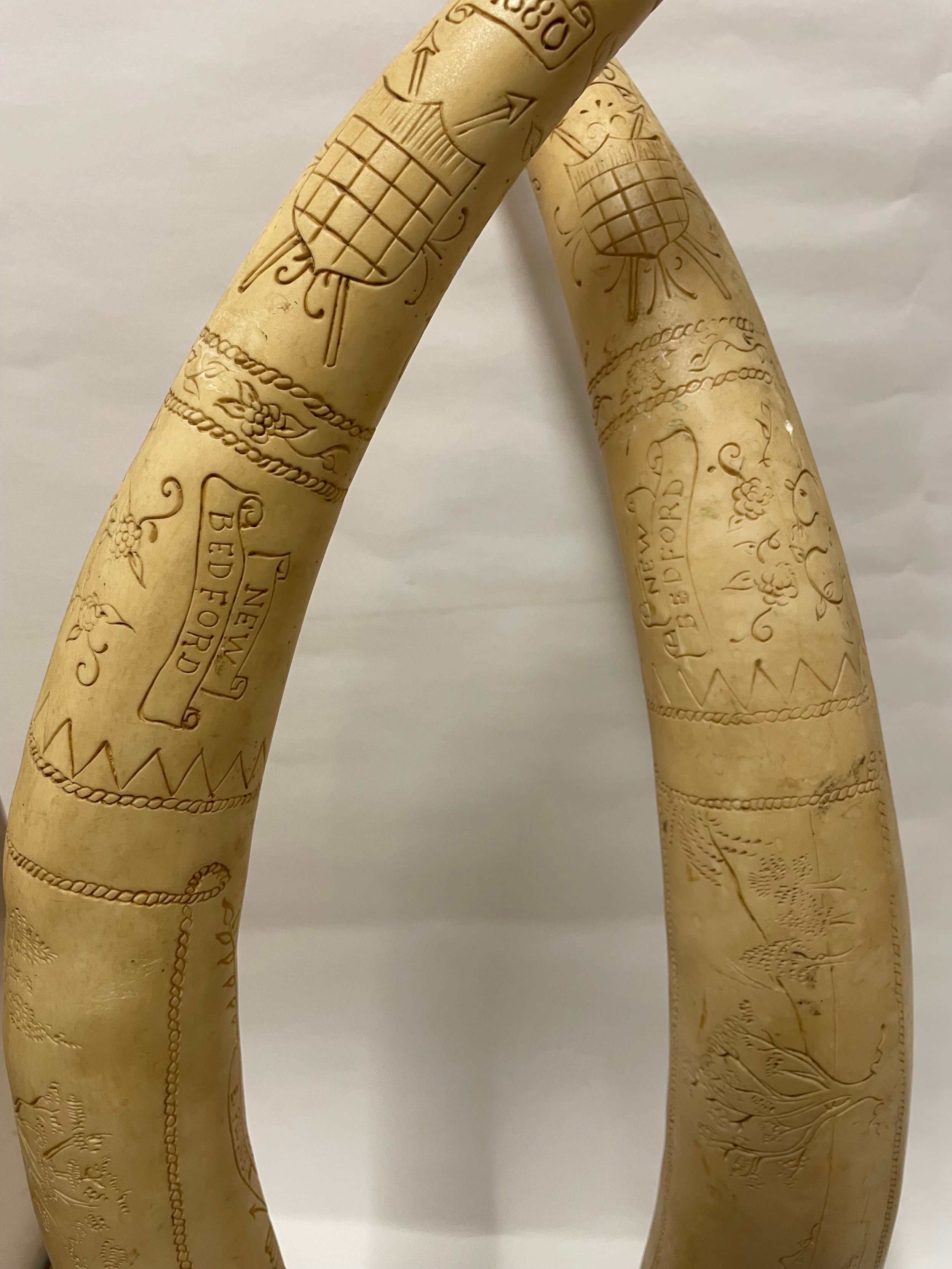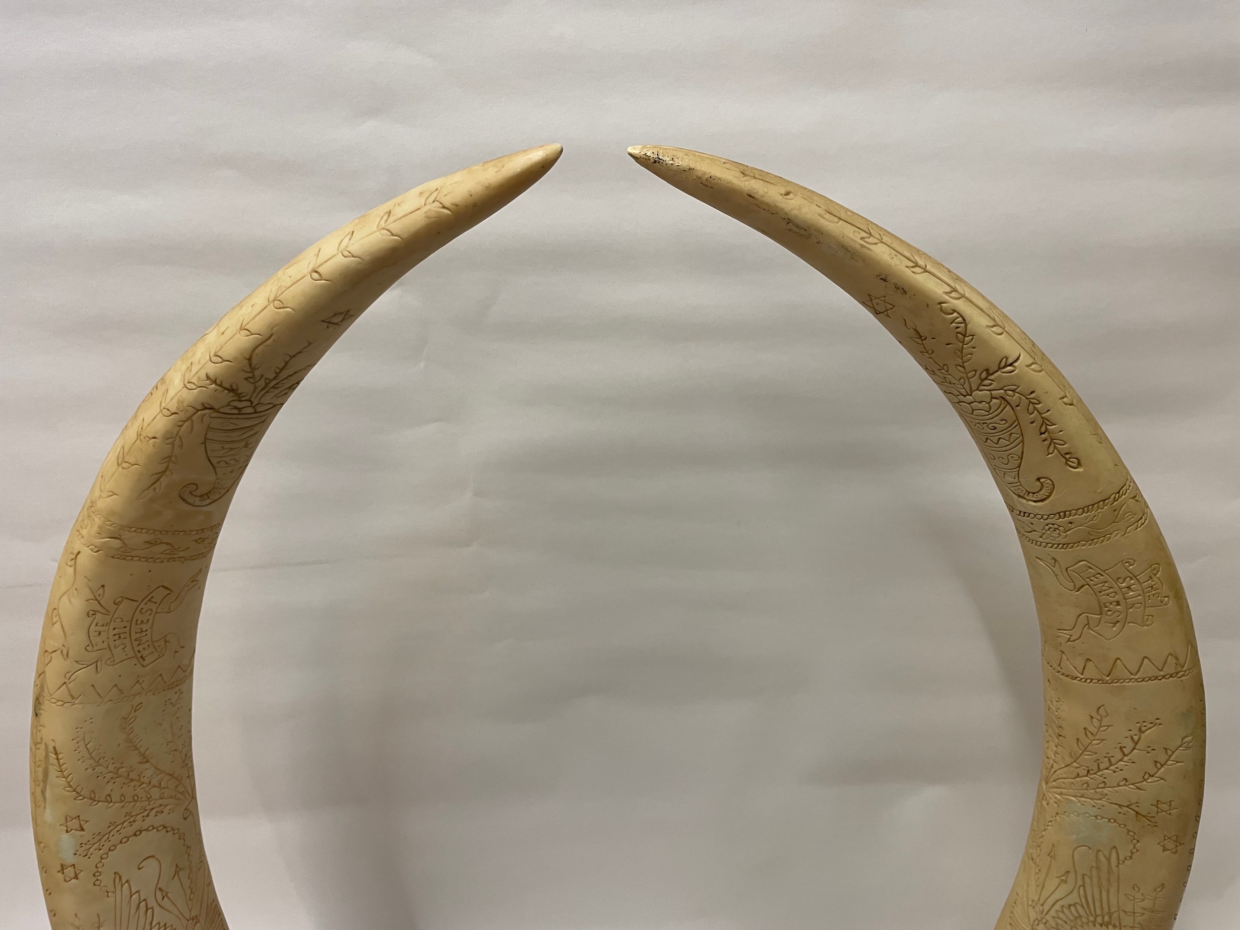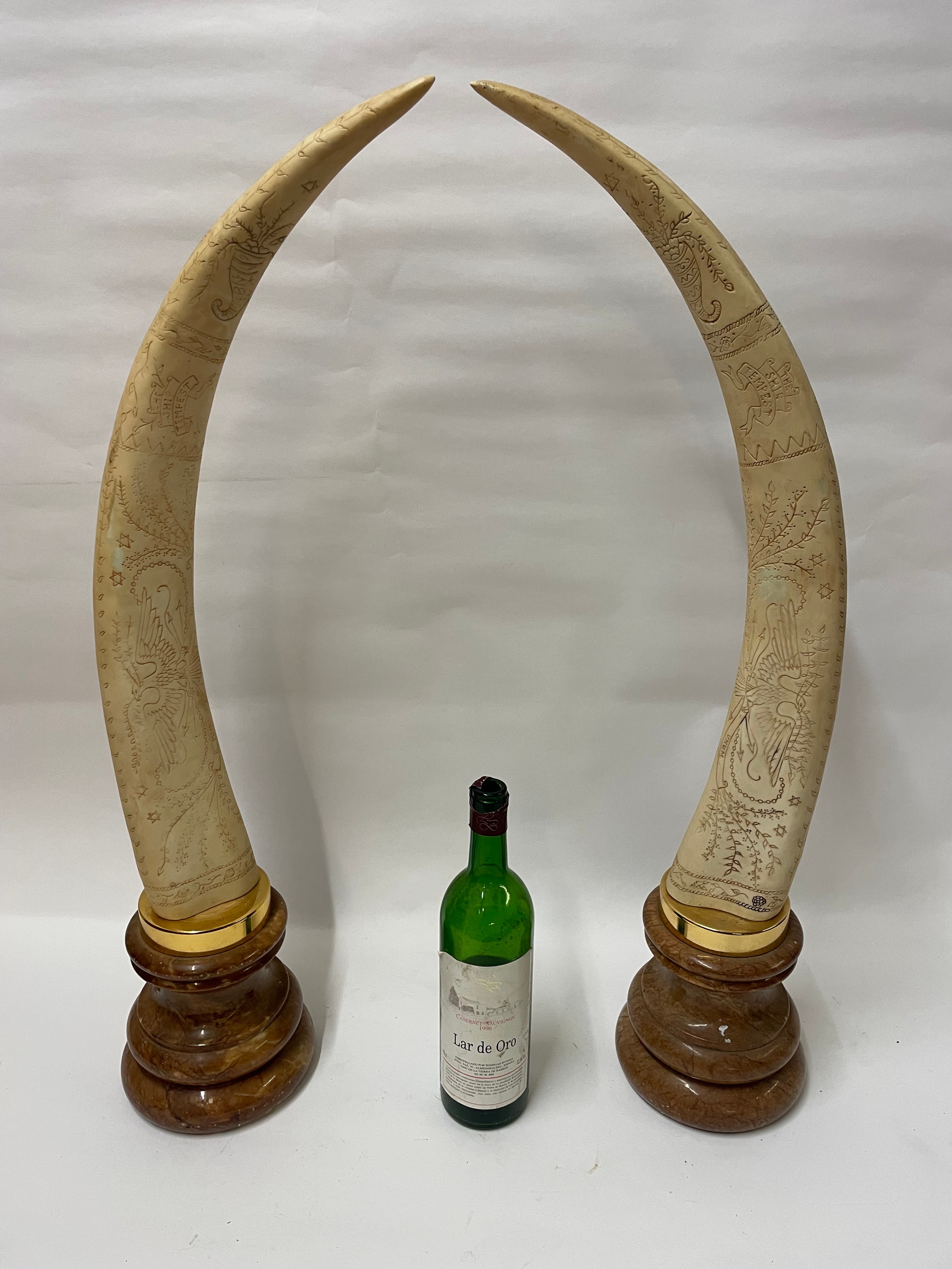 Pair Of Large Composite Scrimshawed Tusks75 cms h