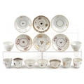 19th century English fluted and scalloped porcelain including teacups, tea bowls and saucers, the largest saucer 14cm in diameter.