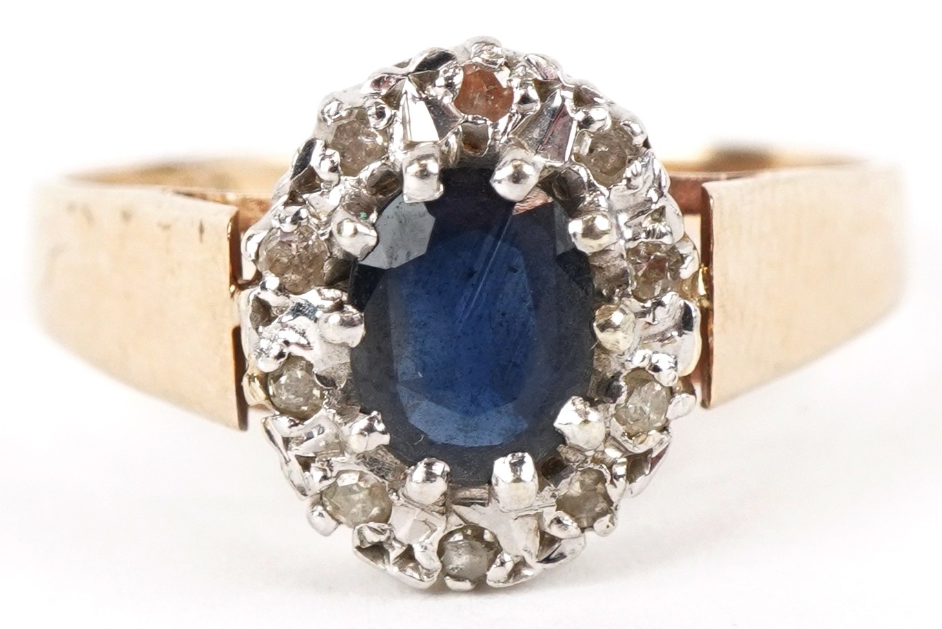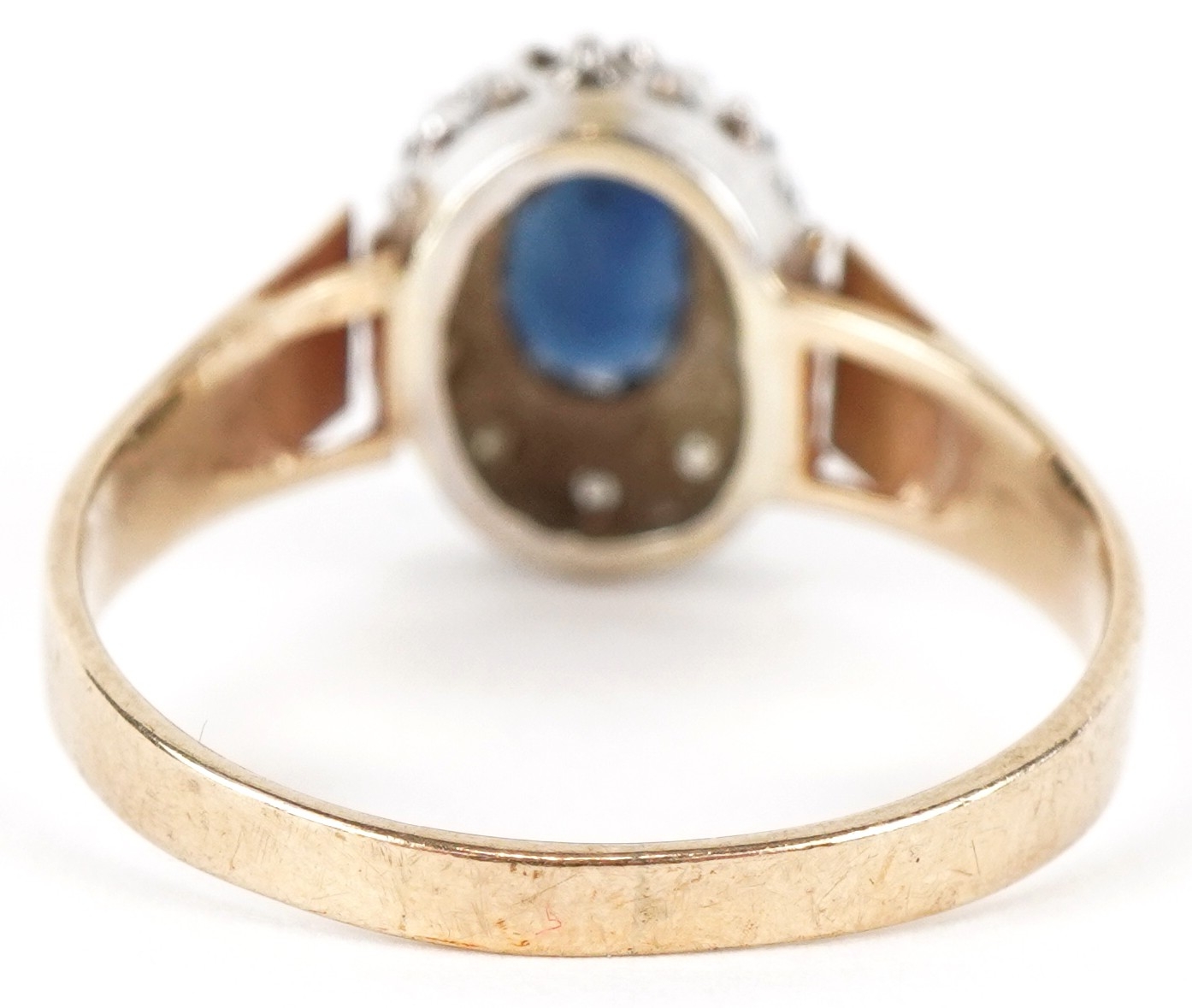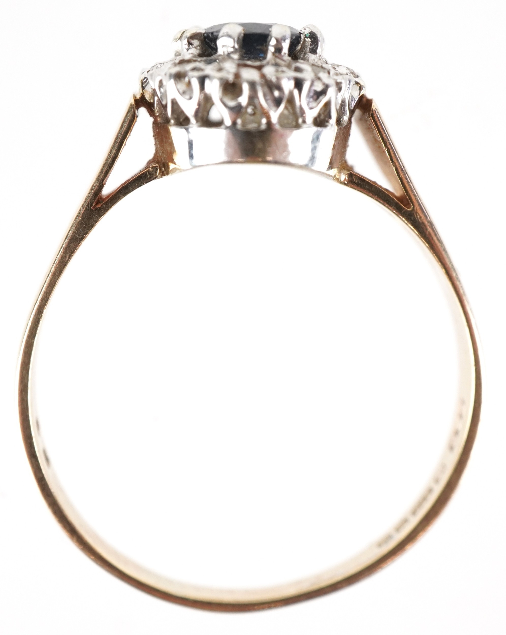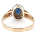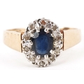 A 9ct gold blue spinel and diamond cluster ring, size R, 3.0g.