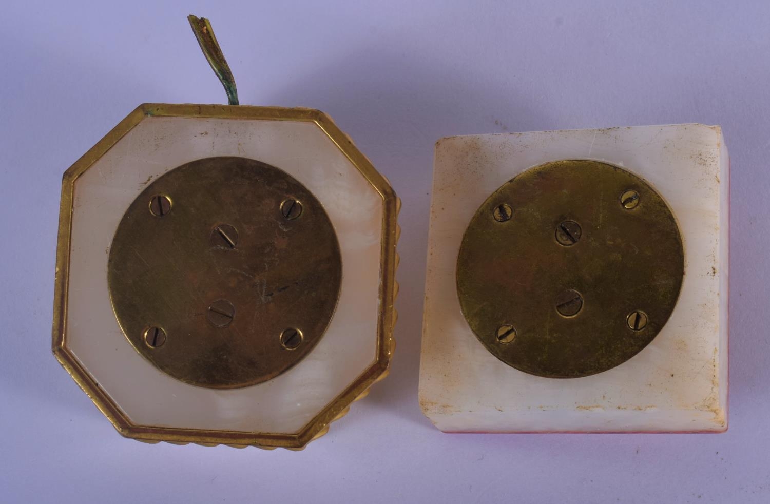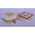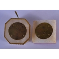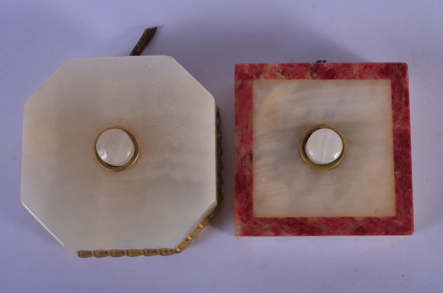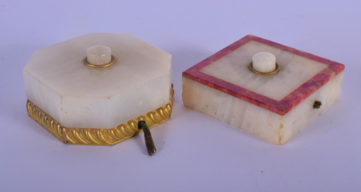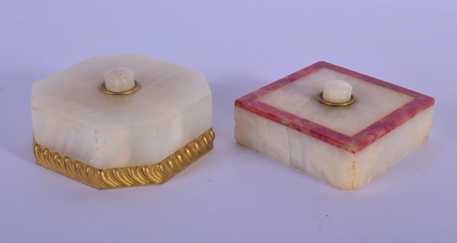 TWO ART DECO MIXED MARBLE DESK BUTTON SWITCHES. 6 cm wide. (2)