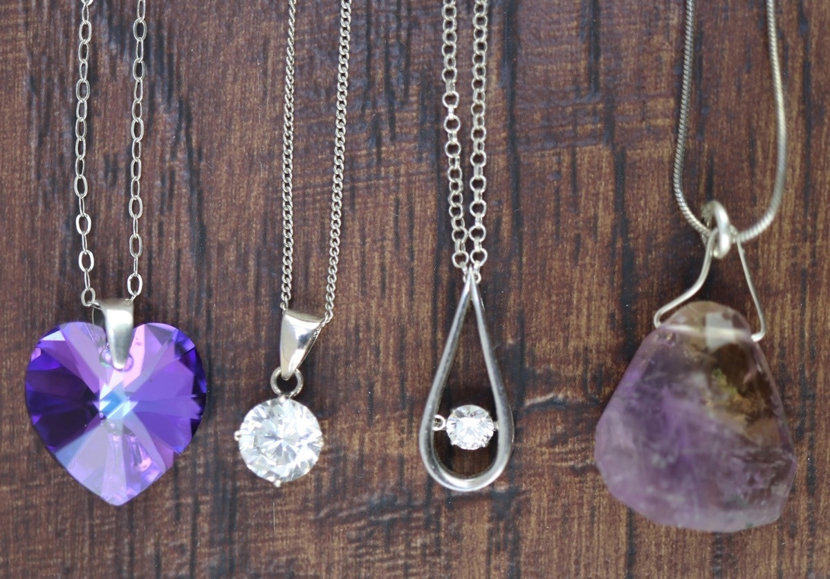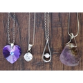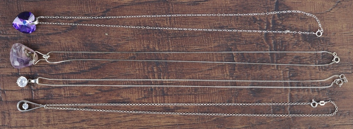4 silver stone set pendants on silver chains