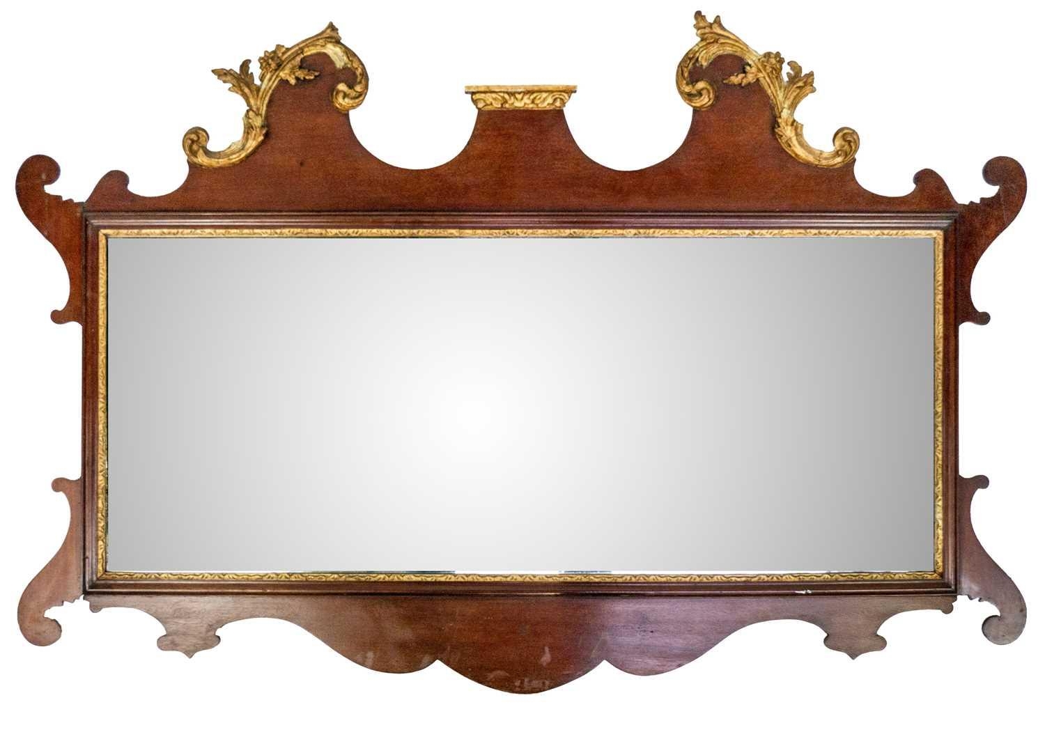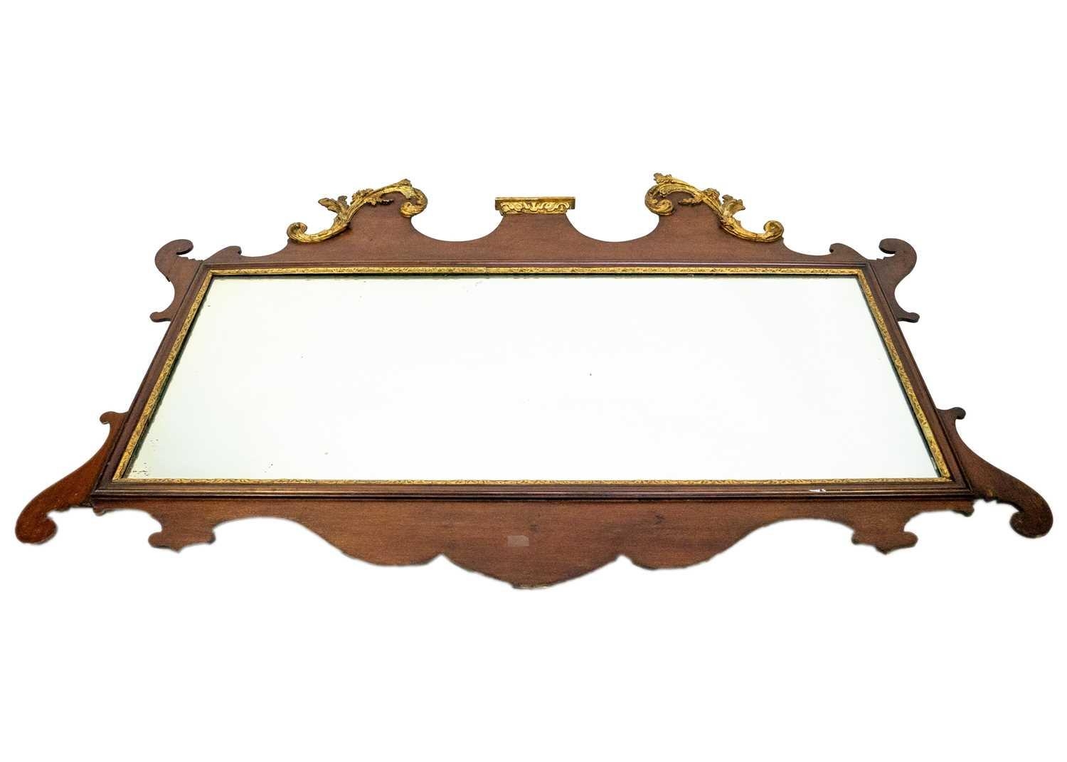 A 19th century mahogany fret work framed mirror. Gesso gilt decoration. Height 81cm width 135.5cm.