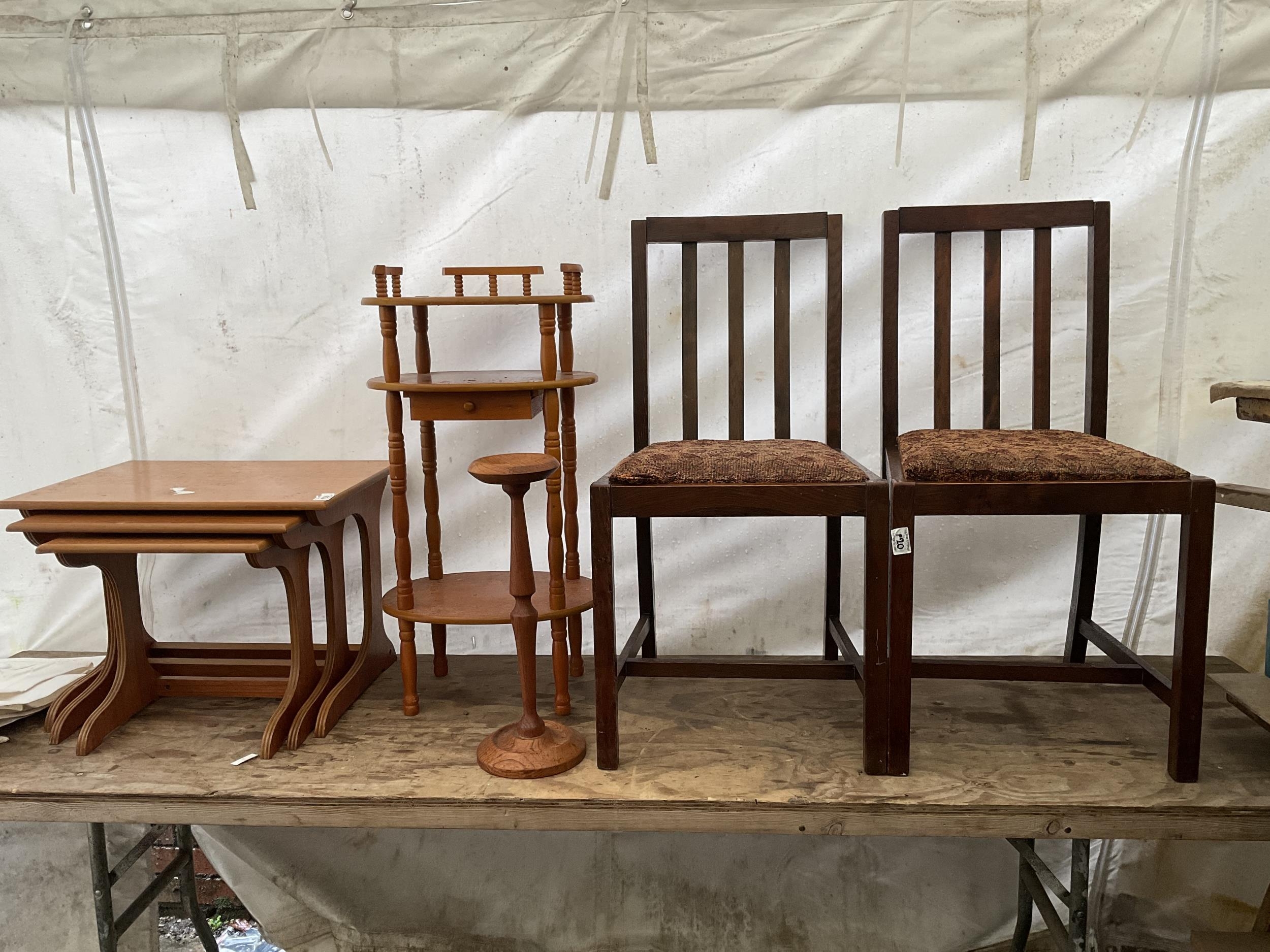 2 WOODEN CHAIRS, NEST OF TABLES ETC