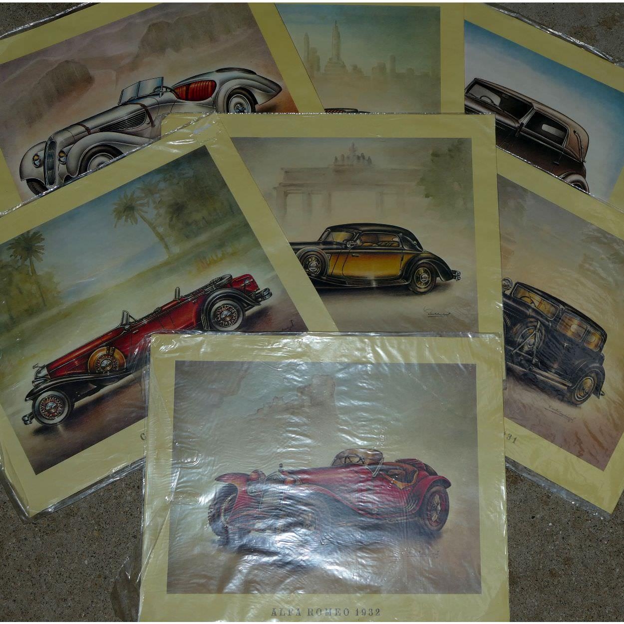 Seven prints of 1930's motorcars, to include, Alfa Romeo, Horsch and BMW, unframed.