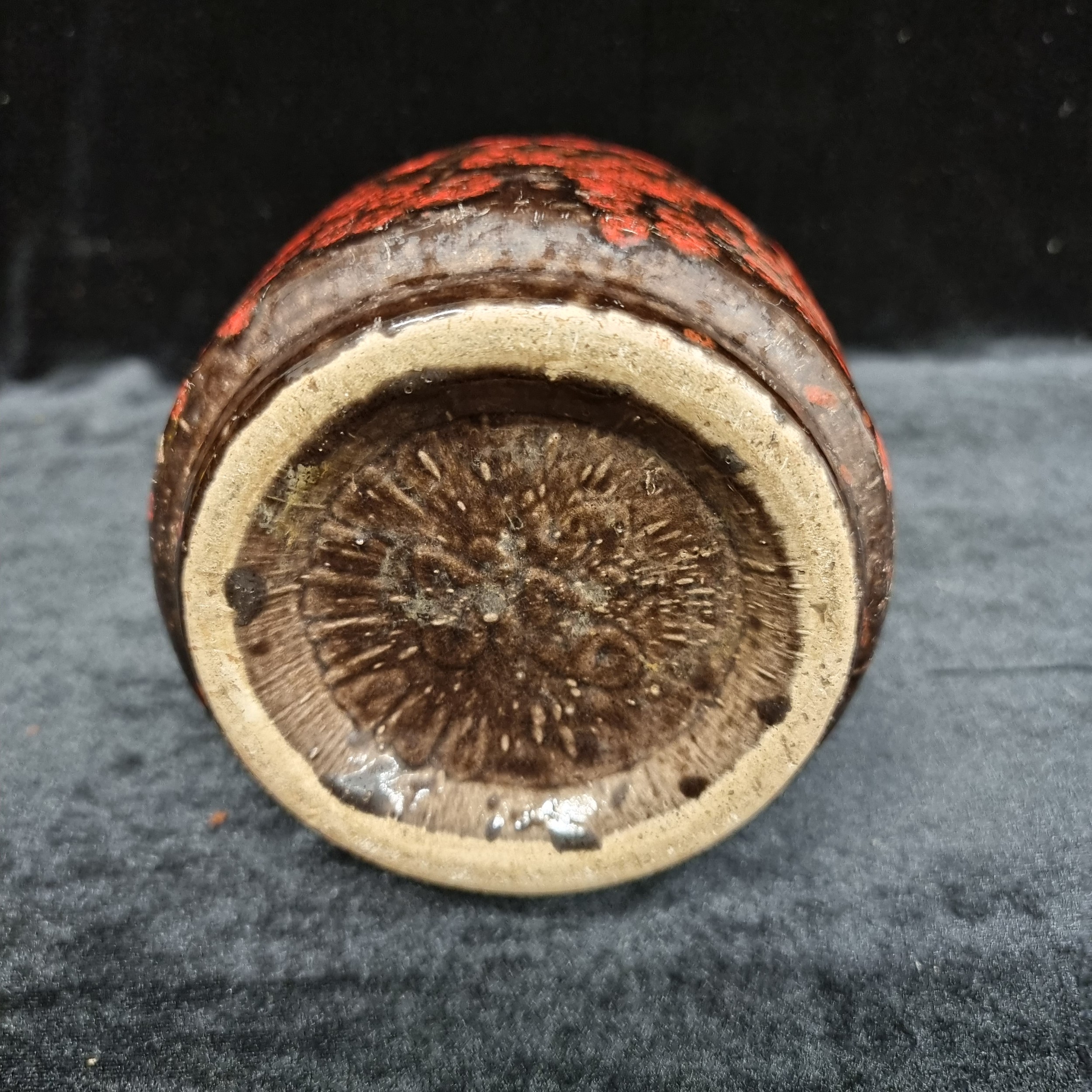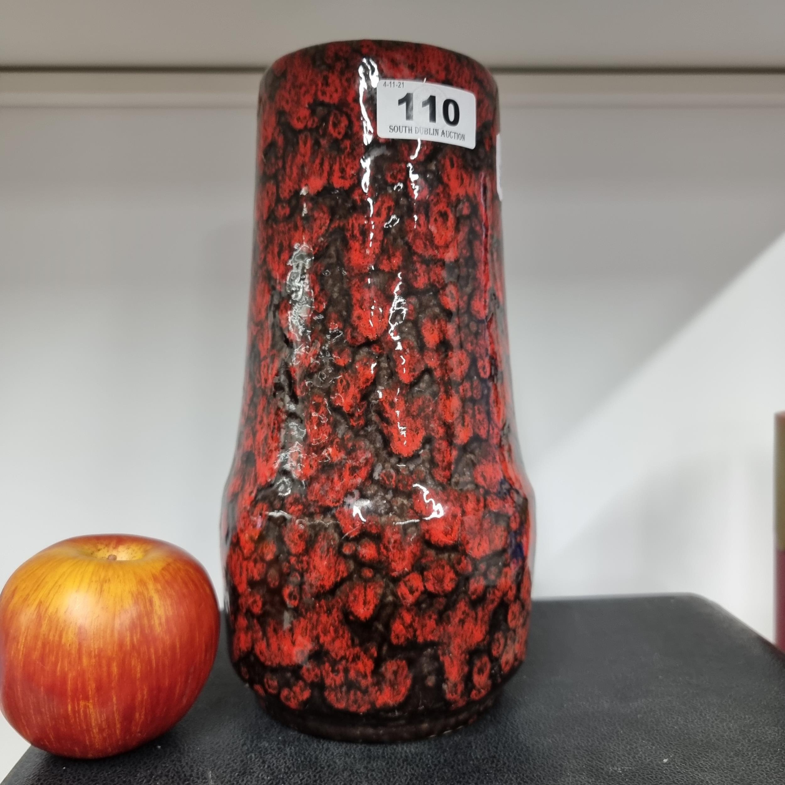 A 1970s Fat Lava ceramic vase made in West Germany. A beautiful mid century item with a red and black mottled glaze, marked 529 - 25 to base. Possibly Scheurich Keramik.