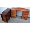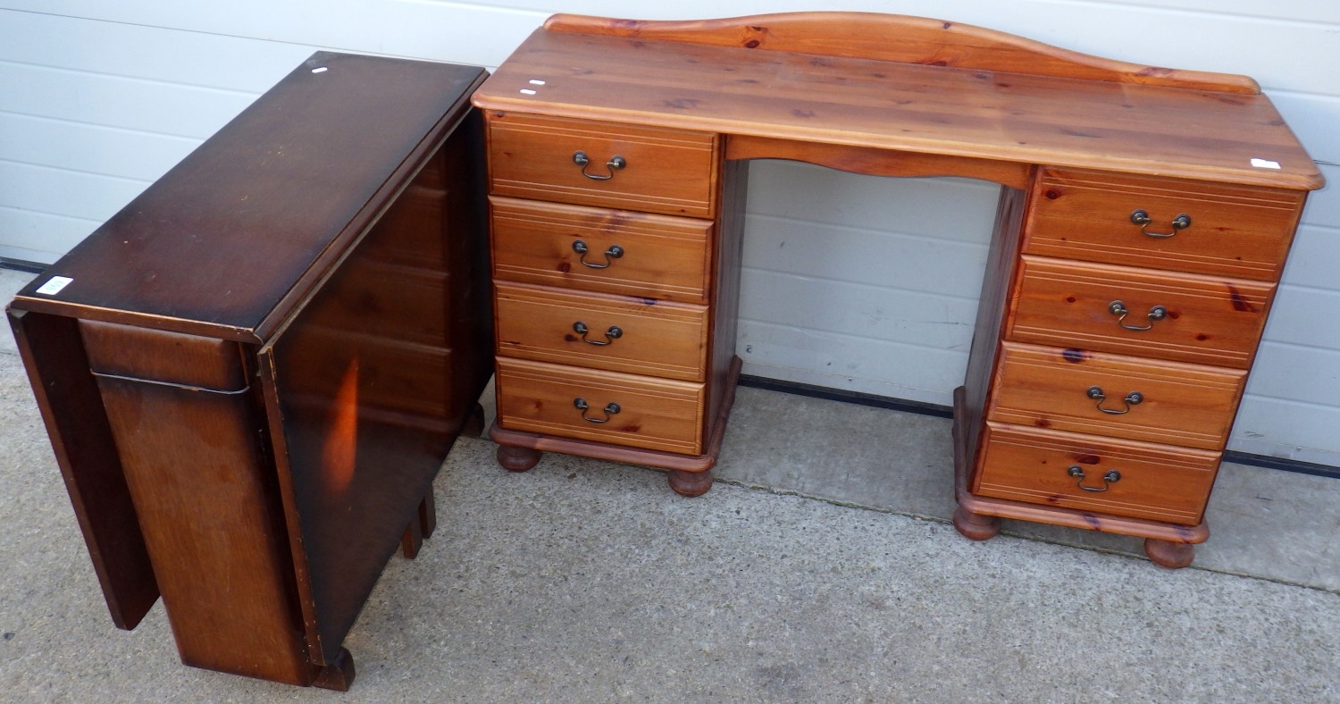 A modern pine kneehole dressing table together with a drop leaf table and a lamp standard (3)