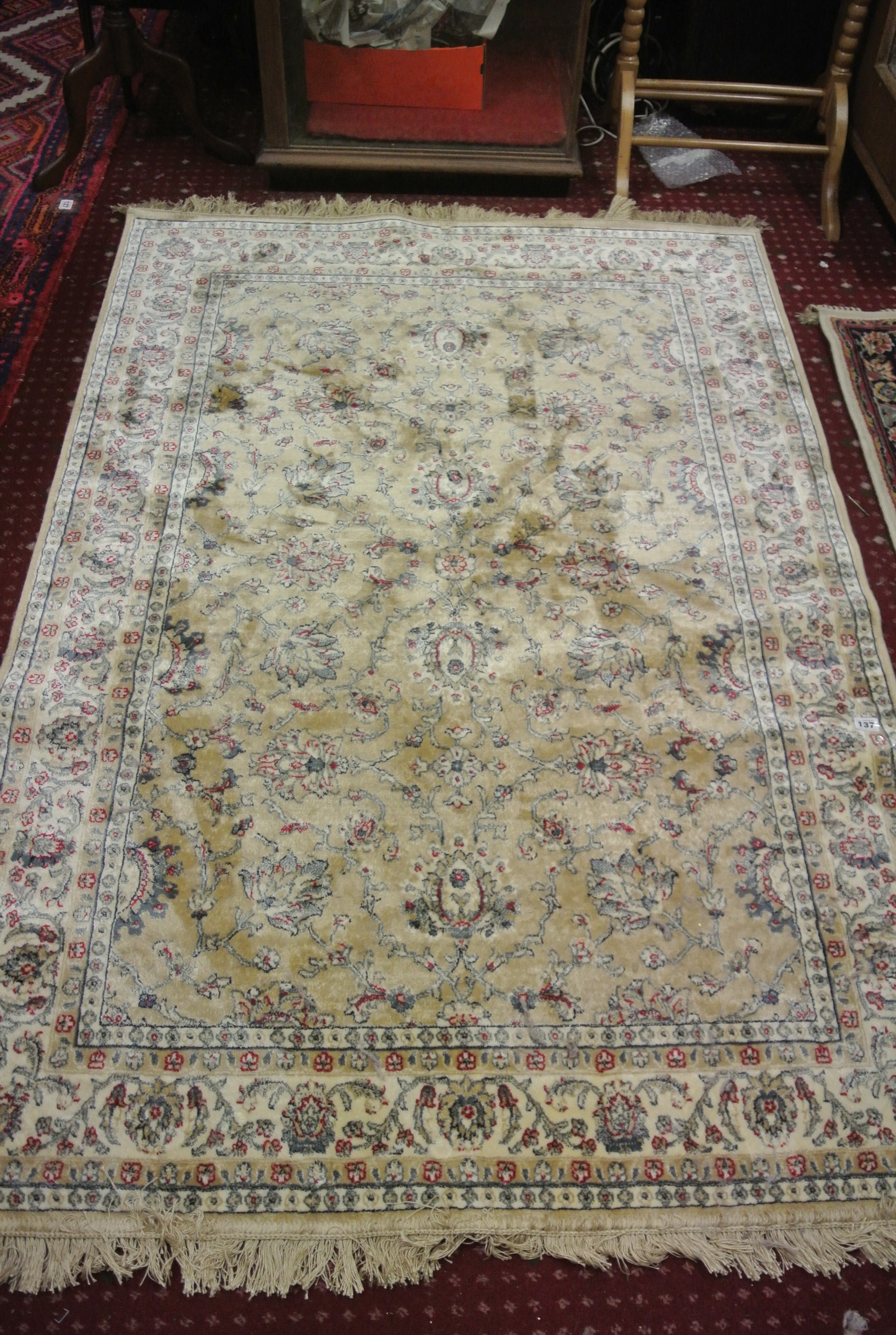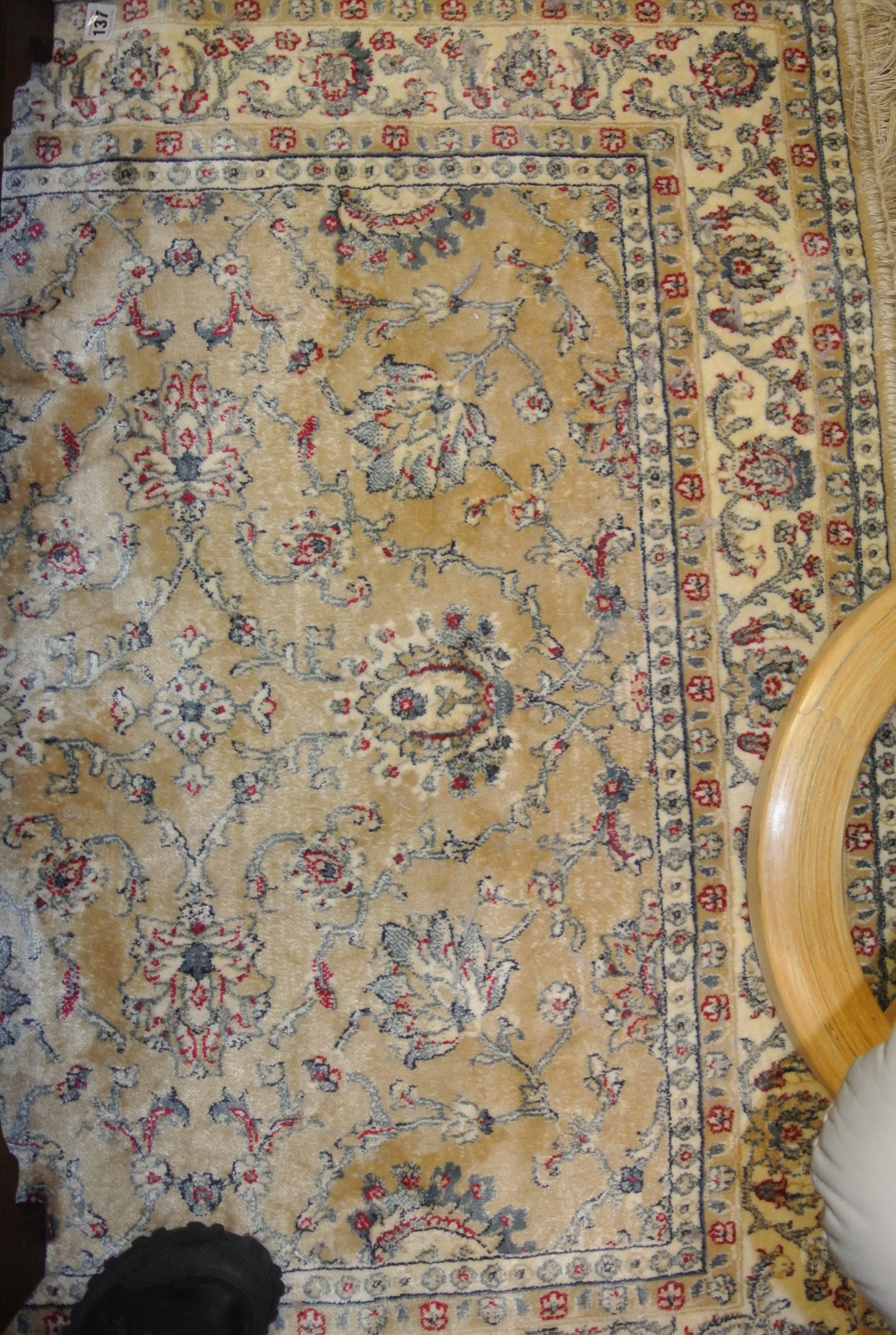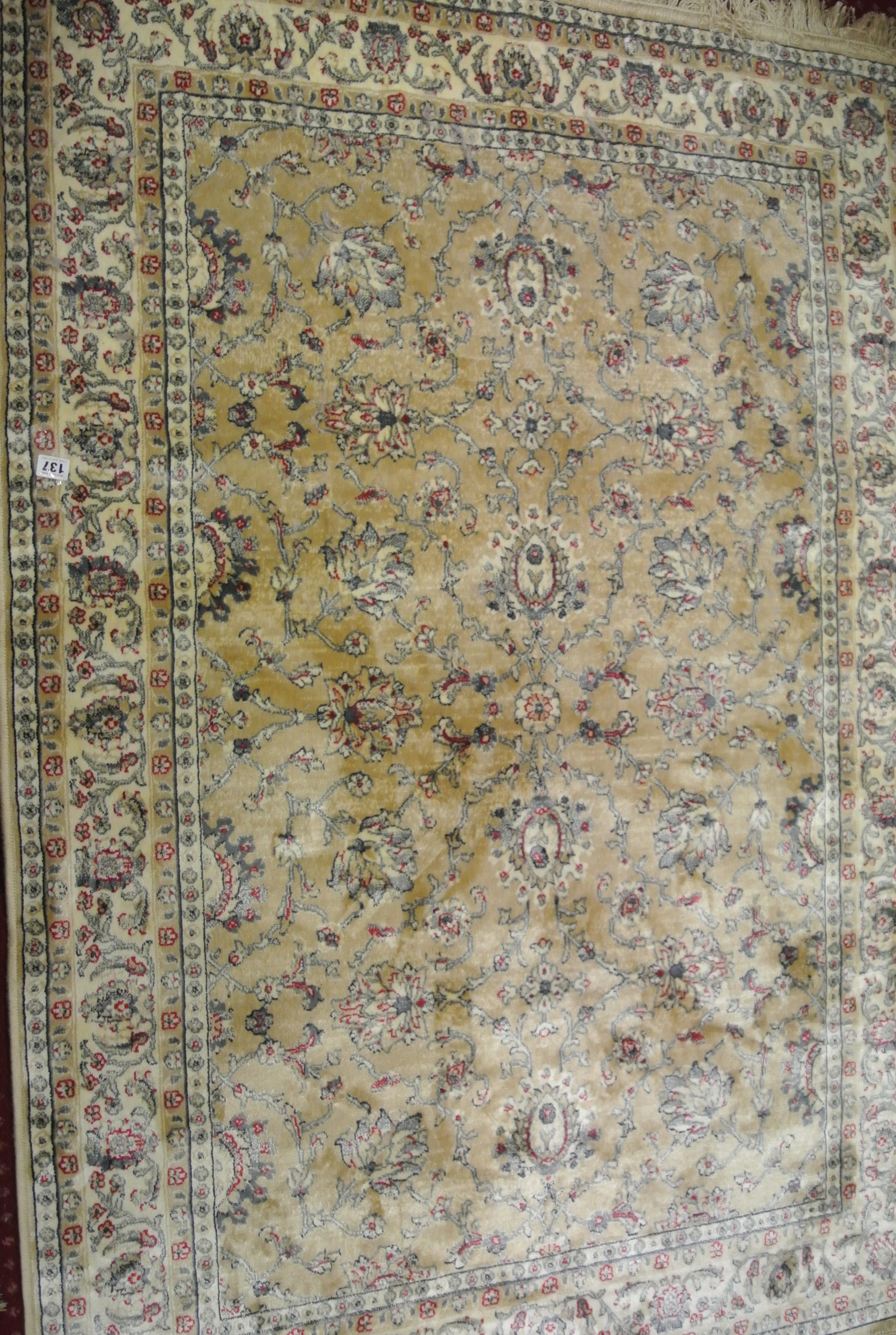 Gold ground Kashmir rug with hints of duck egg blue, all over Zeigler design 170x120cm
