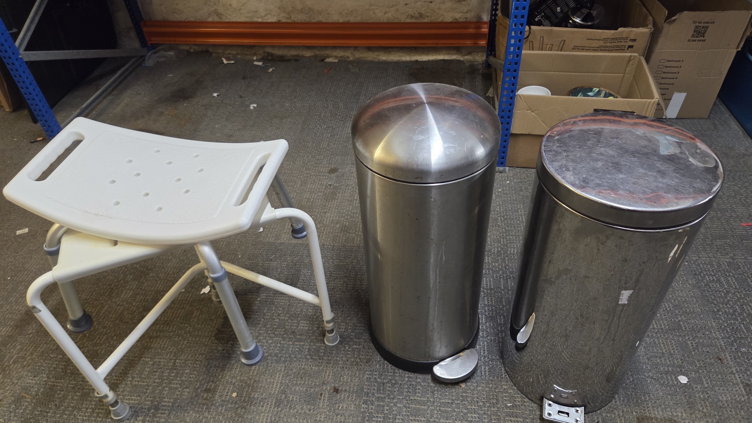 A Collection of a Shower Stools and Pedal Bins