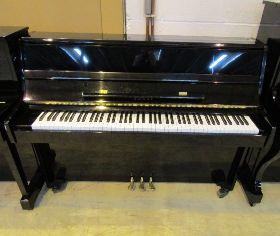 Kawai (c1985) An upright piano in a bright ebonised case.