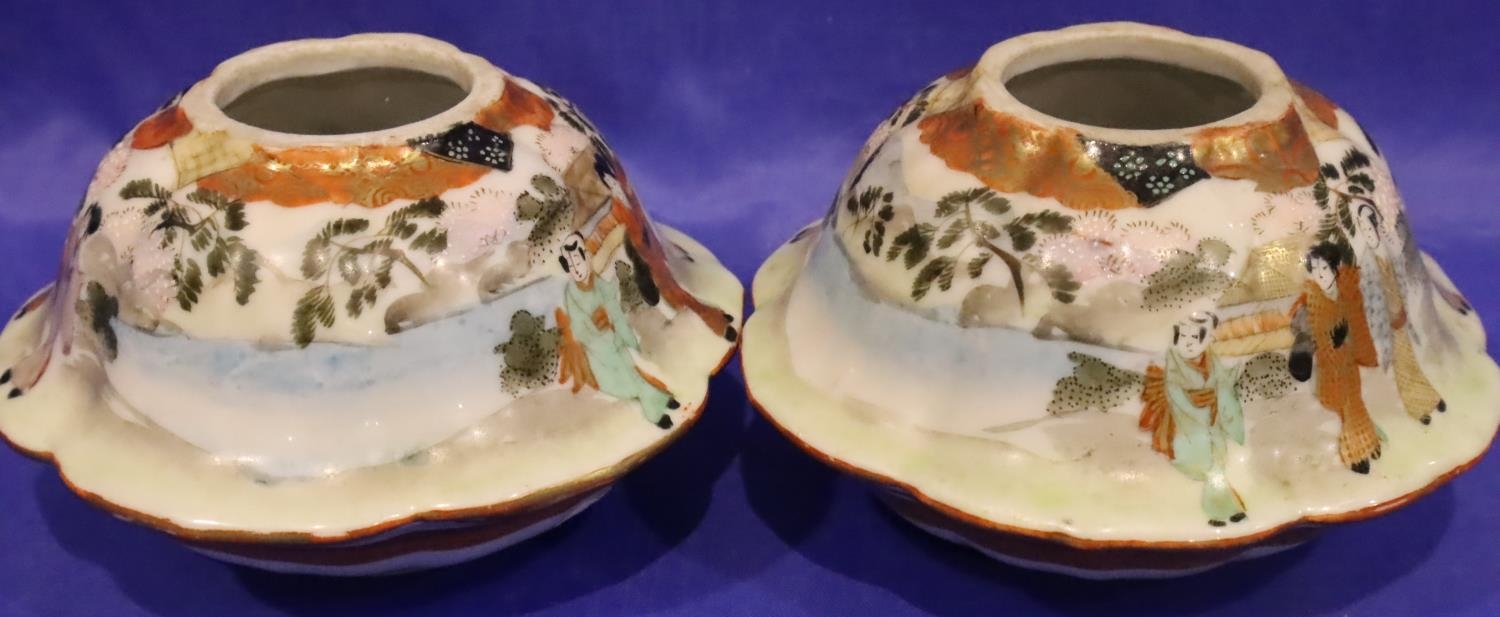 Pair of Oriental Satsuma squat vases, signed to base, D: 10 cm. P&P Group 1 (£14+VAT for the first lot and £1+VAT for subsequent lots)