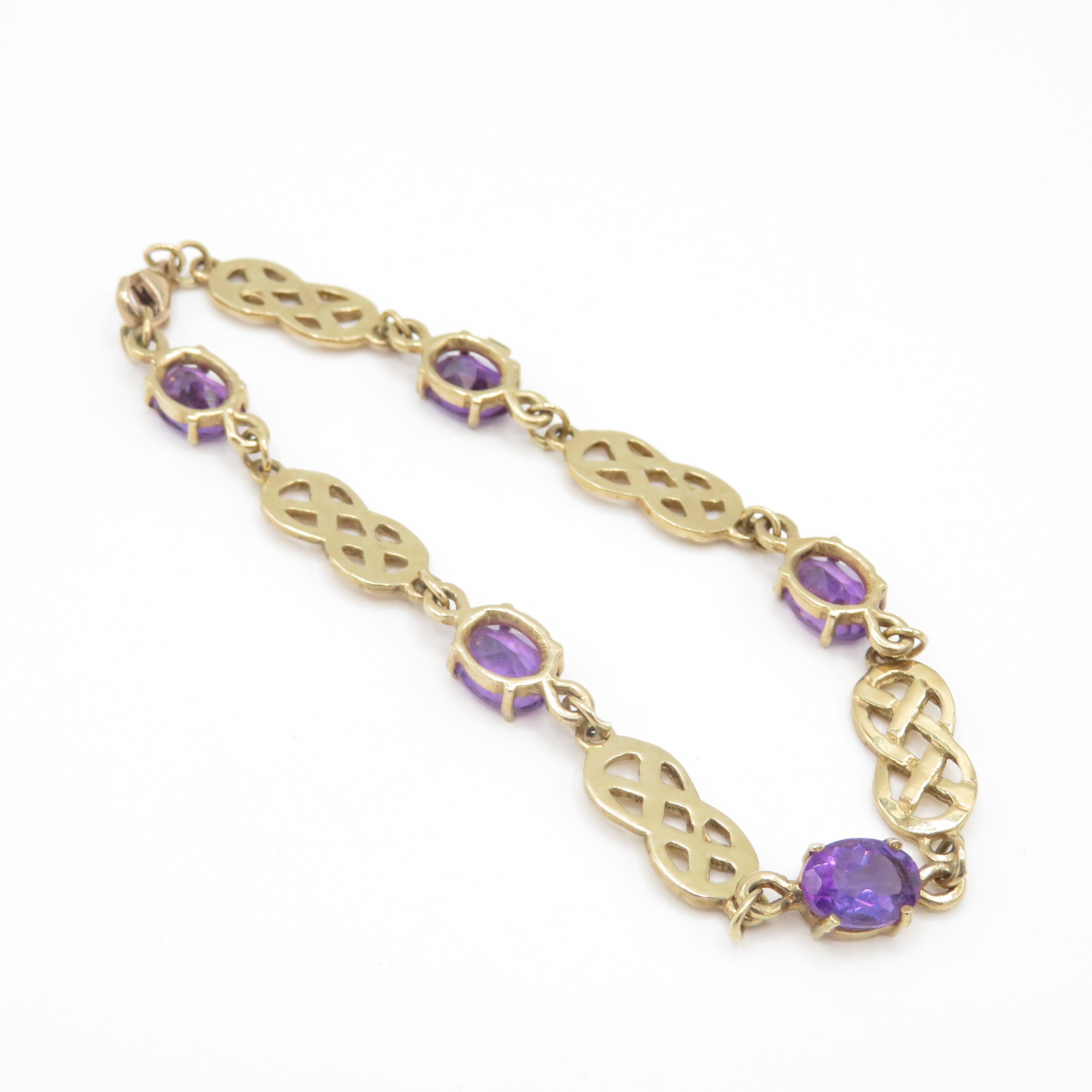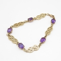 9ct gold amethyst Celtic style bracelet (8g)