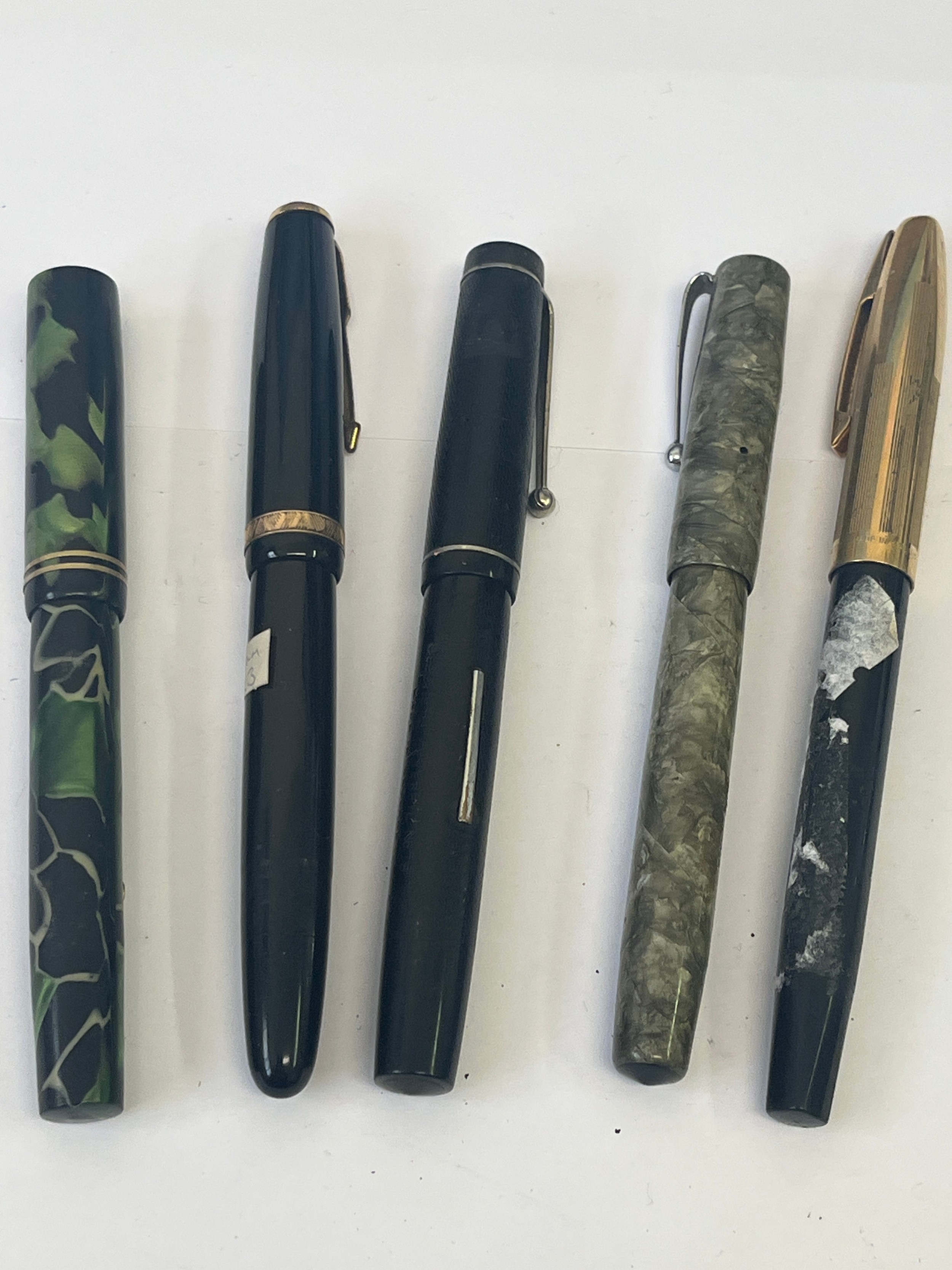 A COLLECTION OF 5 FOUNTAIN PENS ALL WITH 14CT GOLD NIBS A SWAN PARKERS SHEAFFER