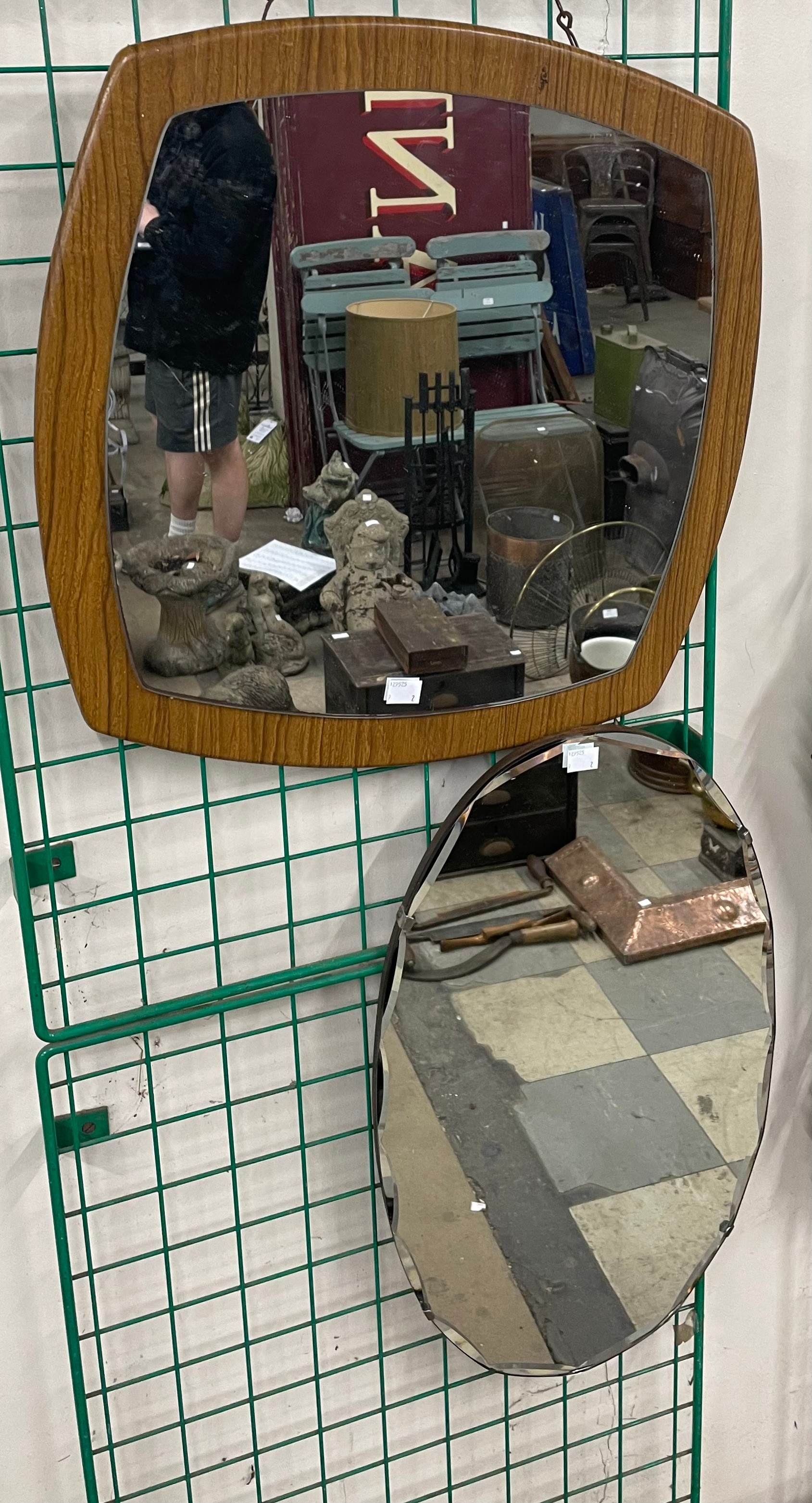 A teak framed mirror and a bevelled edge mirror