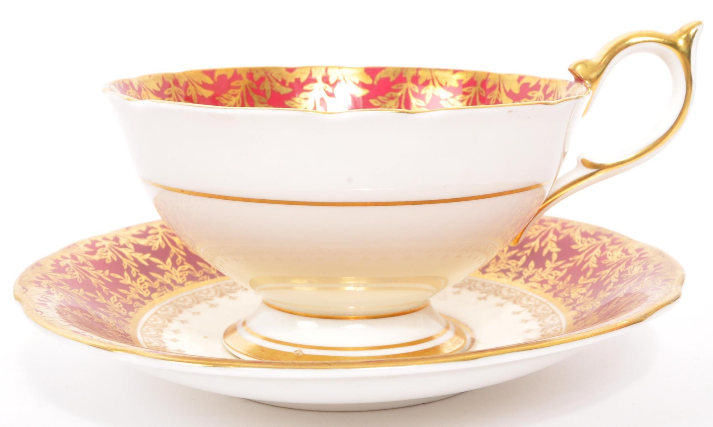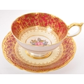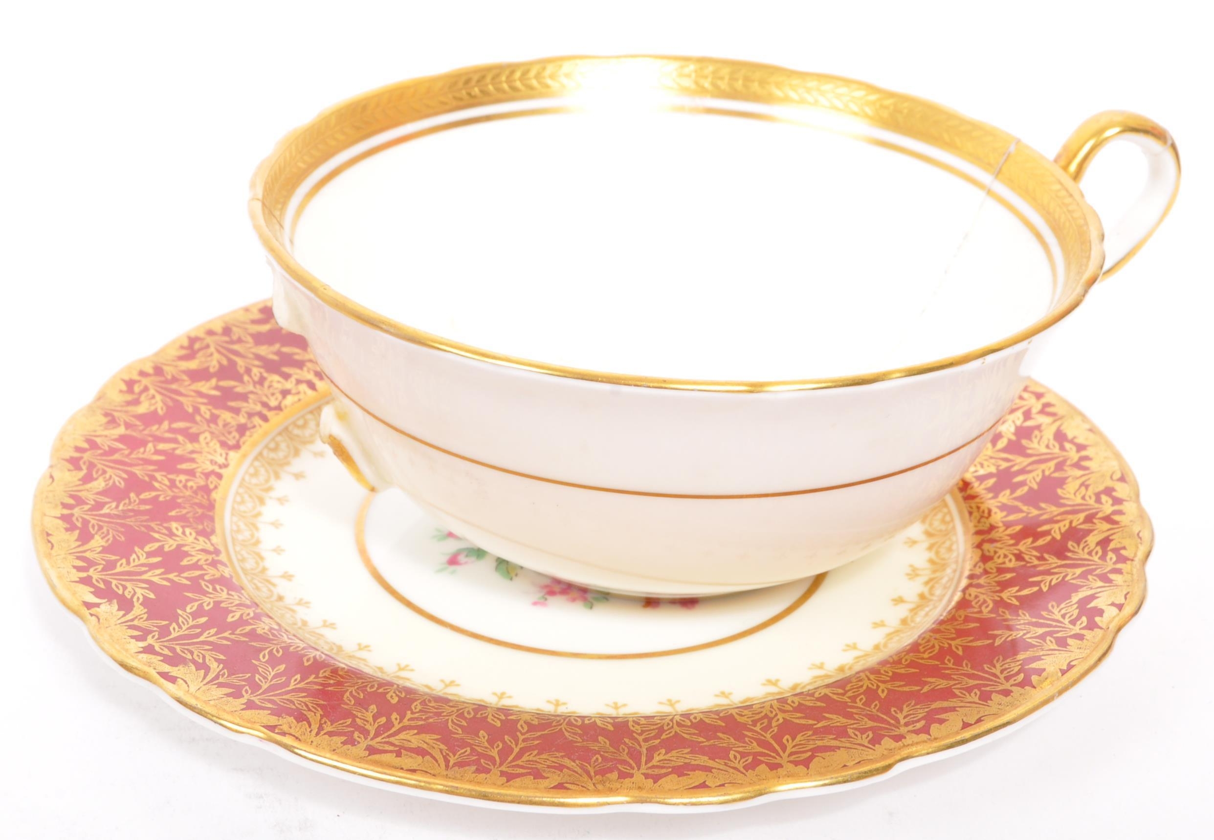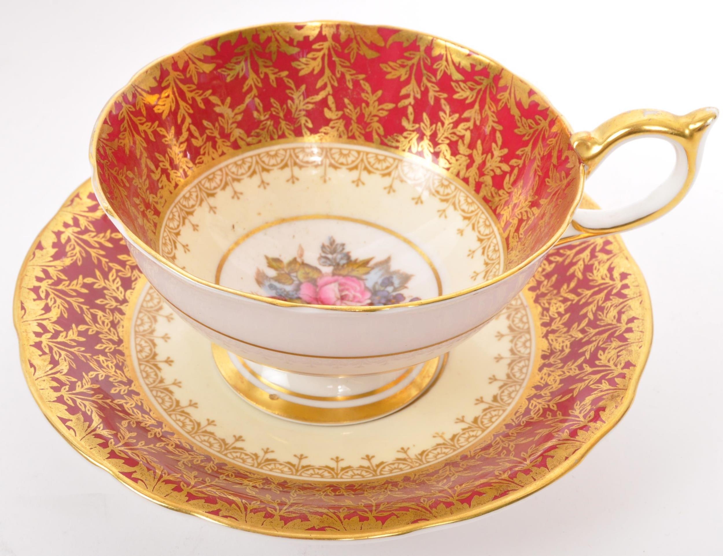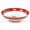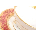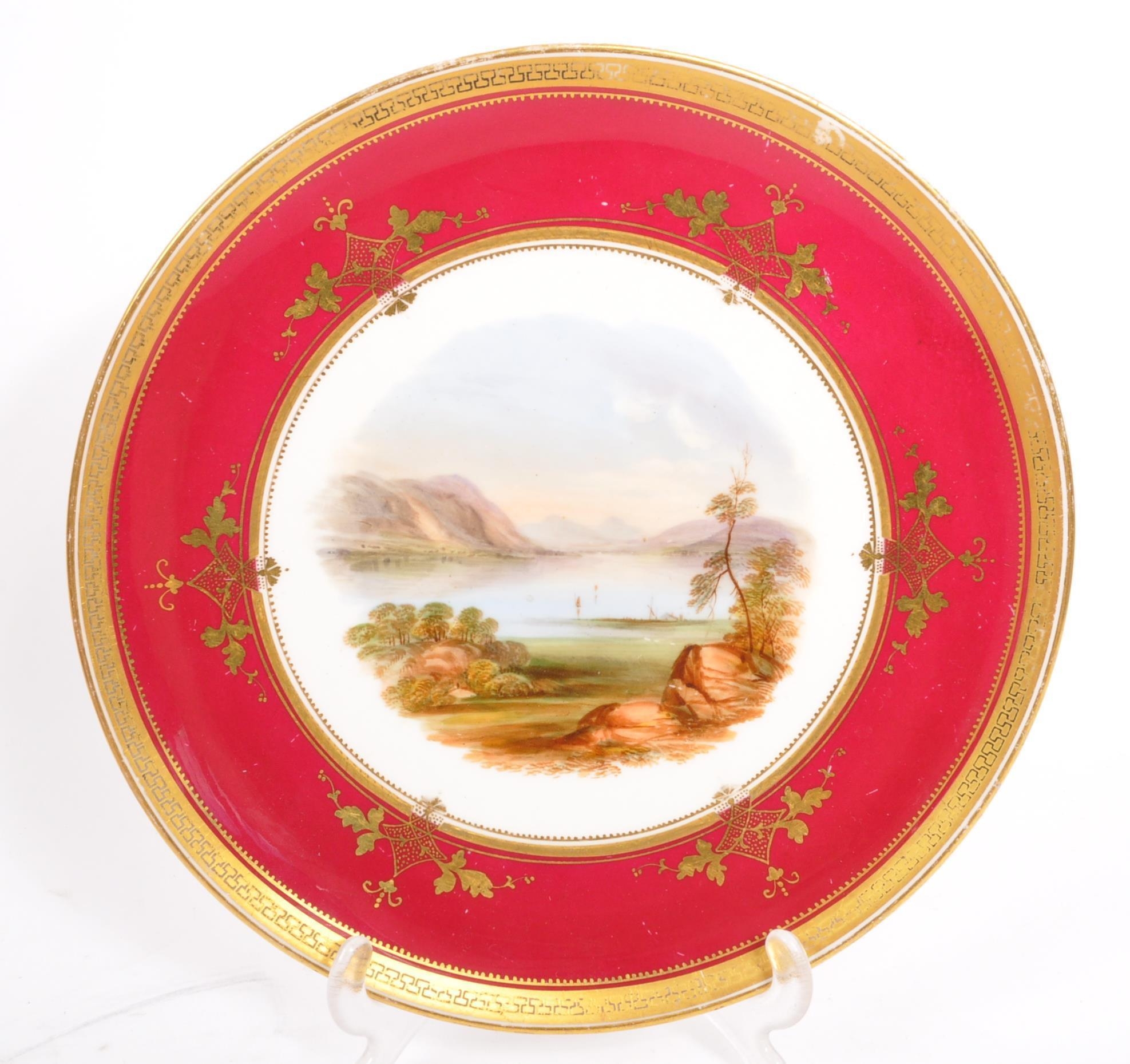 A collection of 20th century Aynsley ceramics, all stamped to the underside with the exception of one plate. To include 3 x plates, 2 x cups and fruit bowl. The plates depicting both floral and one landscape with all three holding gilt decoration. One cup holding floral and gilt decoration with the other having white ground with gold gilding (crack / missing handle). The fruit bowl being hand painted depicting a racing horse with rider and text reads 'presented to the winner'. Largest measures 26cm (diameter).
