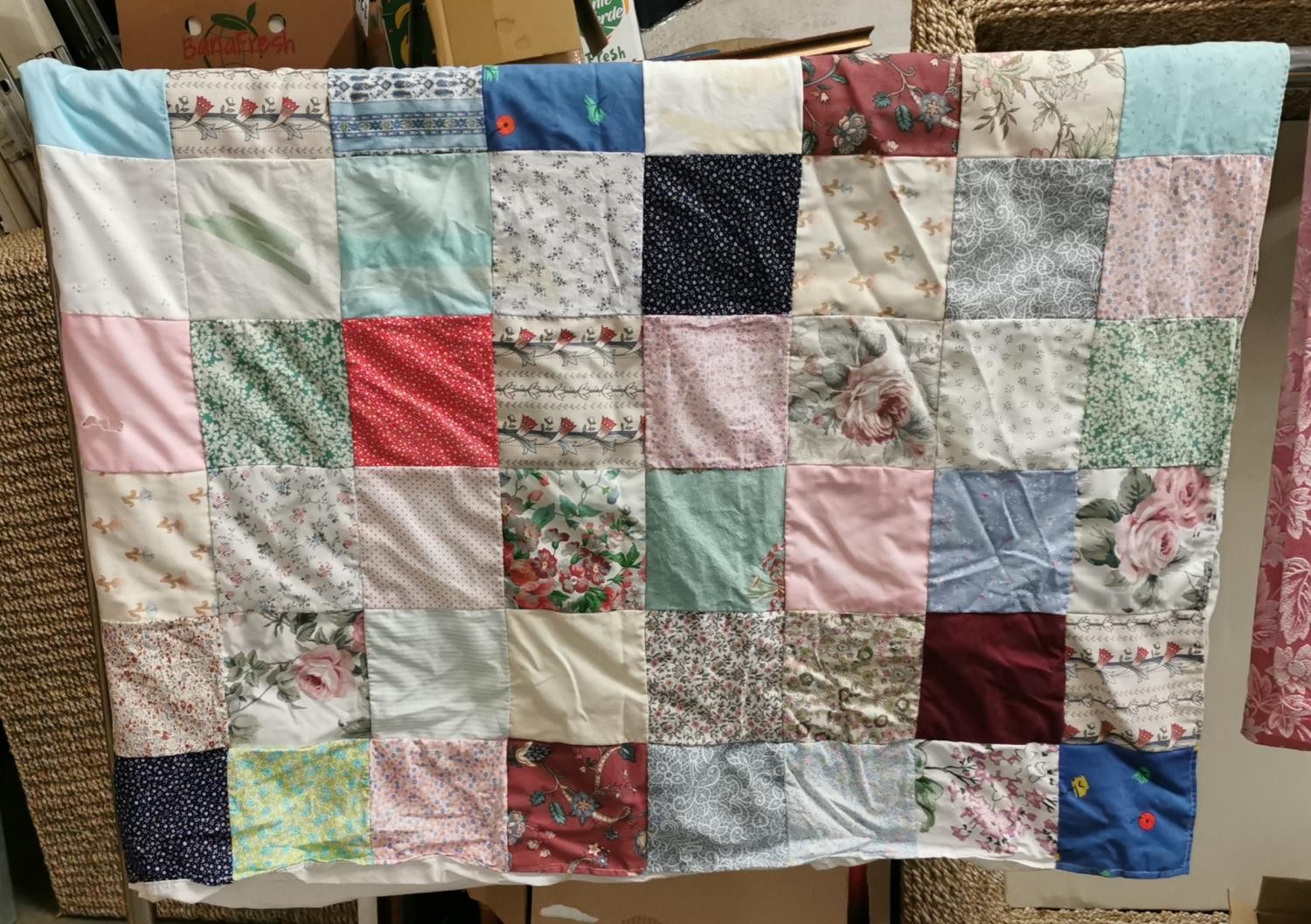 Vintage home made patchwork throw approx 5 x 4 ft