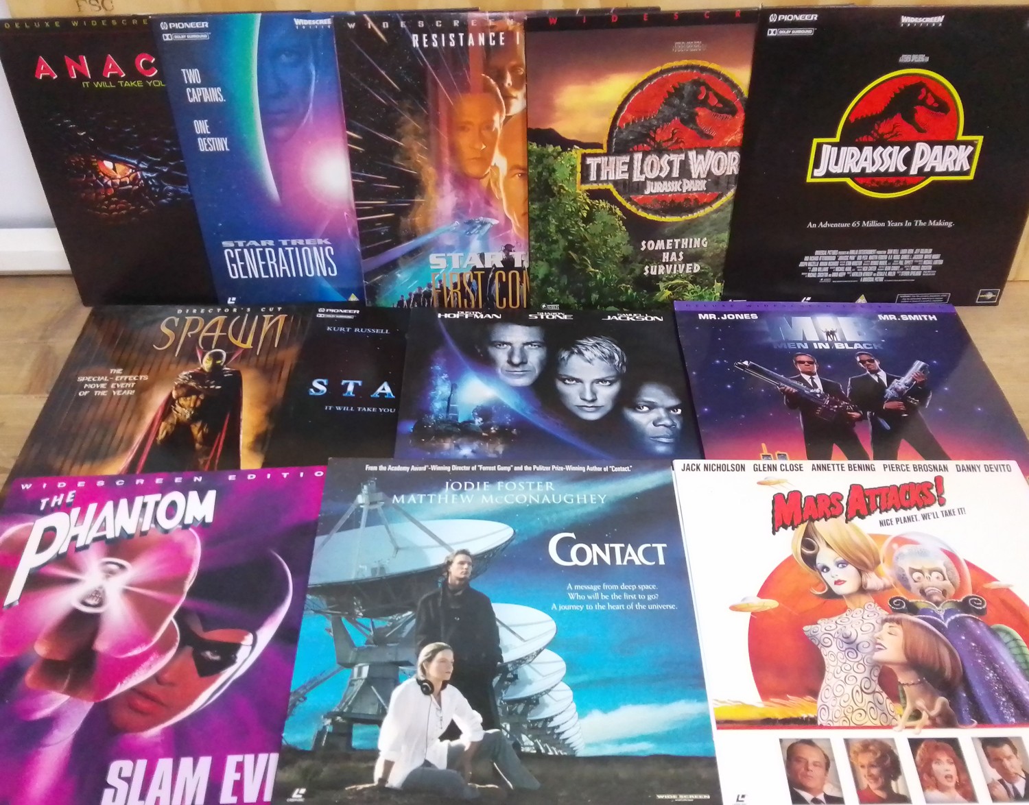A selection of 12 Laser discs; Congo, Star Trek, MIB, Mars Attacks!, Jurassic Park, Stargate etc.