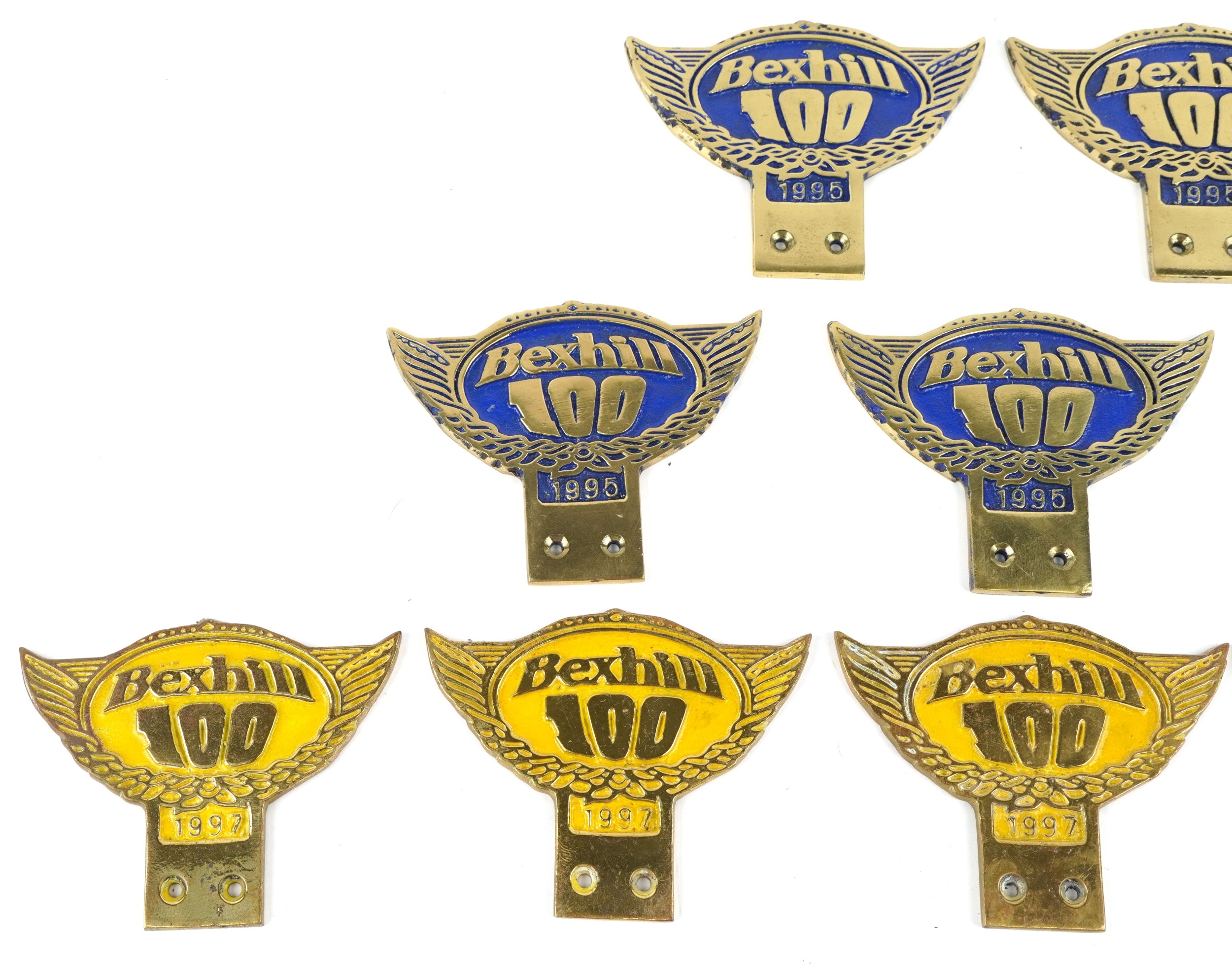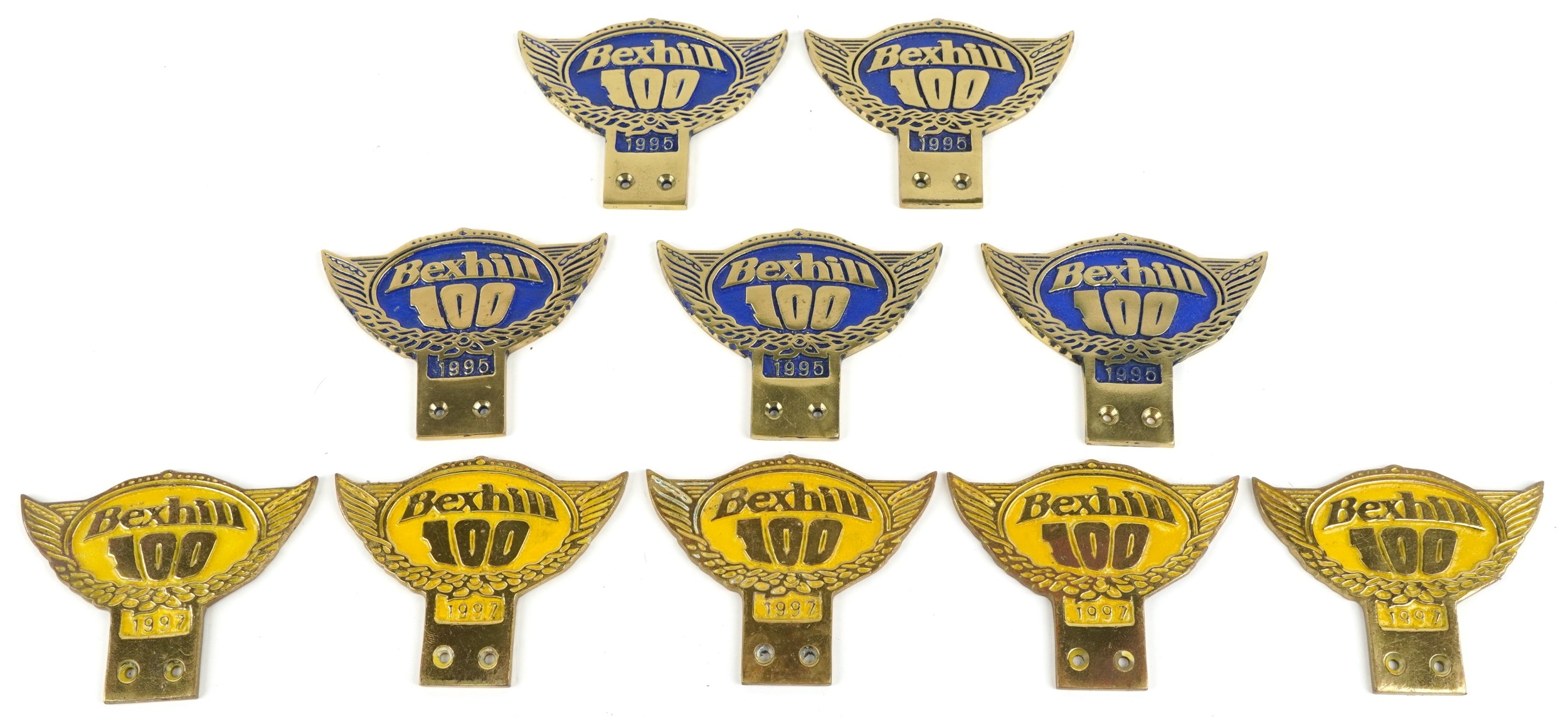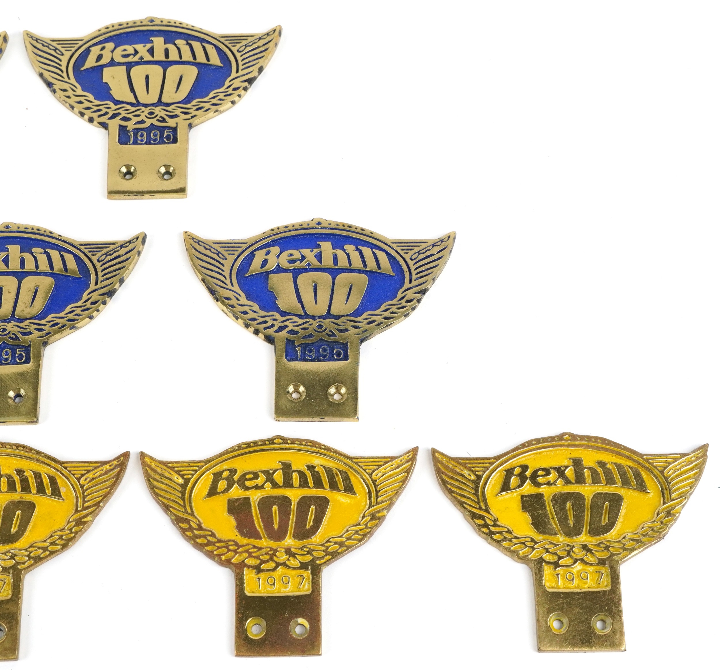 Ten Bexhill 100 car radiator badges comprising five x 1995 and five x 1997, 9.5cm high