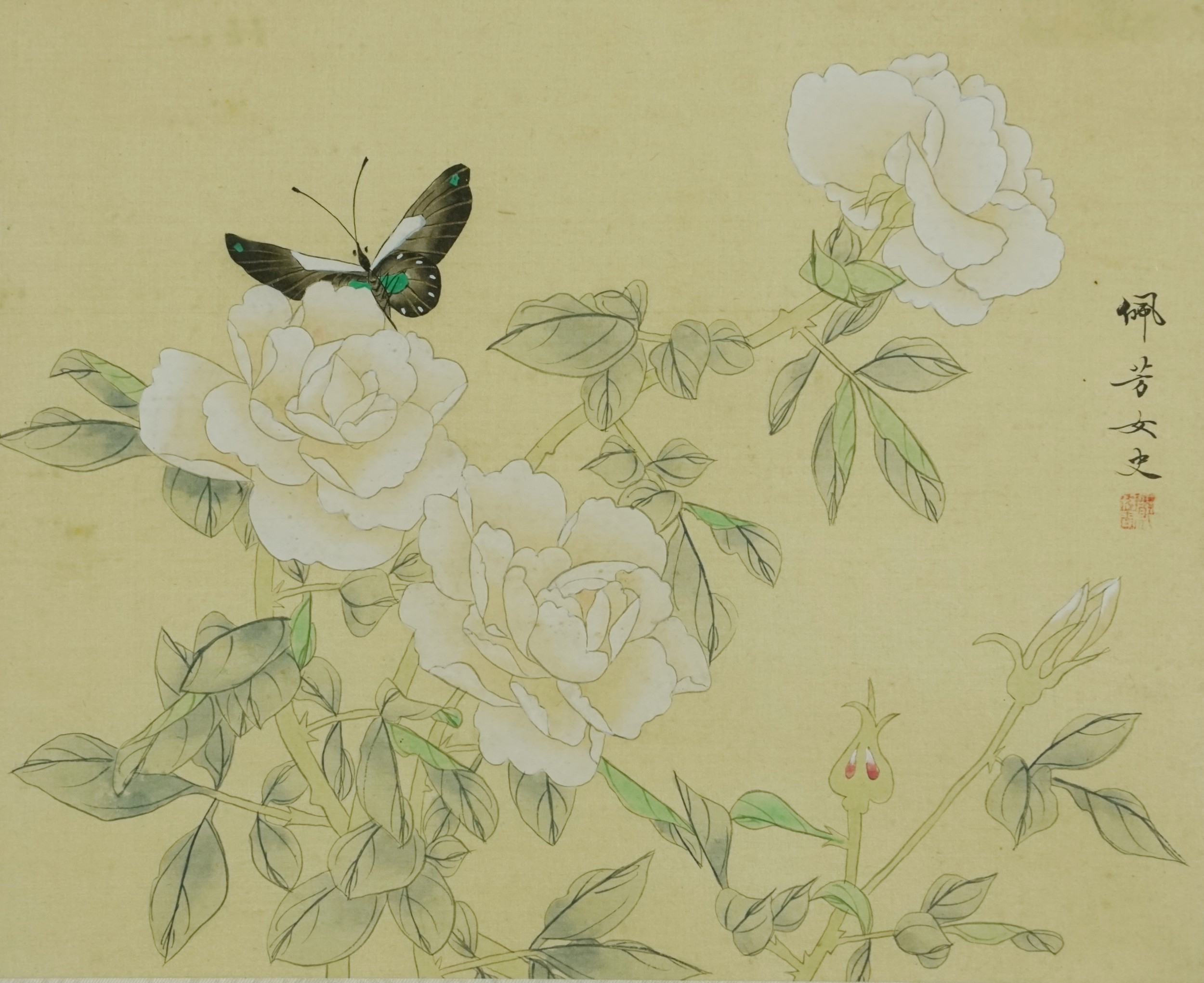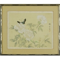 A Chinese watercolour on silk, signed, bearing four character mark, framed and glazed, 26cm x 32cm.