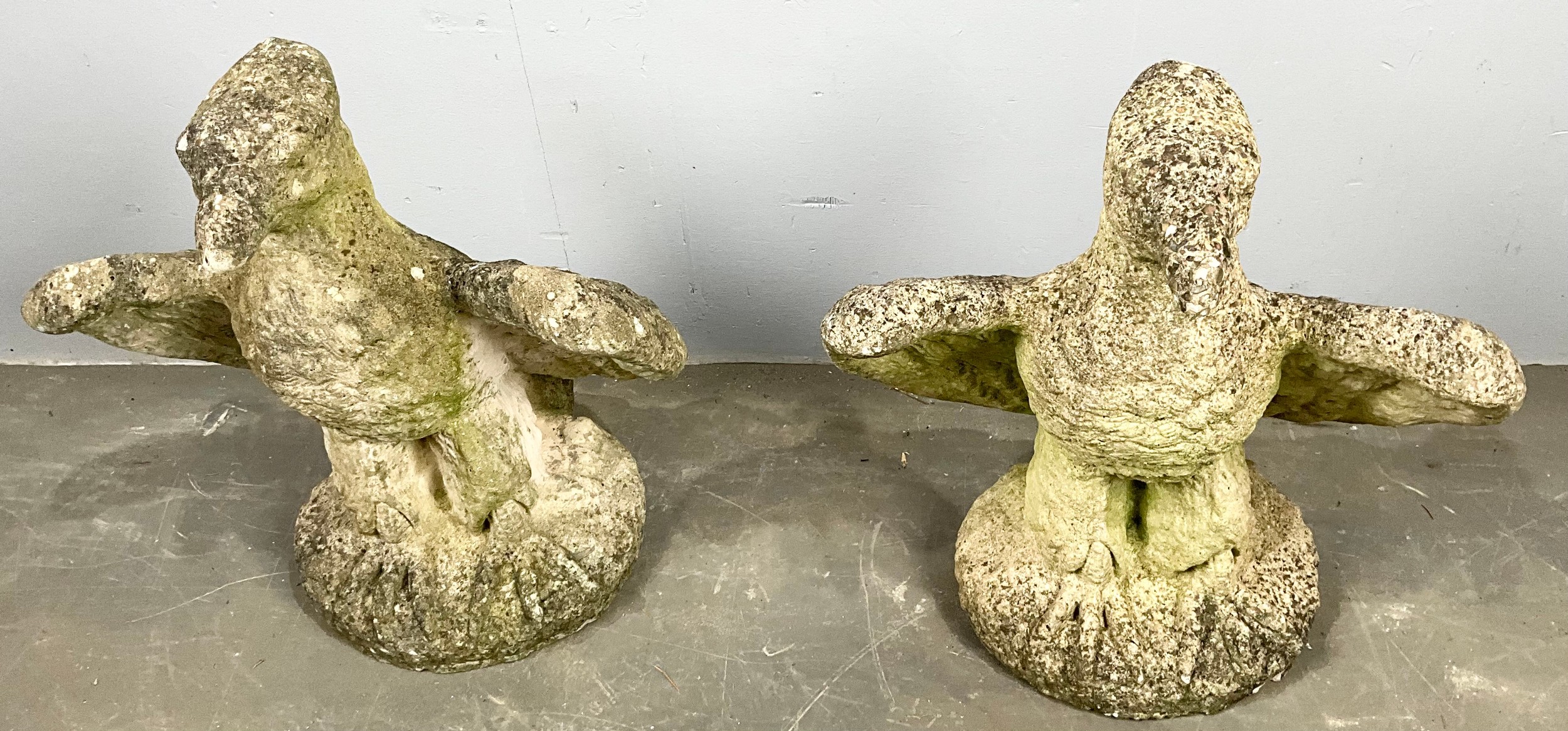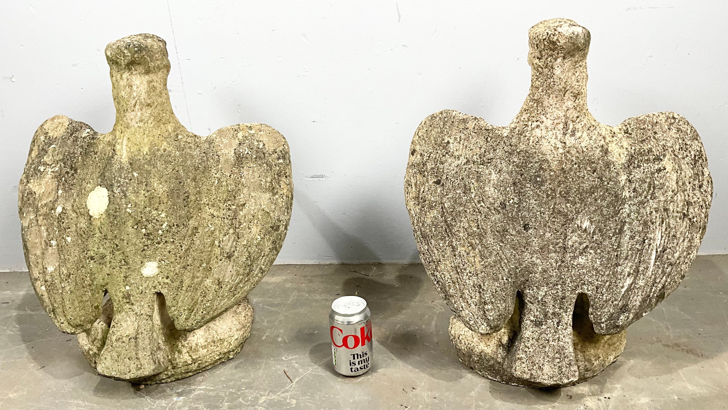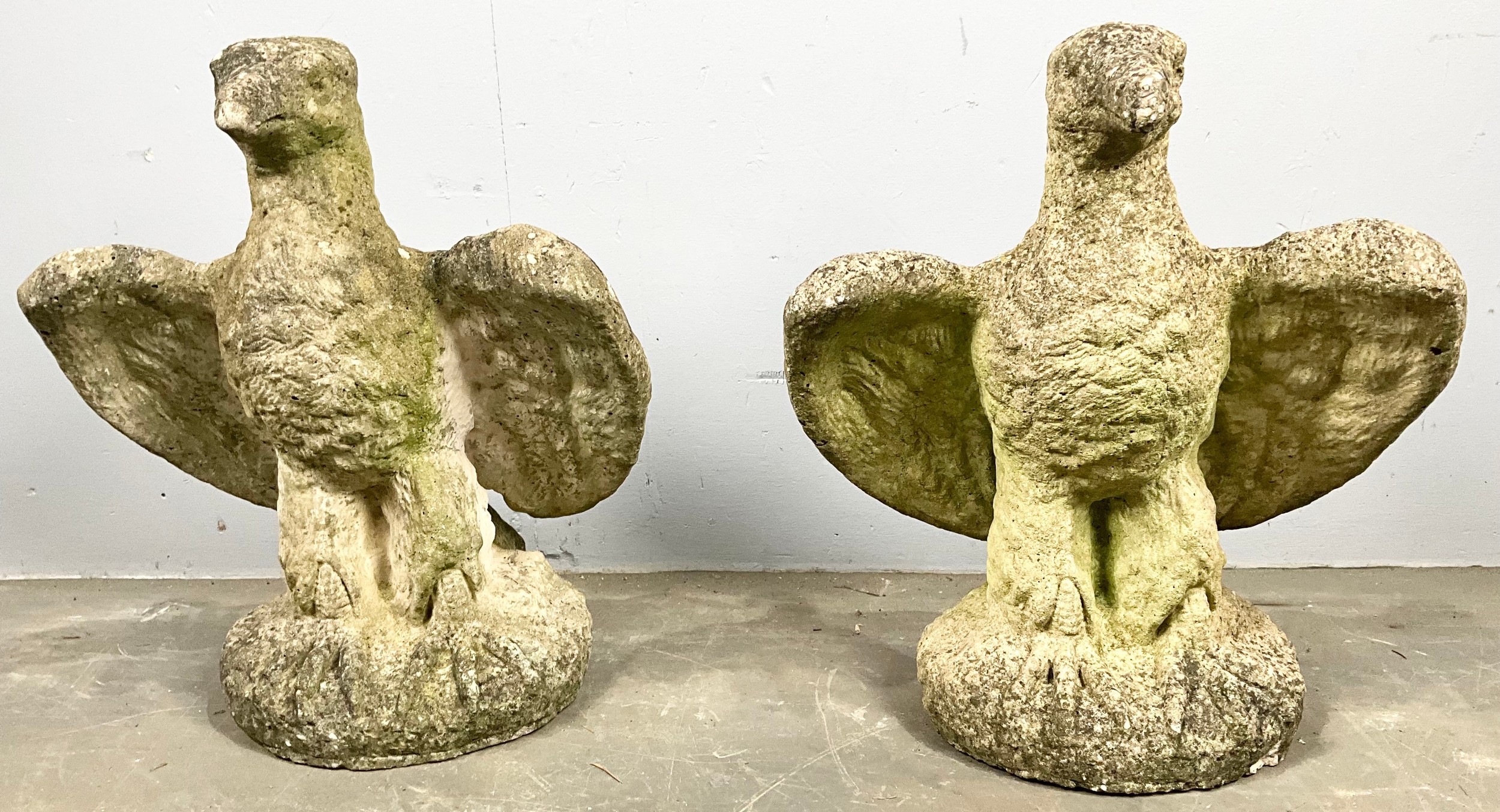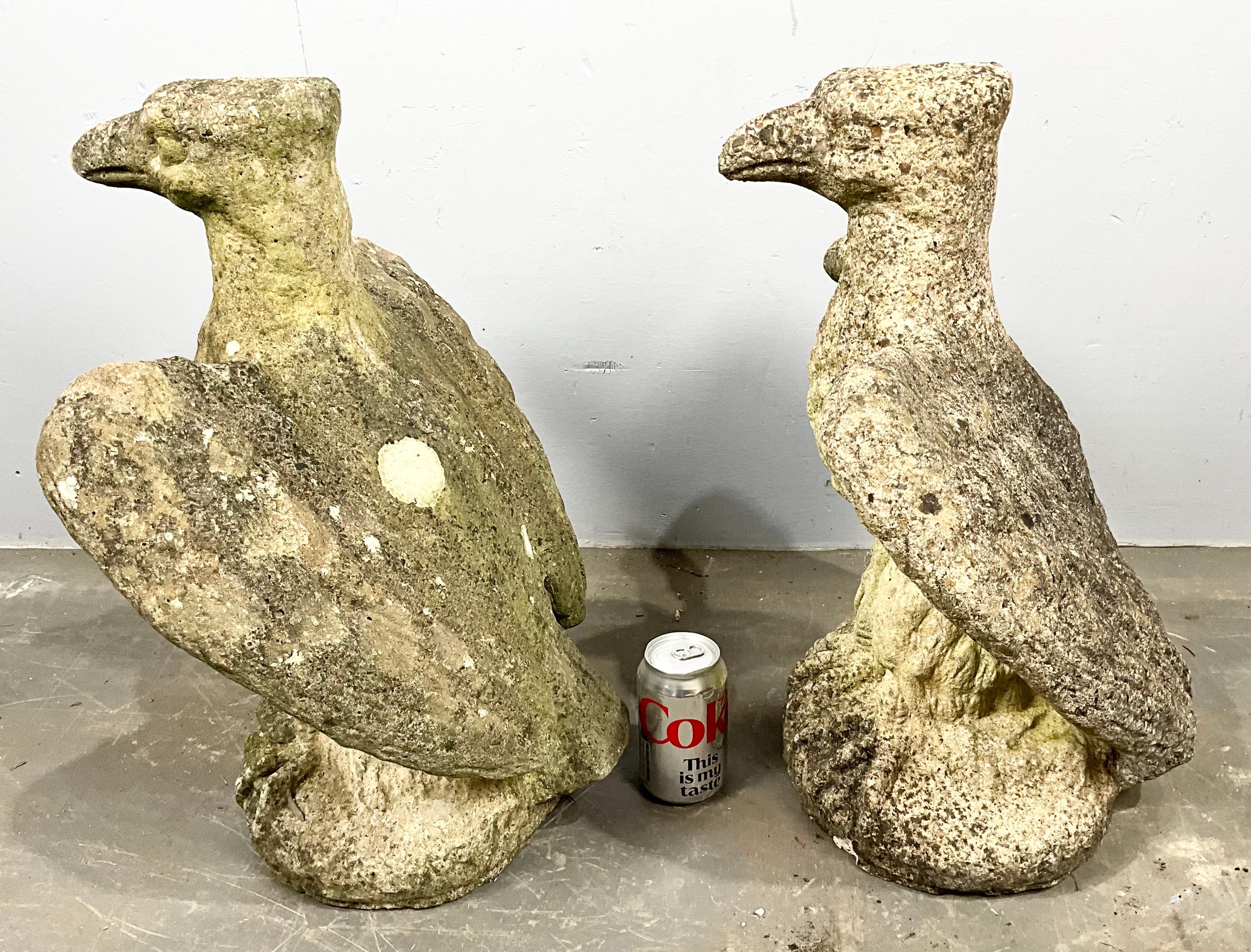 PAIR COMPOSITE STONE EAGLES GARDEN FEATURES 50cm TALL