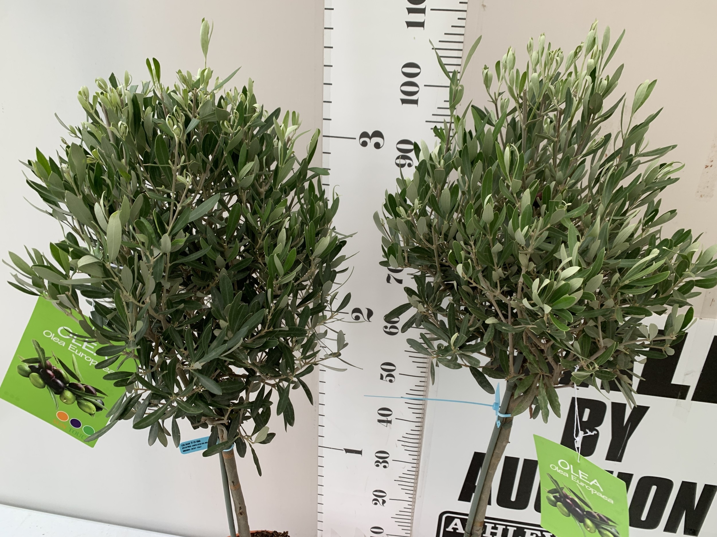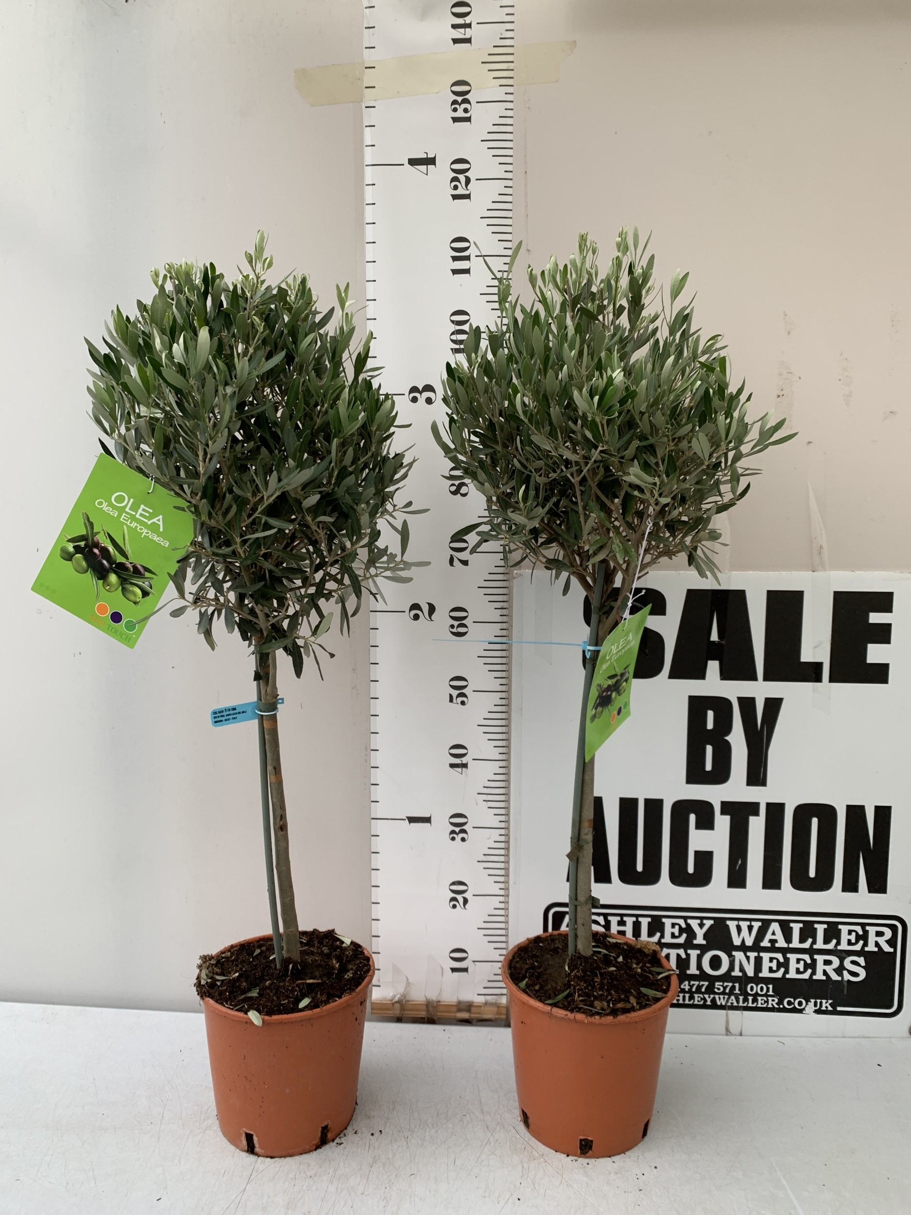 TWO OLIVE OLEA STANDARD TREES IN 3.5 LT POTS. APPROX 110CM TALL, TO BE SOLD FOR THE TWO. NO VAT