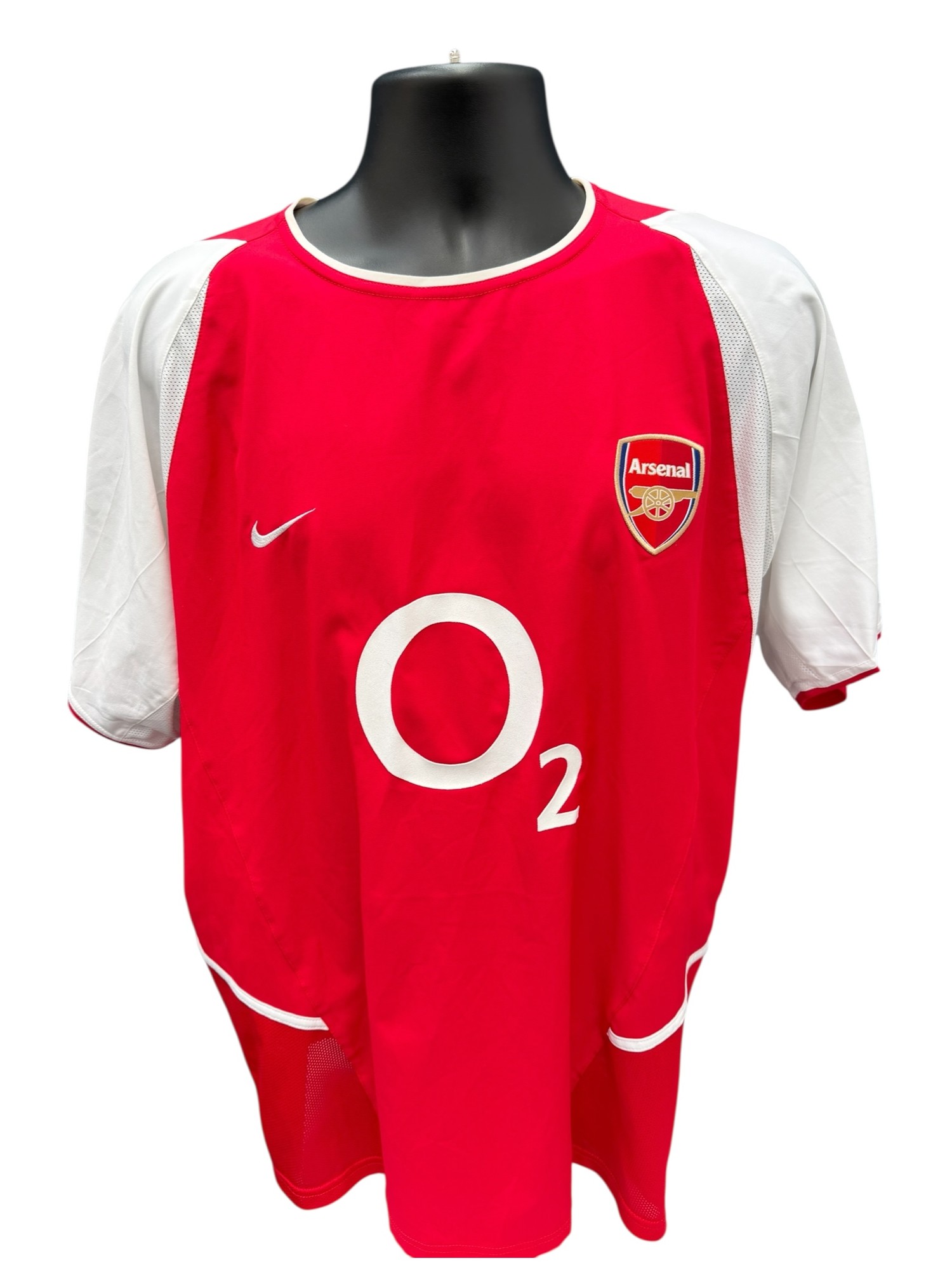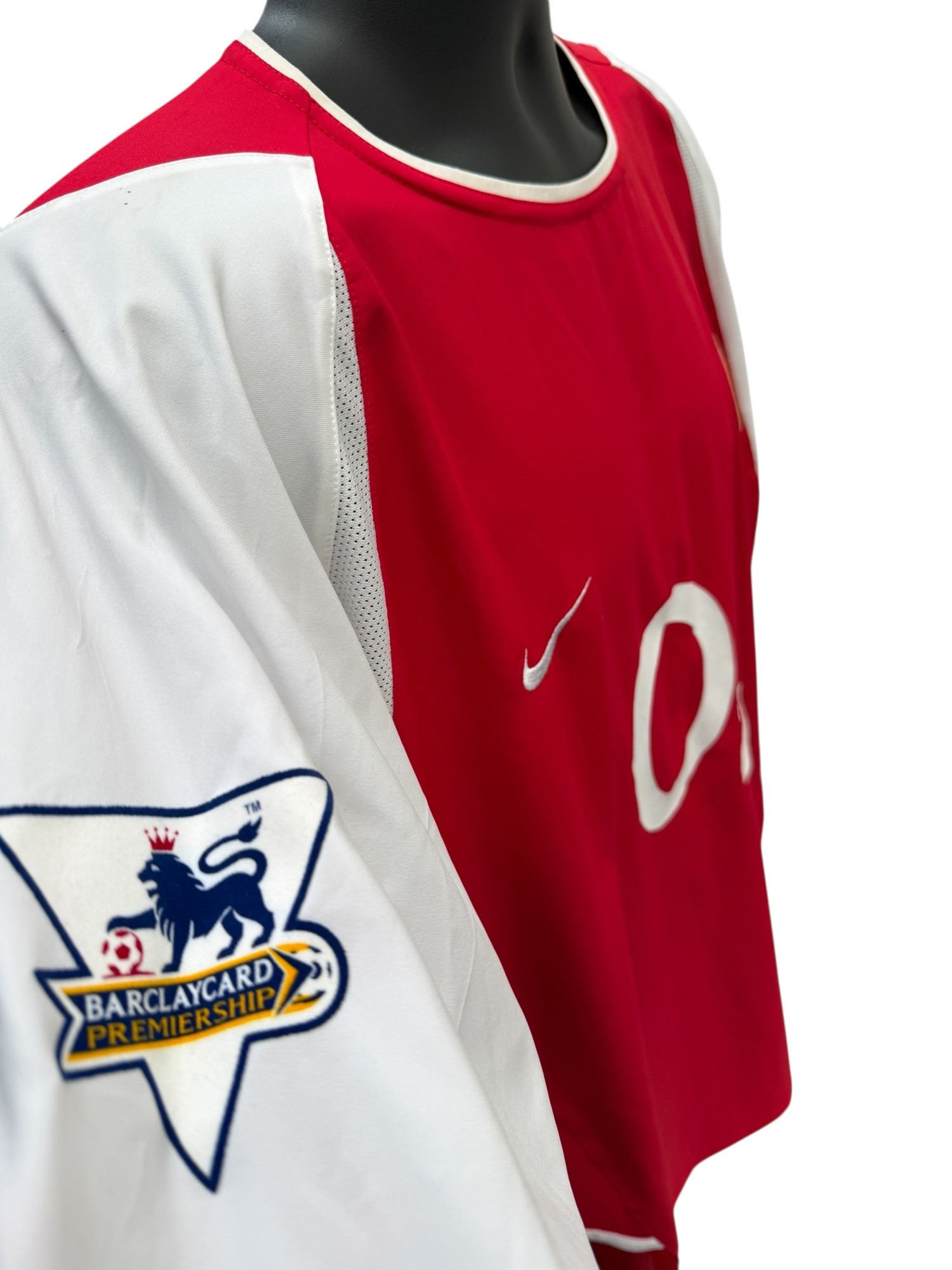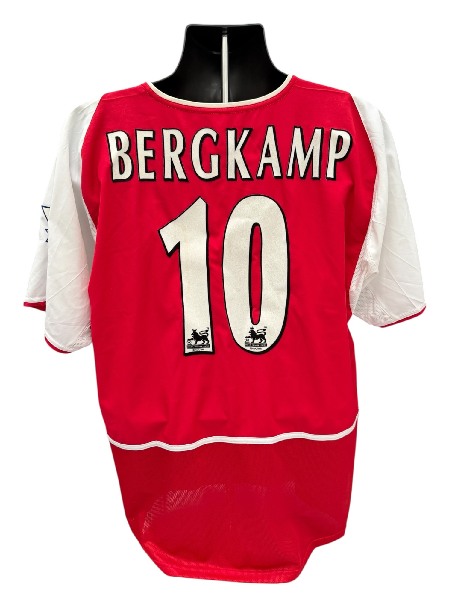 DENNIS BERGKAMP 2002-04 ARSENAL MATCH WORN FOOTBALL SHIRT, SHORT SLEEVED RED SHIRT, PREMIER LEAGUE PATCHES TO SLEEVES, n10 BERGKAMP.