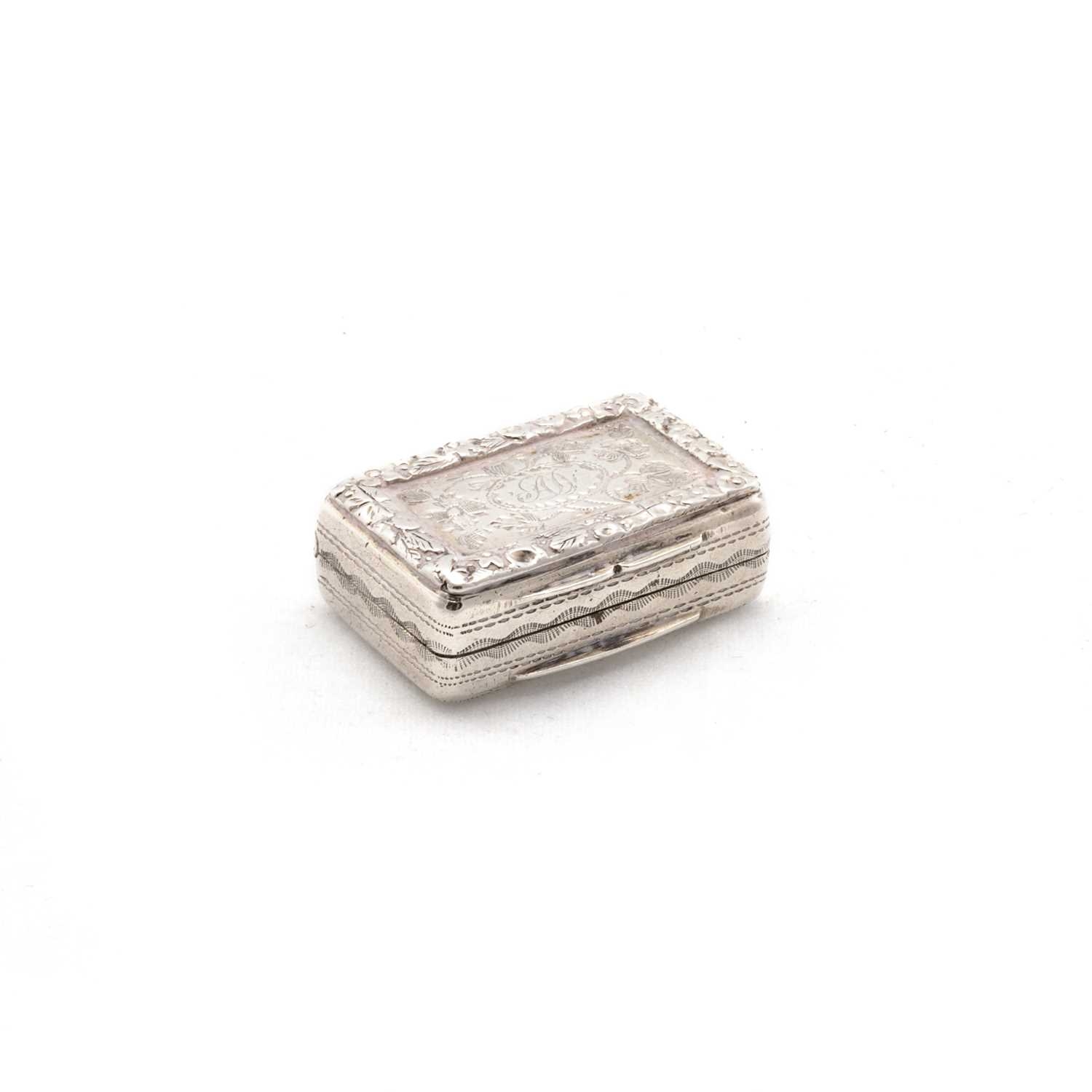 maker's mark T.S, Birmingham 1823, rectangular form, decorated with foliage and engraved with initials. 2.5cm wide