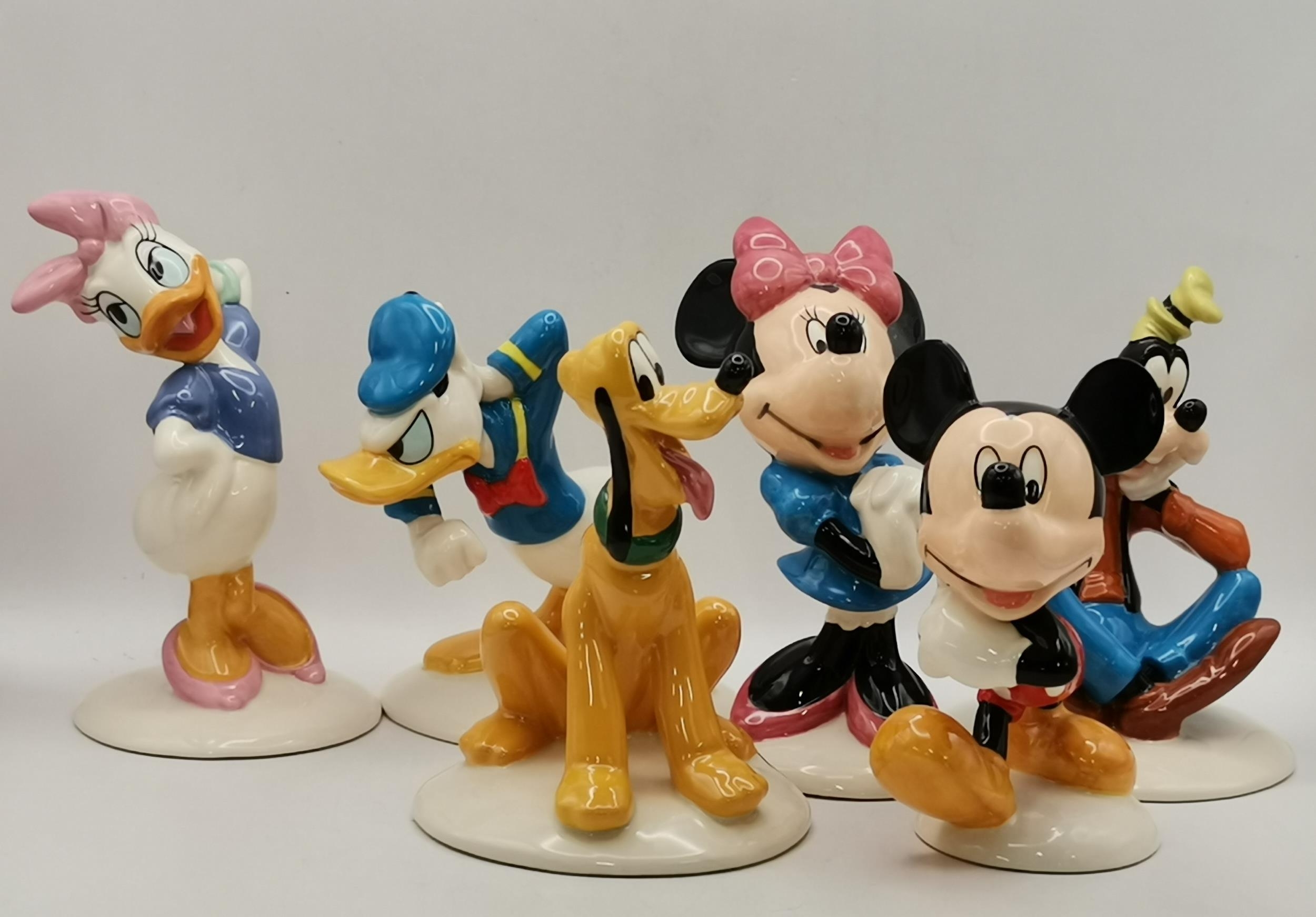 A Set of six Royal Doulton Mickey Mouse 70th Anniversary Figurines - Daisy Duck MM4, Mickey Mouse MM1, Goofy MM 5, Minnie MM 2, Donald Duck MM 3 and Pluto MM 6