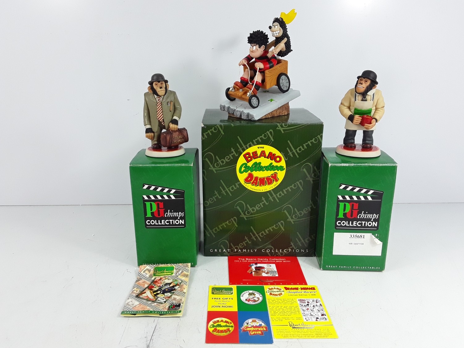 One boxed Beano figure and two PG Tips