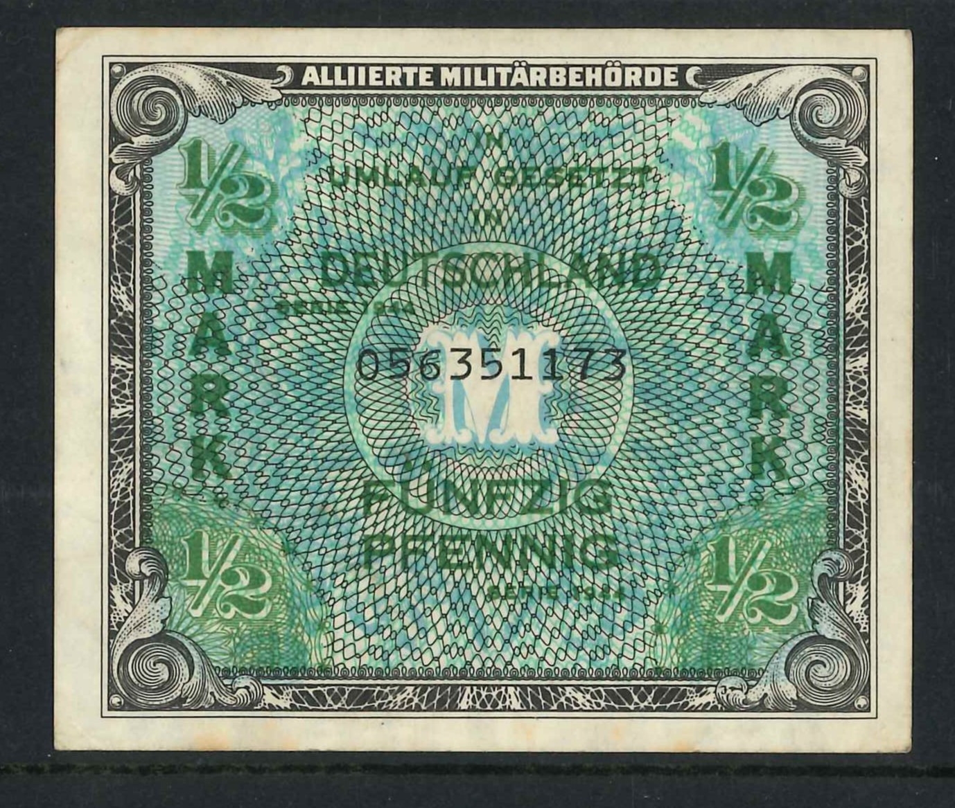 Banknotes; Germany (Allied Occupation); 1944 ½m with 9-digit serial number, VF, Krause 191a.