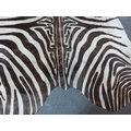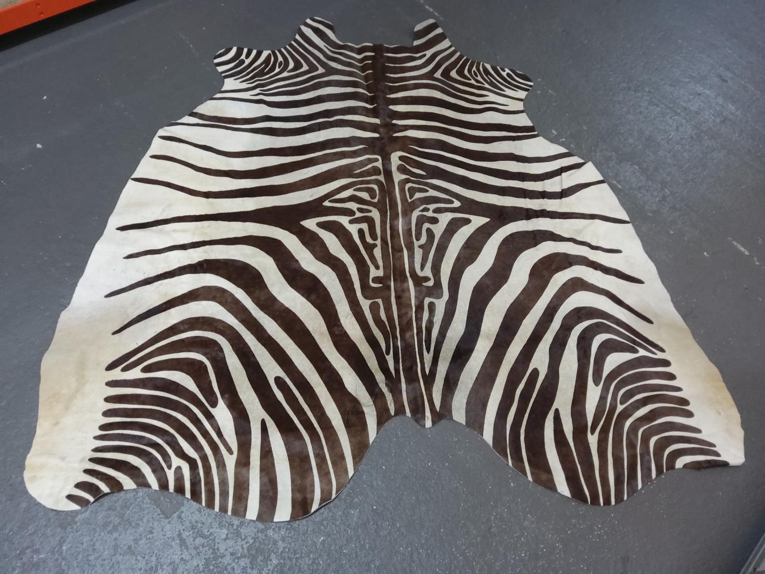 Large cow hide rug with zebra print, approx 175 x 170cms
