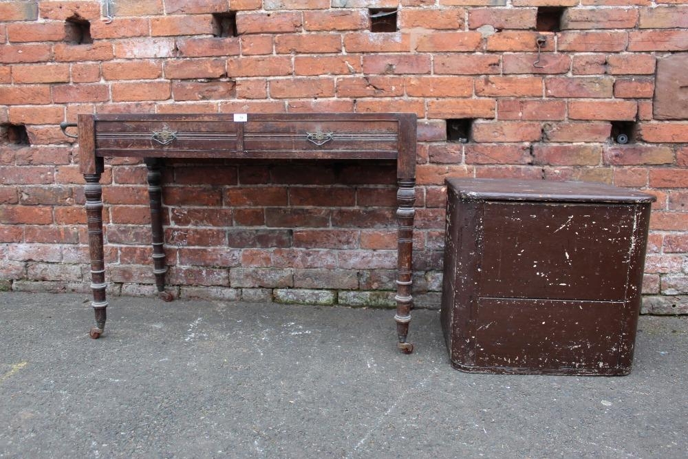 AN EDWARDIAN WASHSTAND. minus marble, together with a small painted box, W 55 cm (2)
