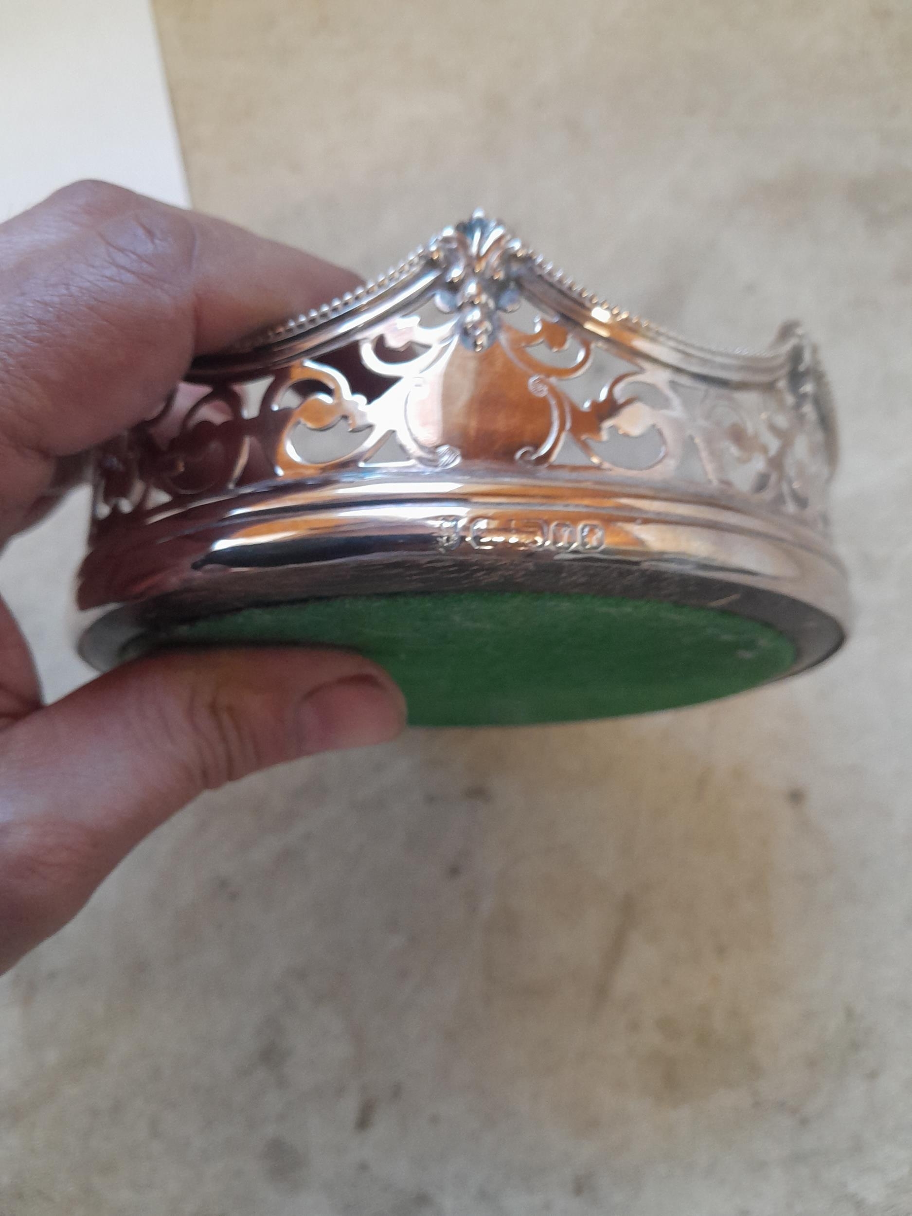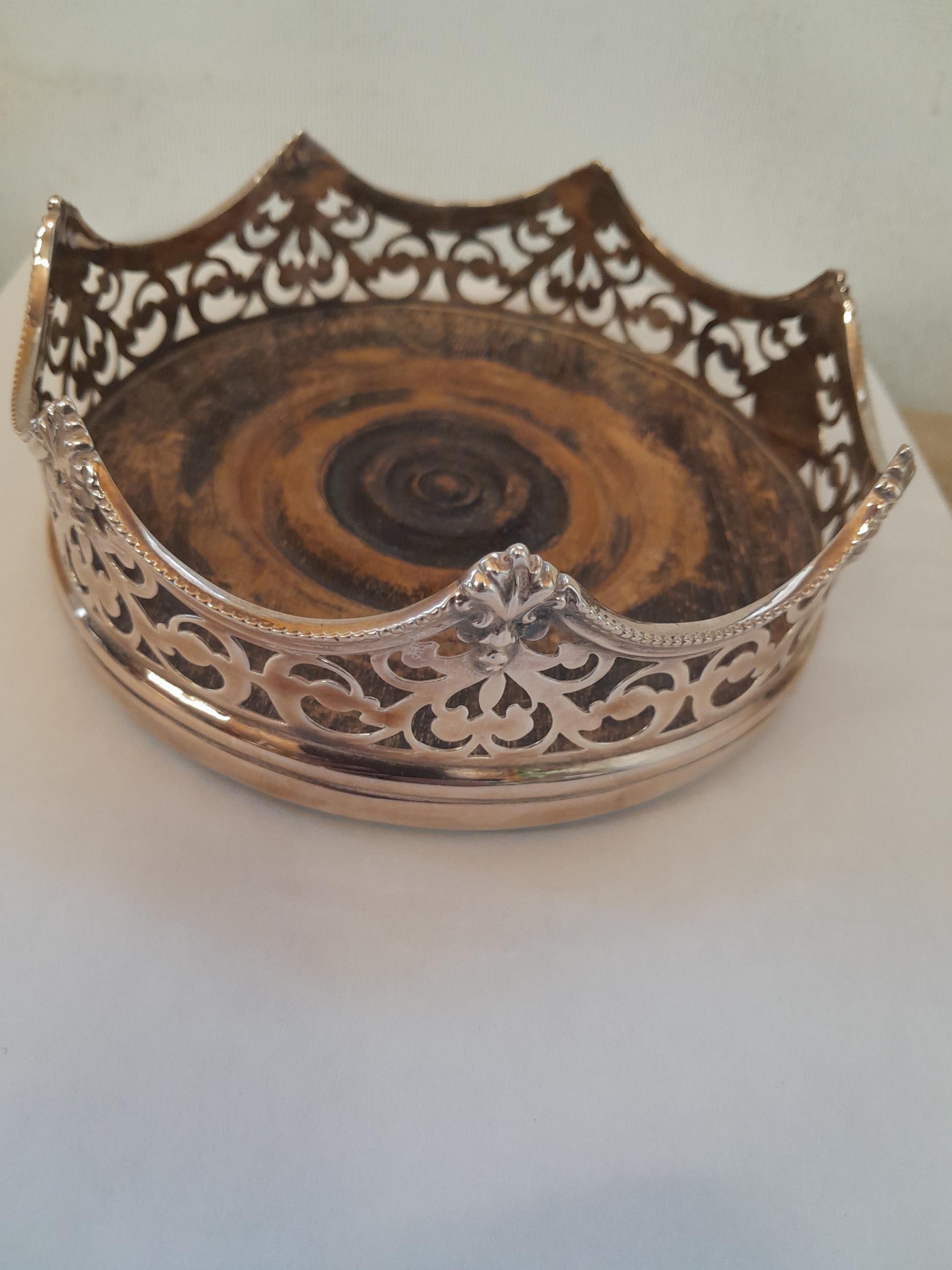 Silver crown shaped wine bottle coaster marks rubbed Sheffield 1891