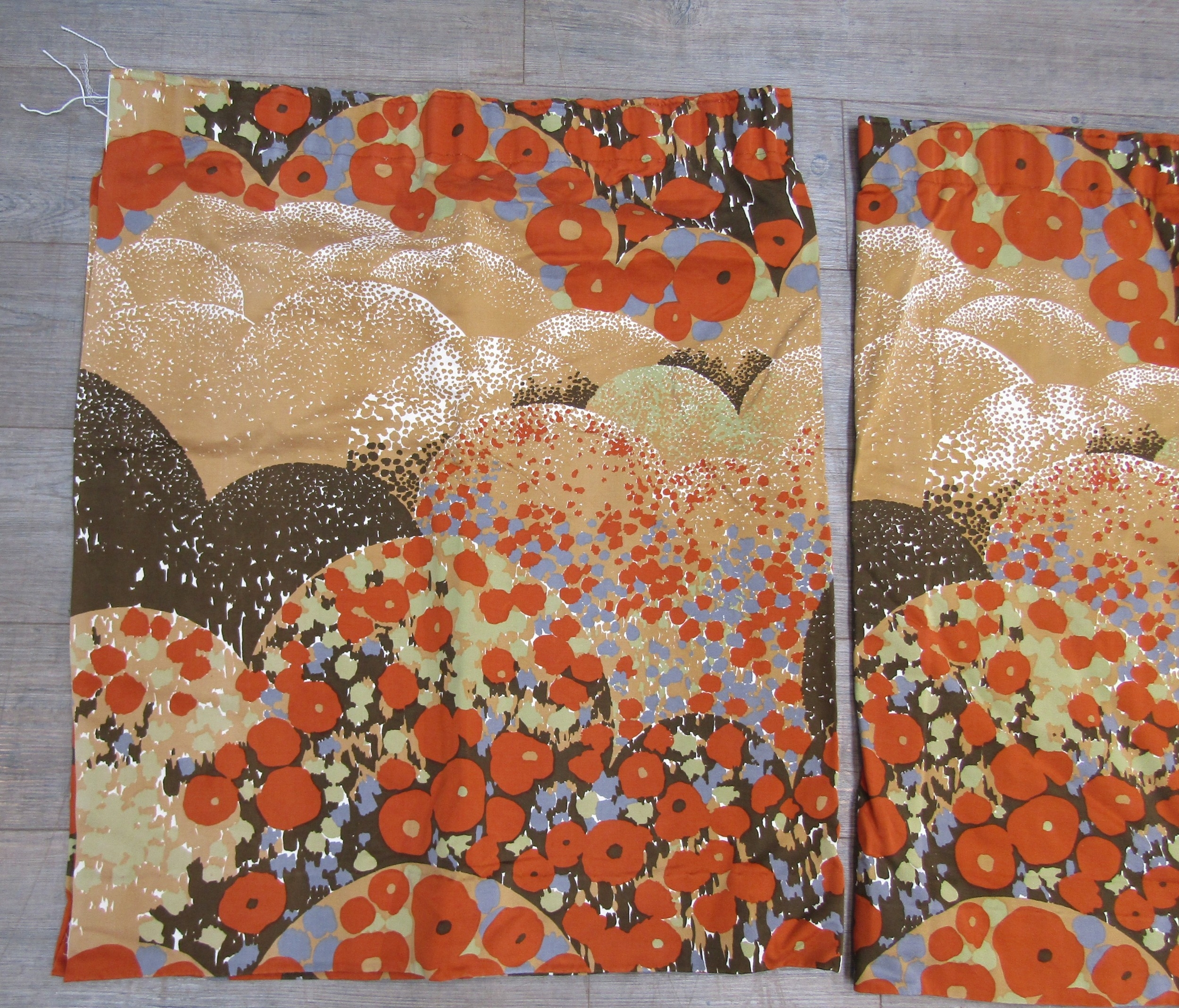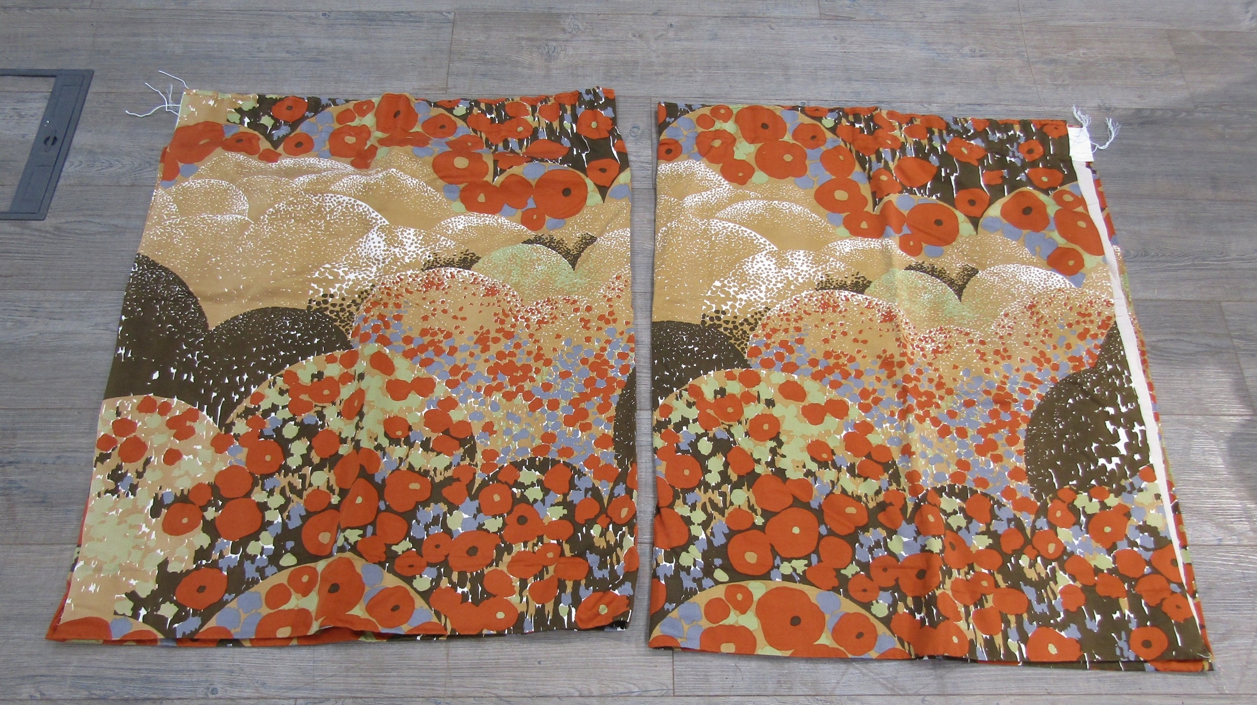 A pair of Heals Diane Bell 'Vista' pattern curtain panels, each panel measures 90cm drop x 145cm wide