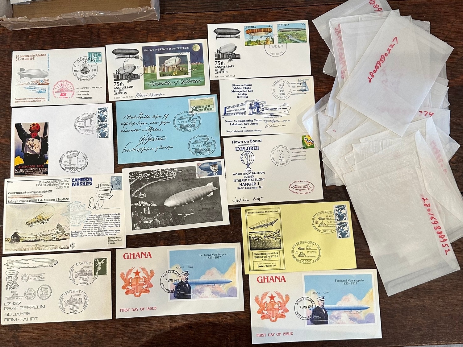 collection of German and others Graf Zeppelin WW1 First Day Covers, postcards etc. with stamps on (29)