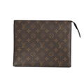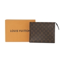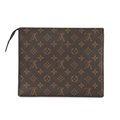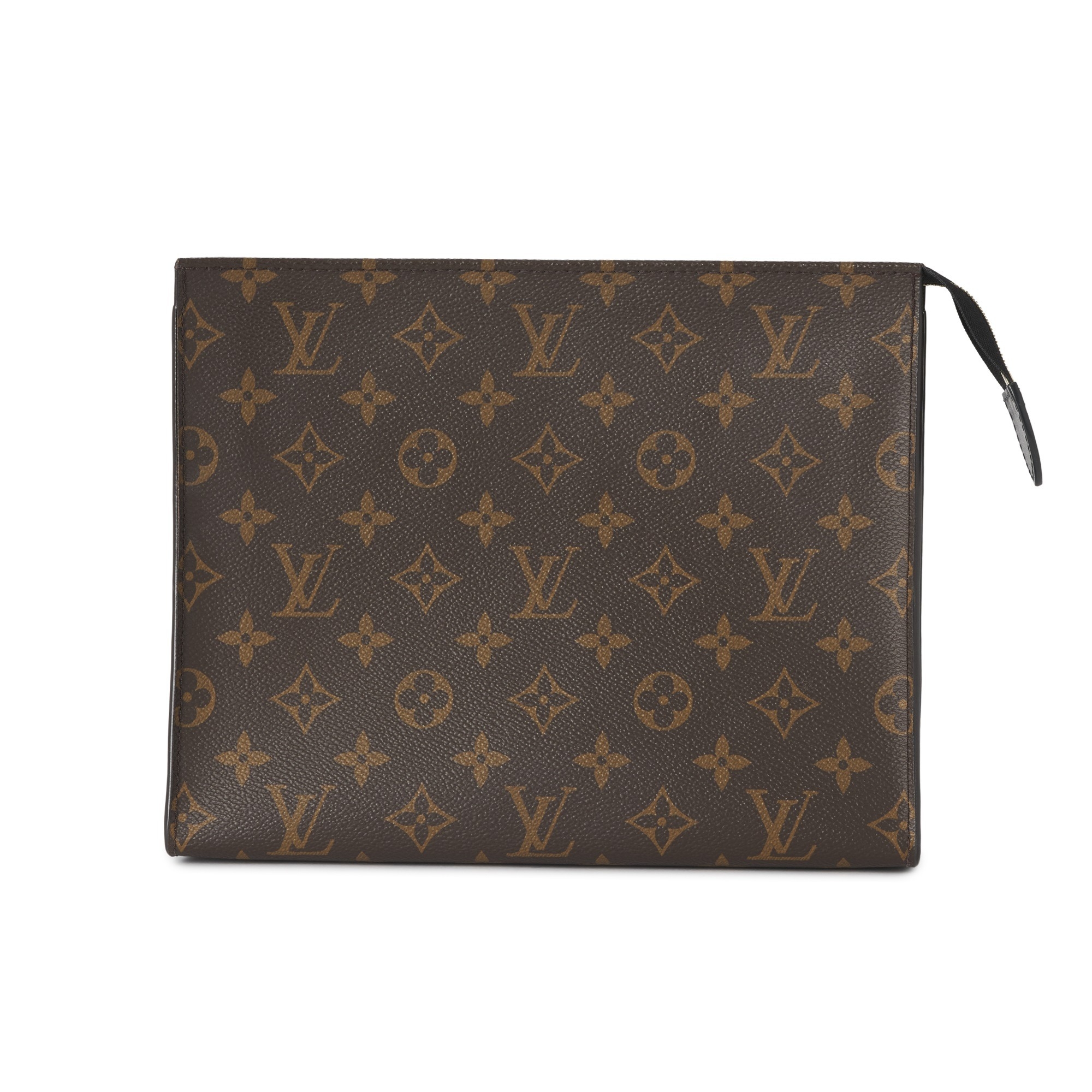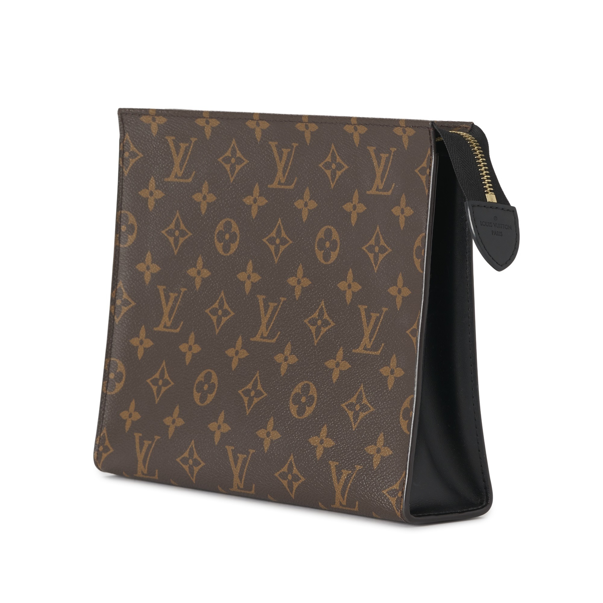 Louis Vuitton, a monogram macassar toiletry clutch bag, featuring the maker's monogram coated canvas exterior, with smooth black leather trim, top zip fastening and black cross-grain lining with four card slots and one large slip pocket, measuring 5.5 by 20 by 25cm, with maker's dust bag, box and receipt