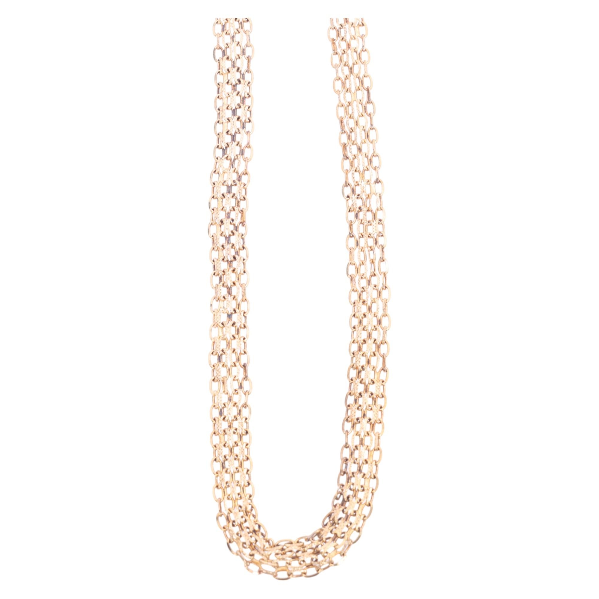 An Italian 9ct gold chain necklace, textured and polished decoration, band width 6mm, 44cm, 9.2g