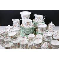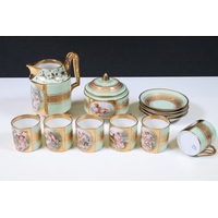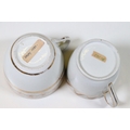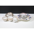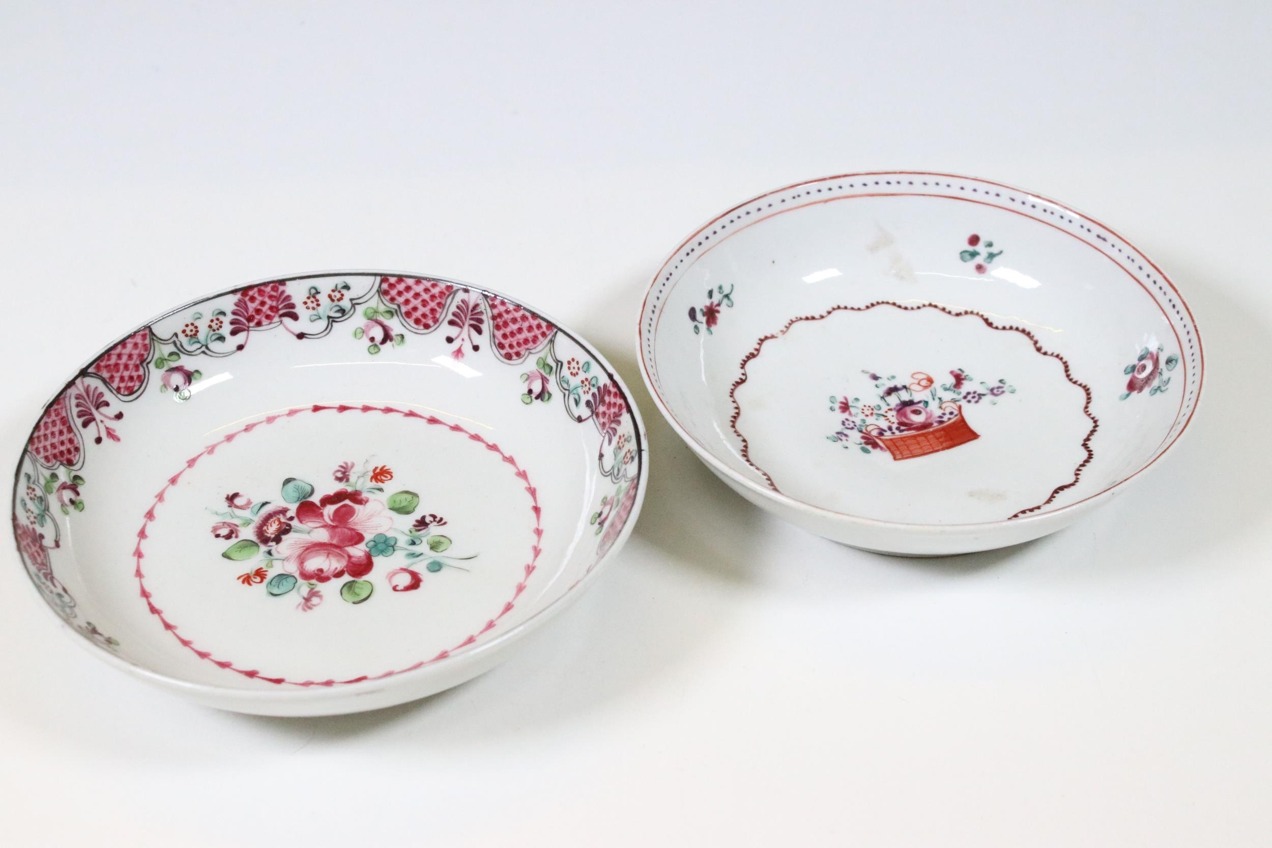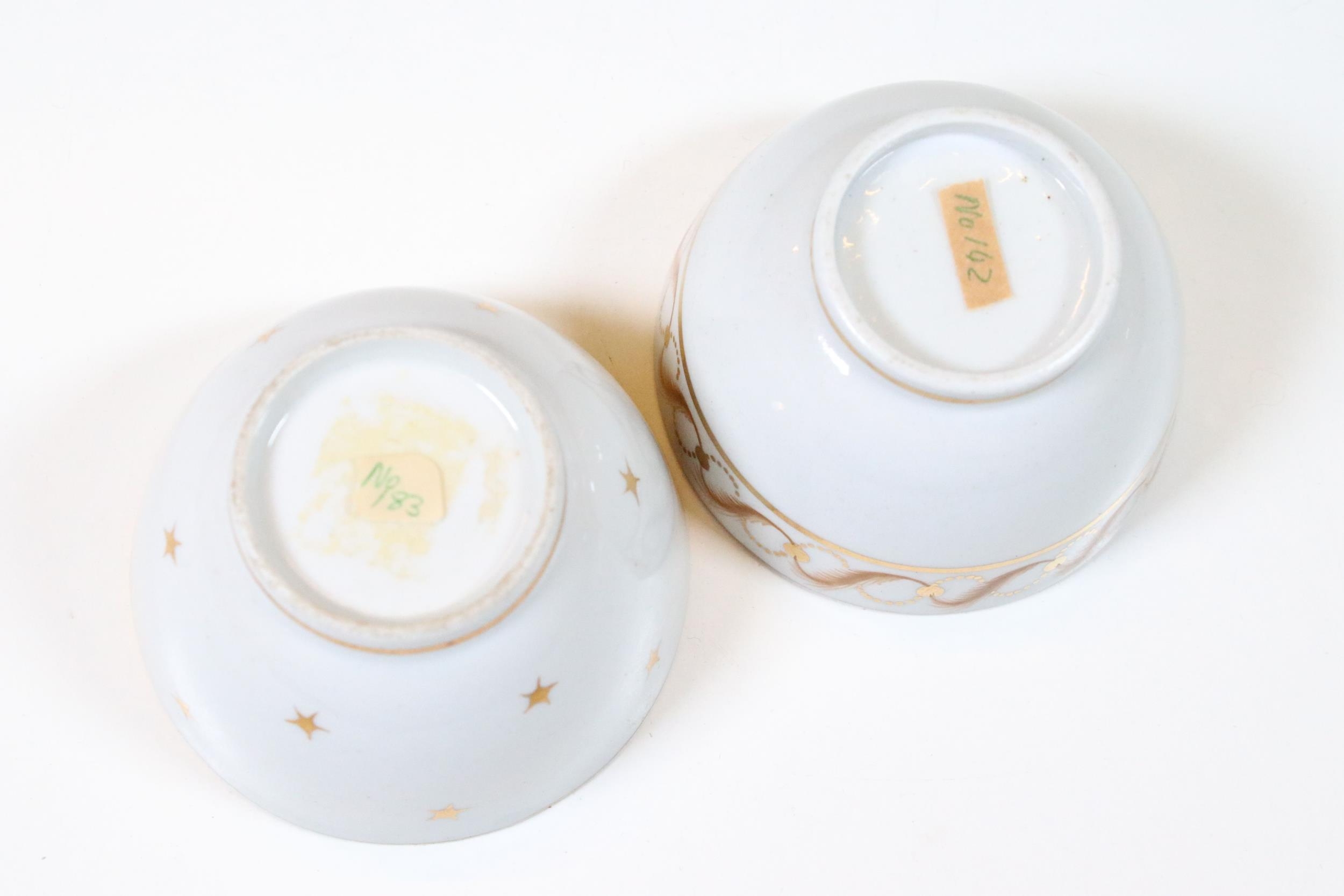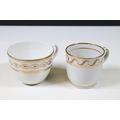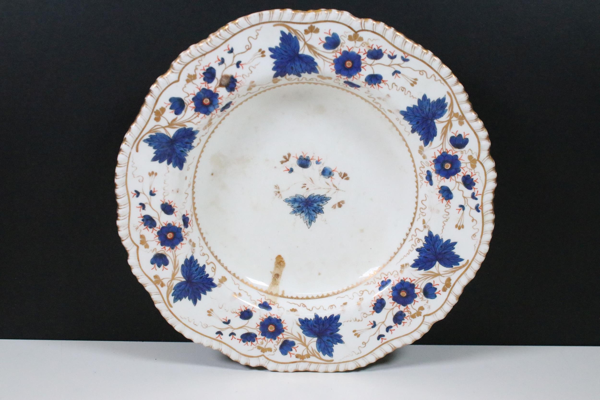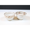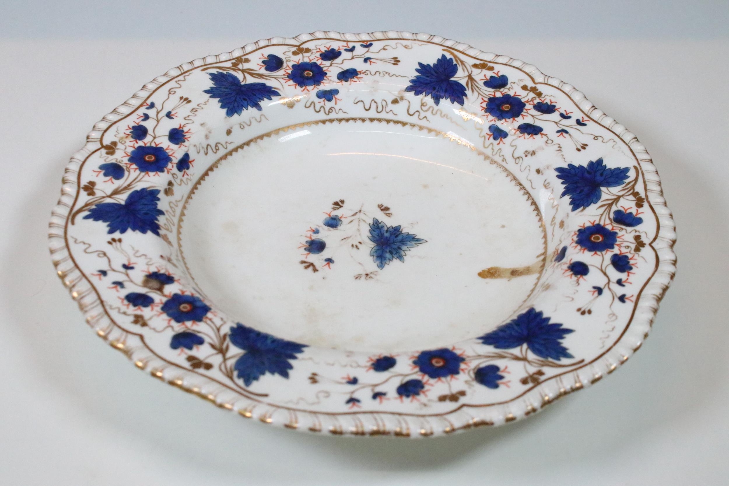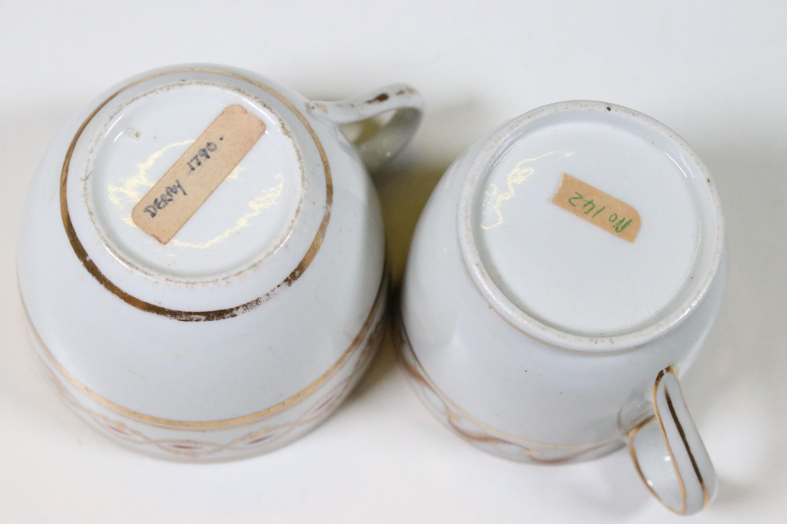 Collection of New Hall ceramics to include gilt pattern coffee and tea set including 1 x teacup and saucer, 1 x coffee can and saucer with bowl, tea bowl and plate with gilt and flower decoration, etc, plus a Coalport plate with blue flower and gilt decoration