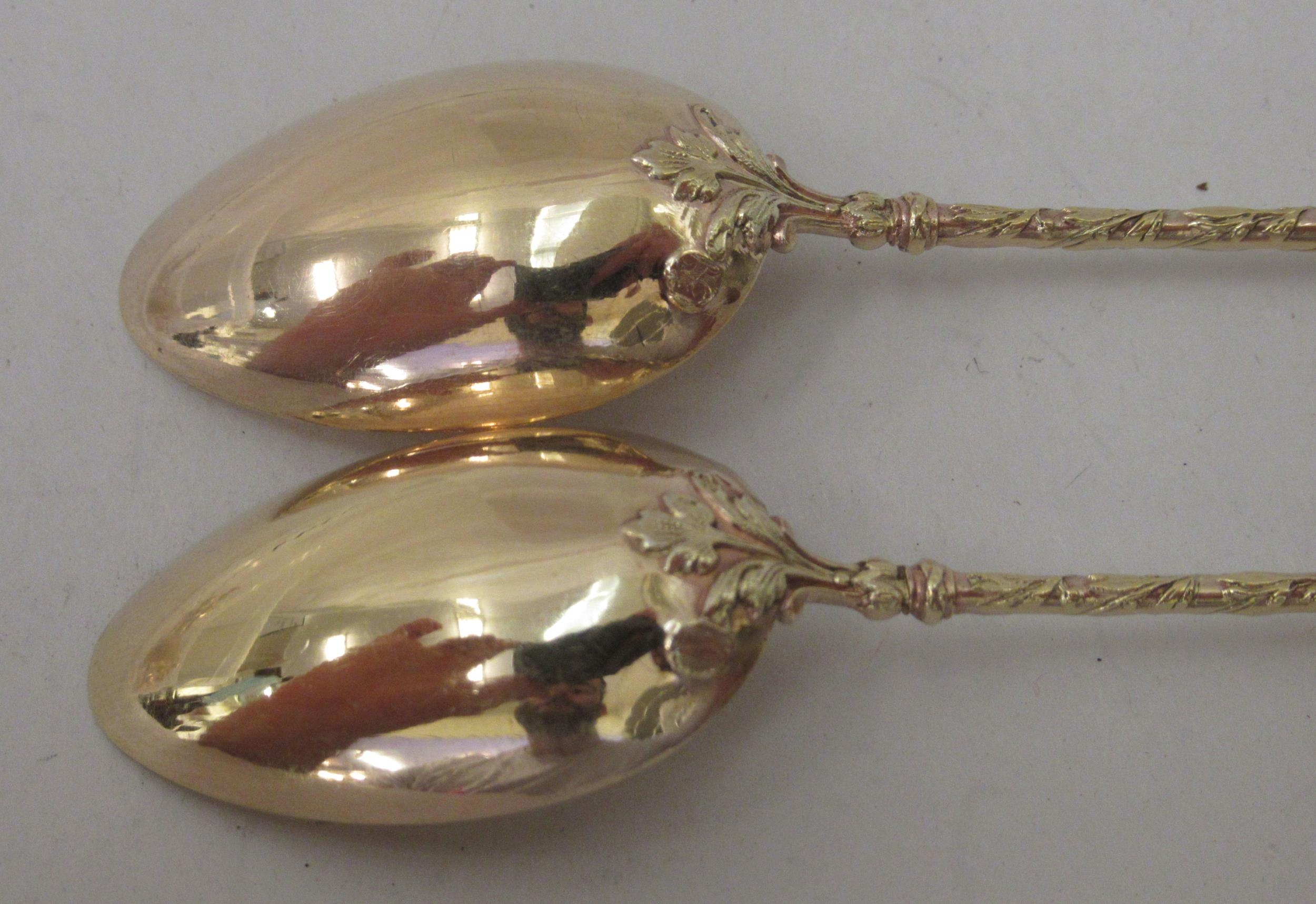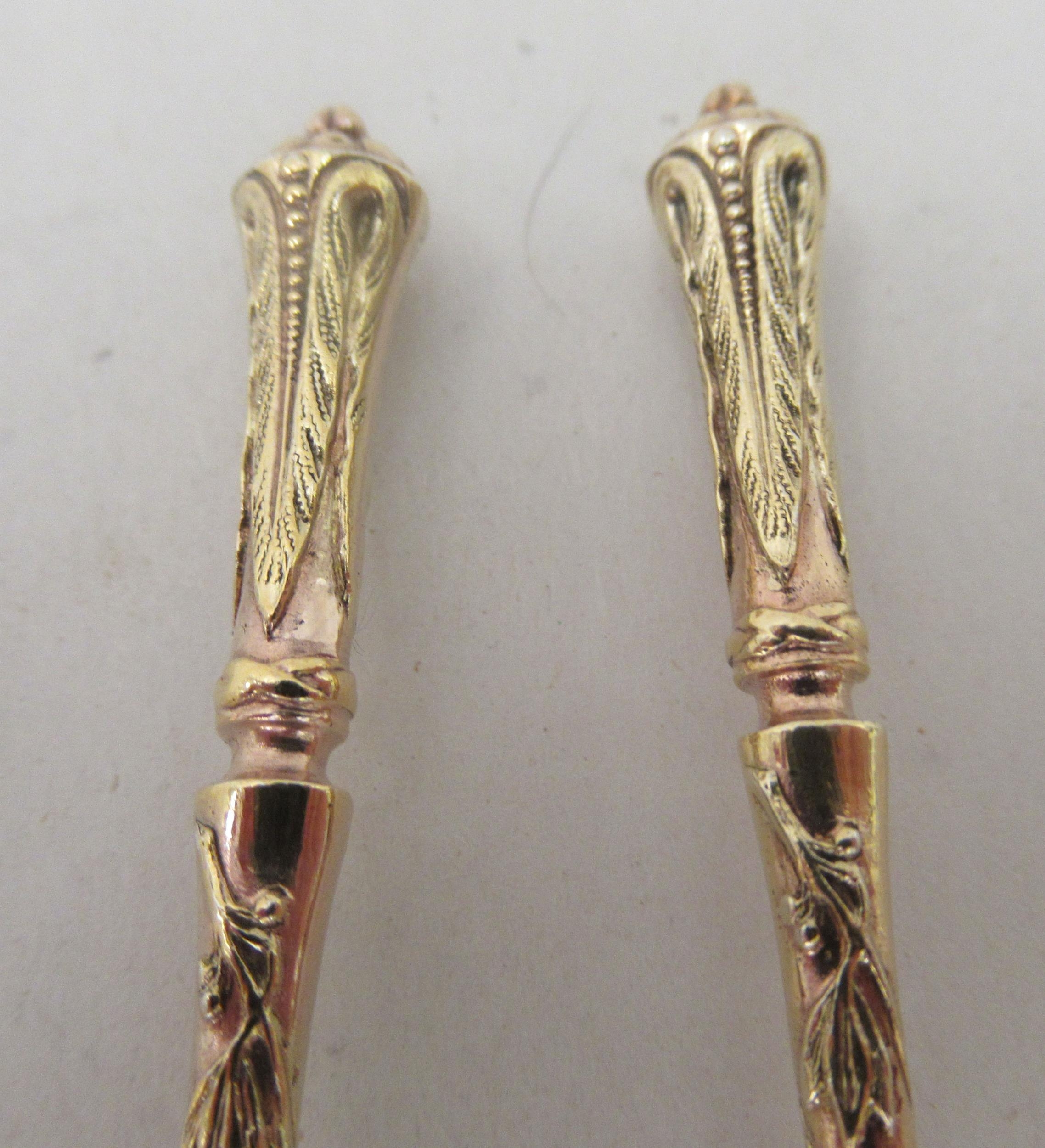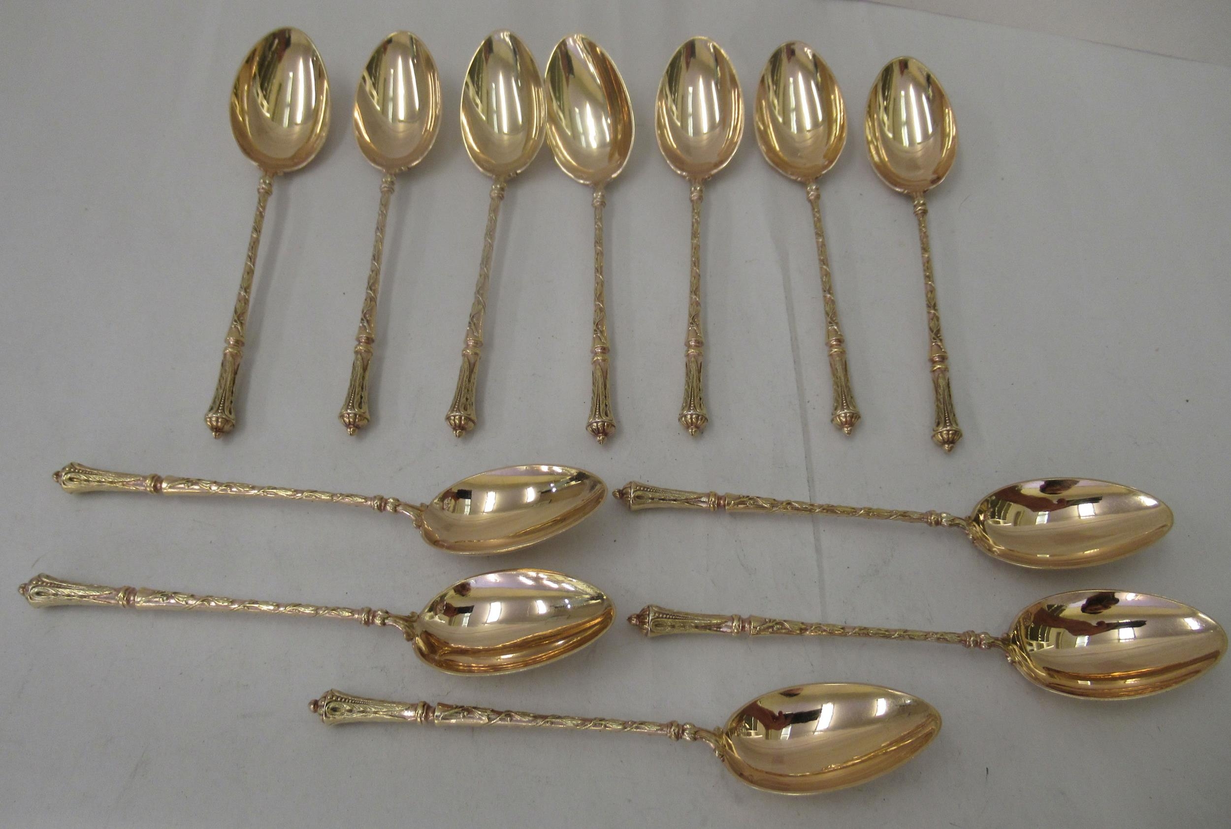 A set of twelve early 20thC French silver gilt teaspoons with decoratively cast handles