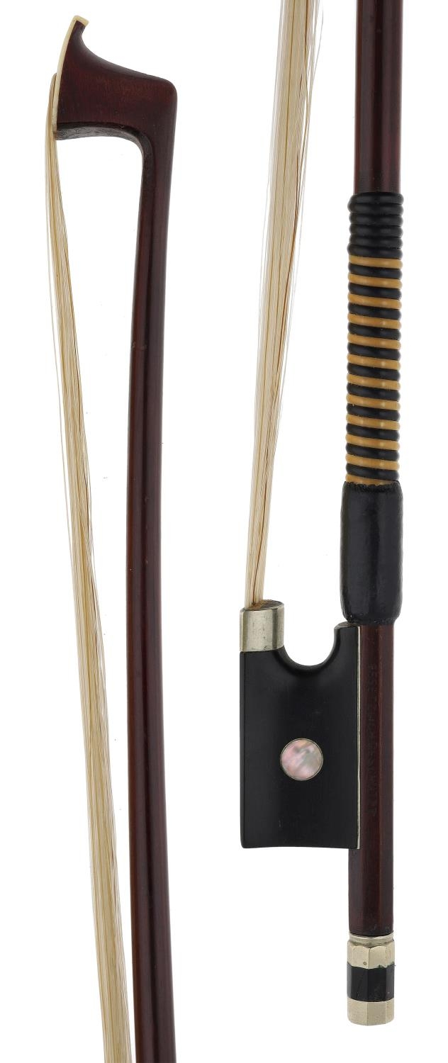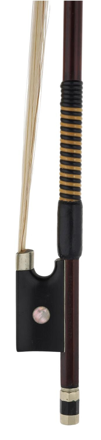 Rare German nickel mounted violin bow stamped Gezetzlich Geschutz, 60gm