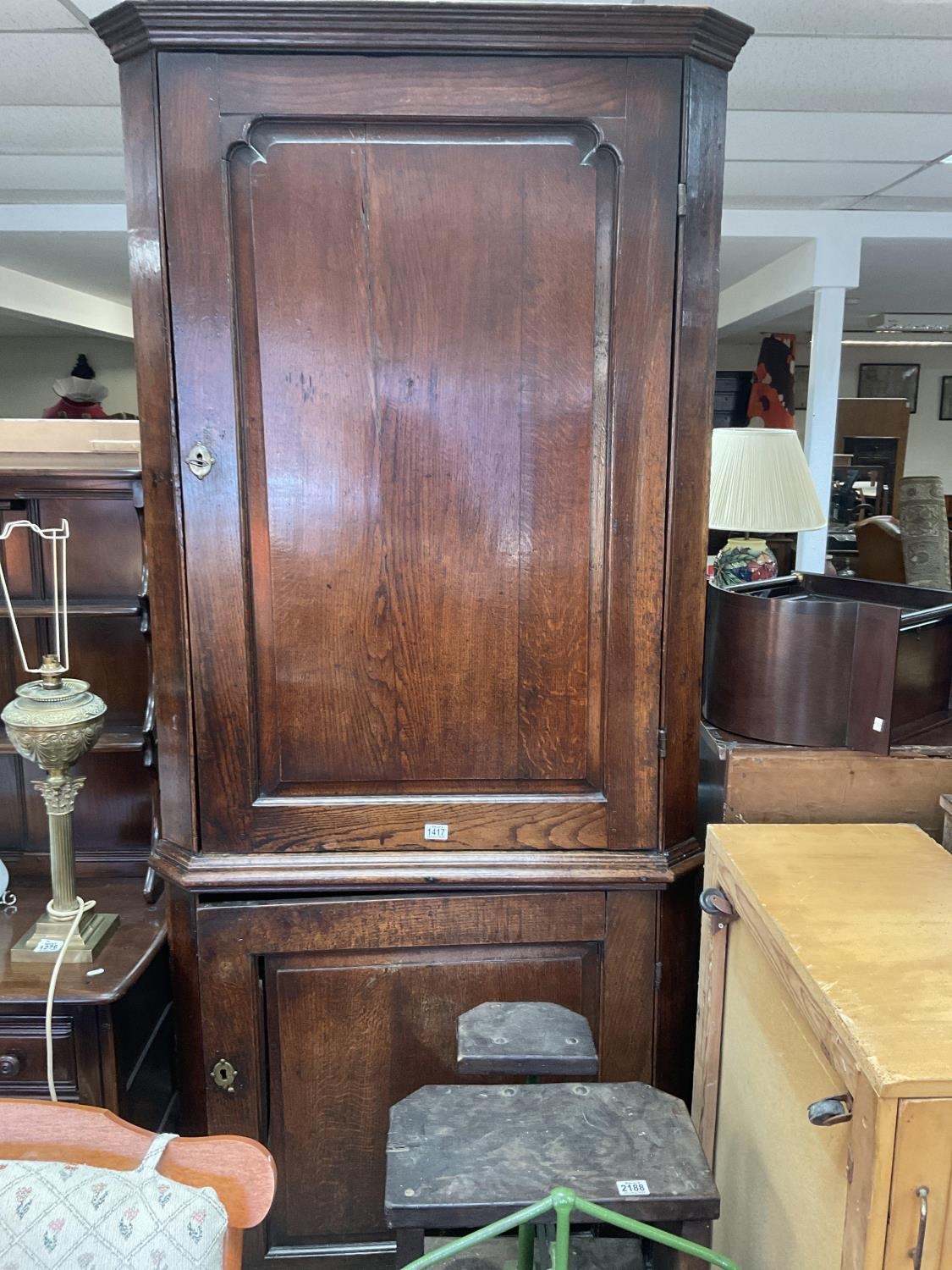 A Georgian Country Oak Antique Floor Standing Corner Cupboard, C.1800. 223cm x 95cm