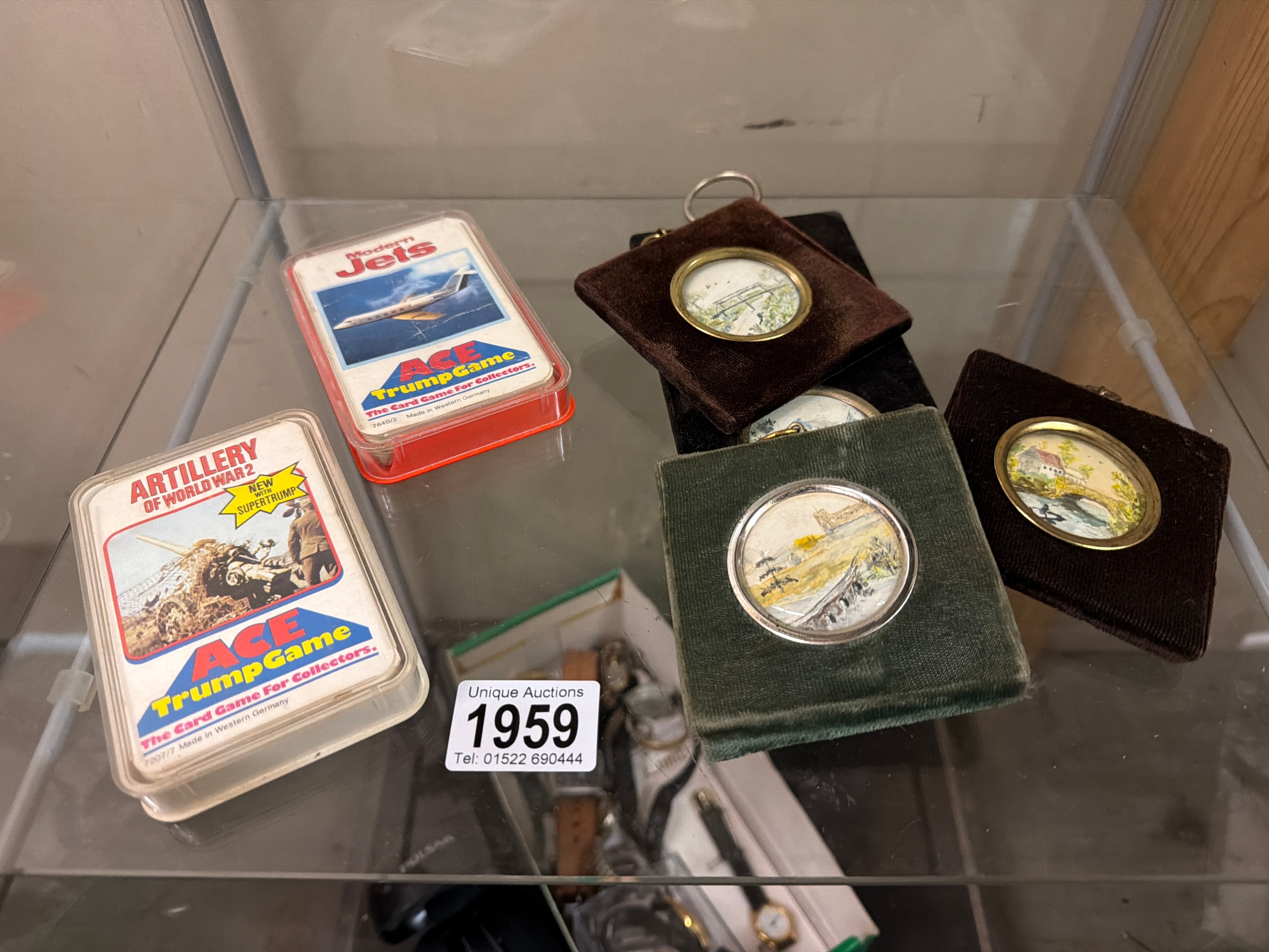 2 1970’s Ace Trump card games & 4 Victorian hand painted pictures