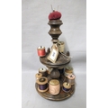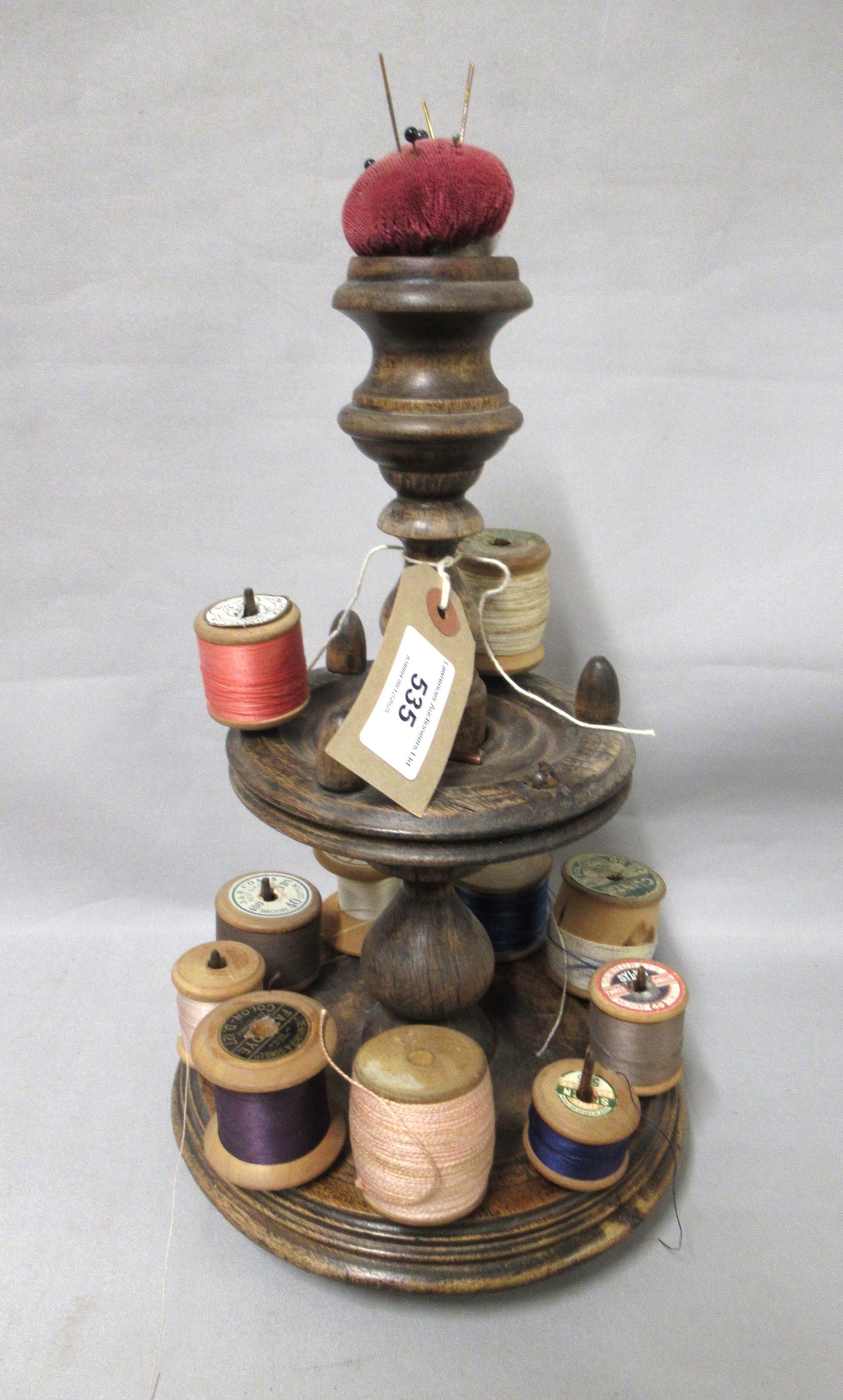 Mid 19th Century walnut cotton reel stand with pin cushion top, 34cm high