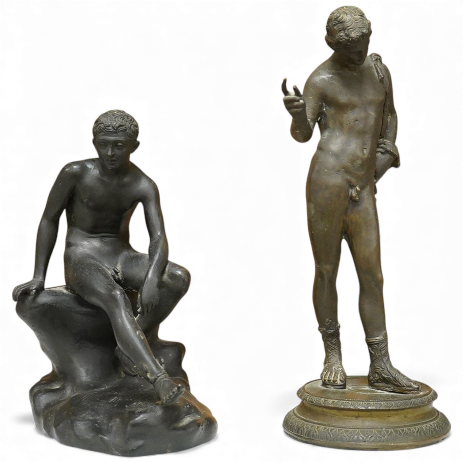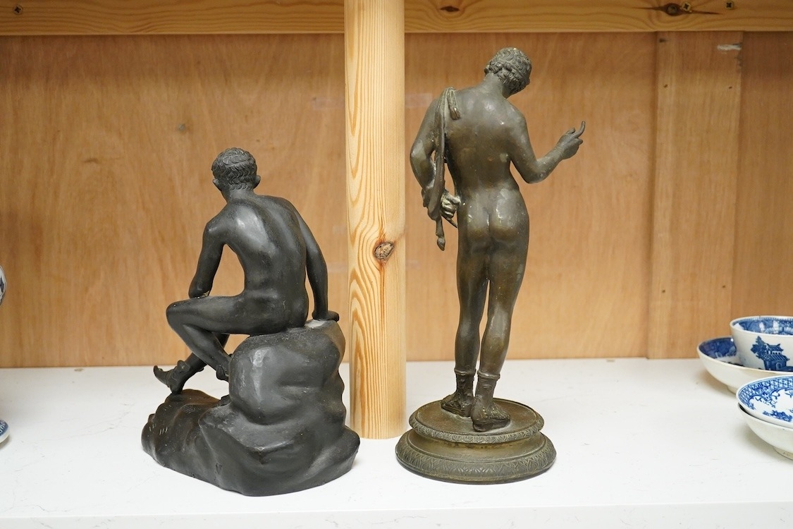 After the Antique - two bronze classical figures, tallest 28cm