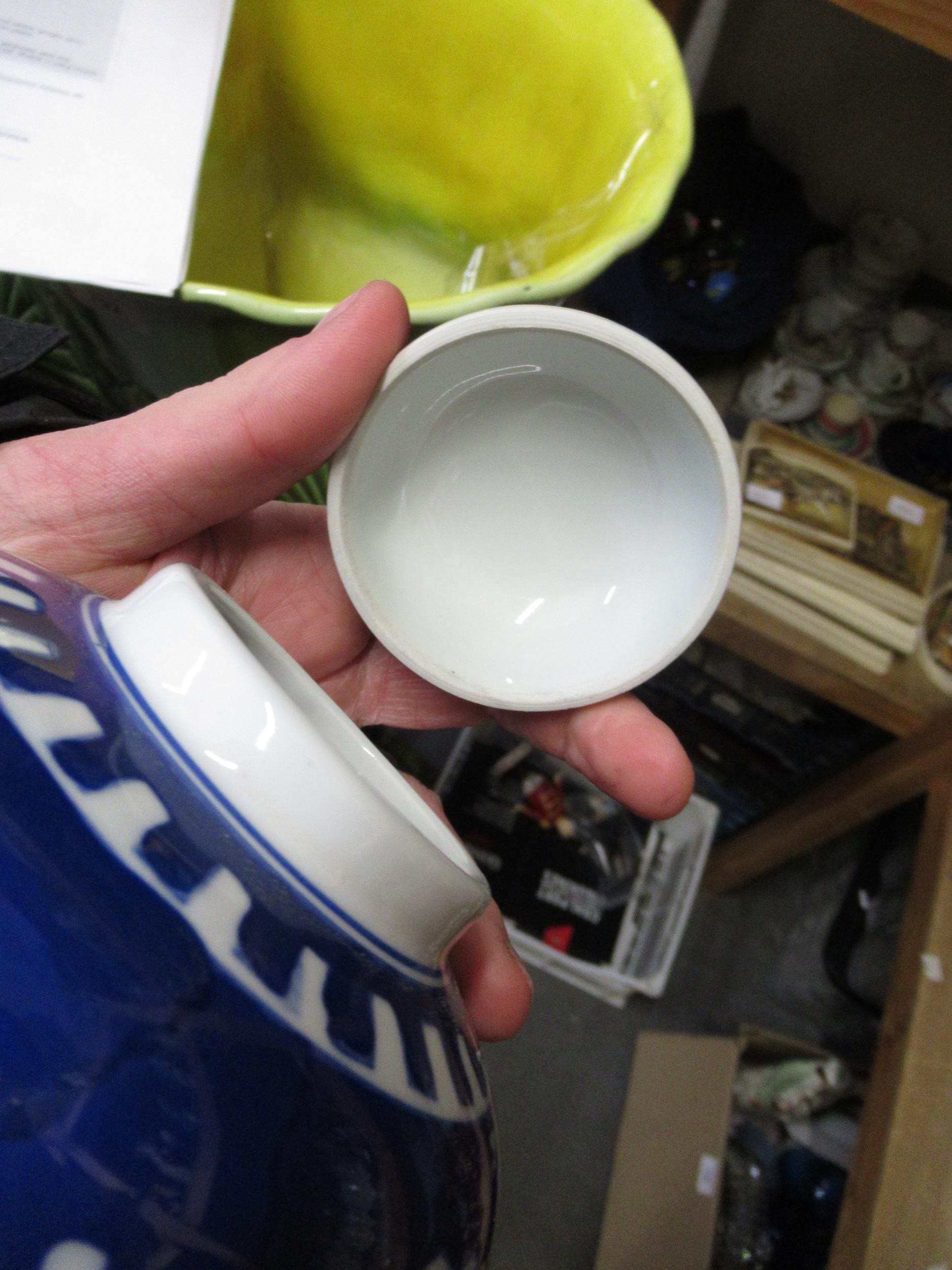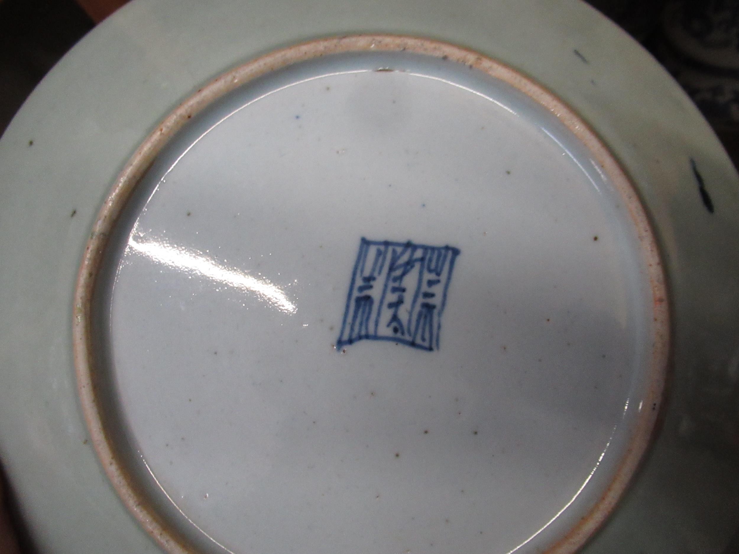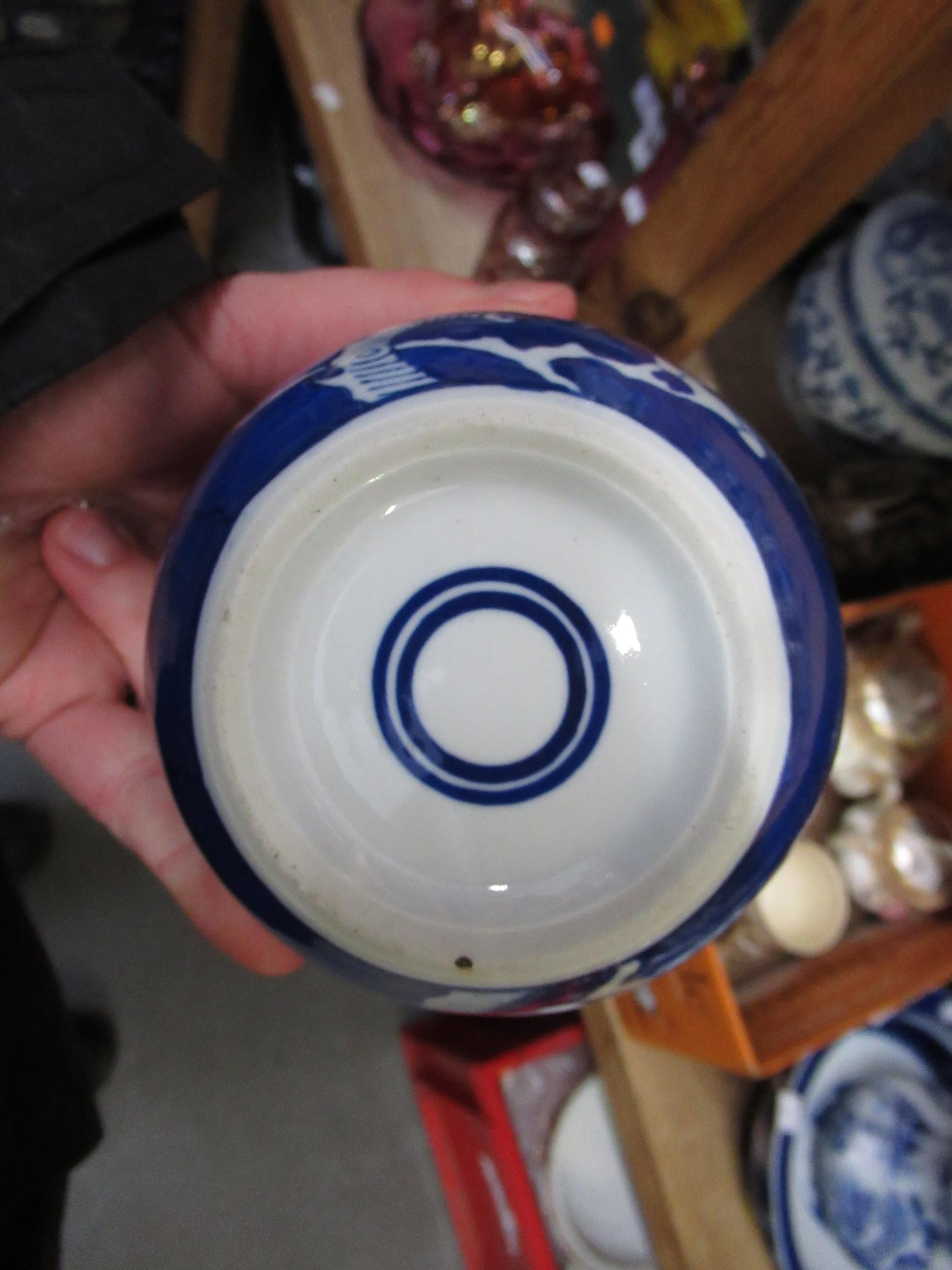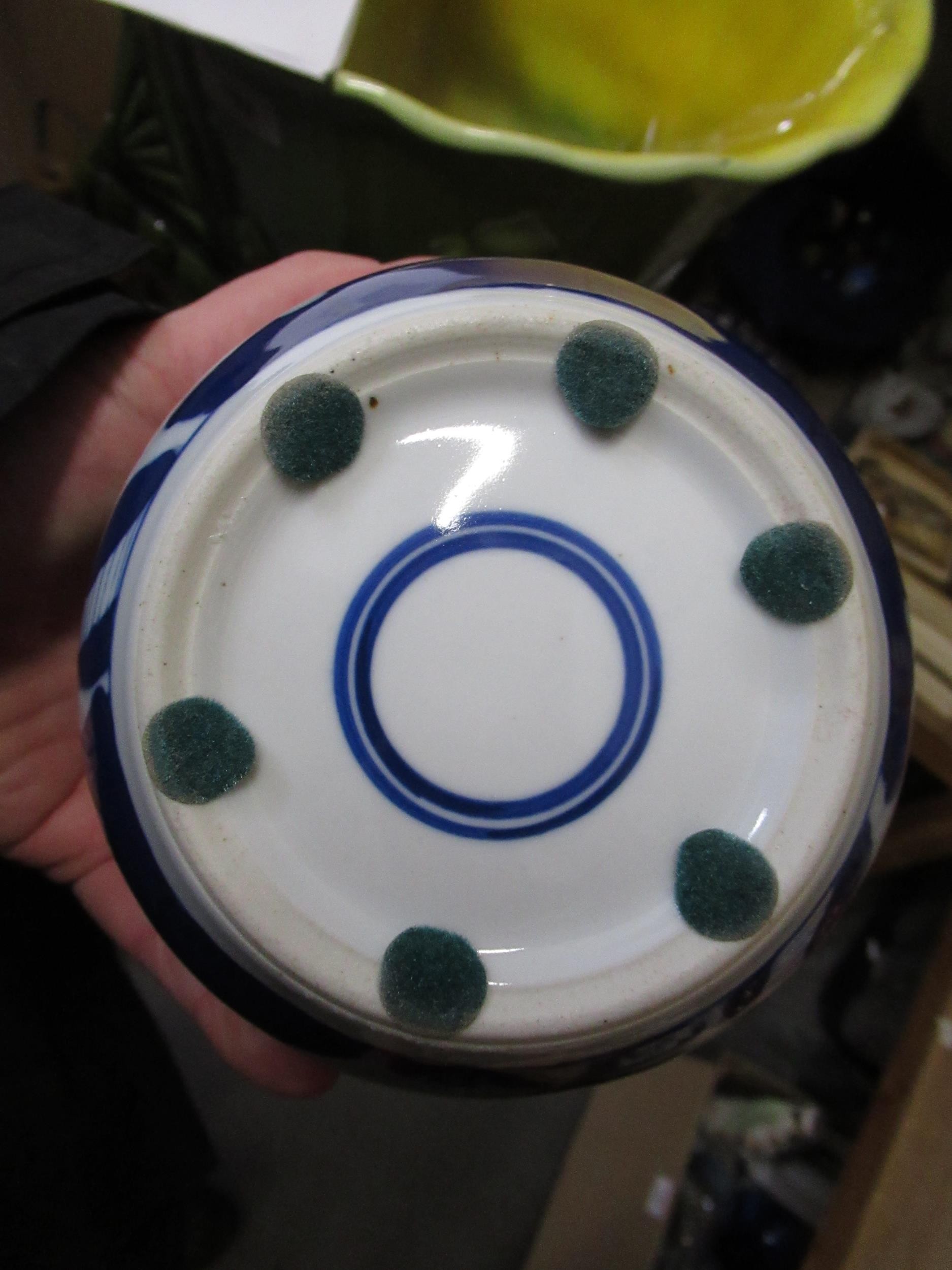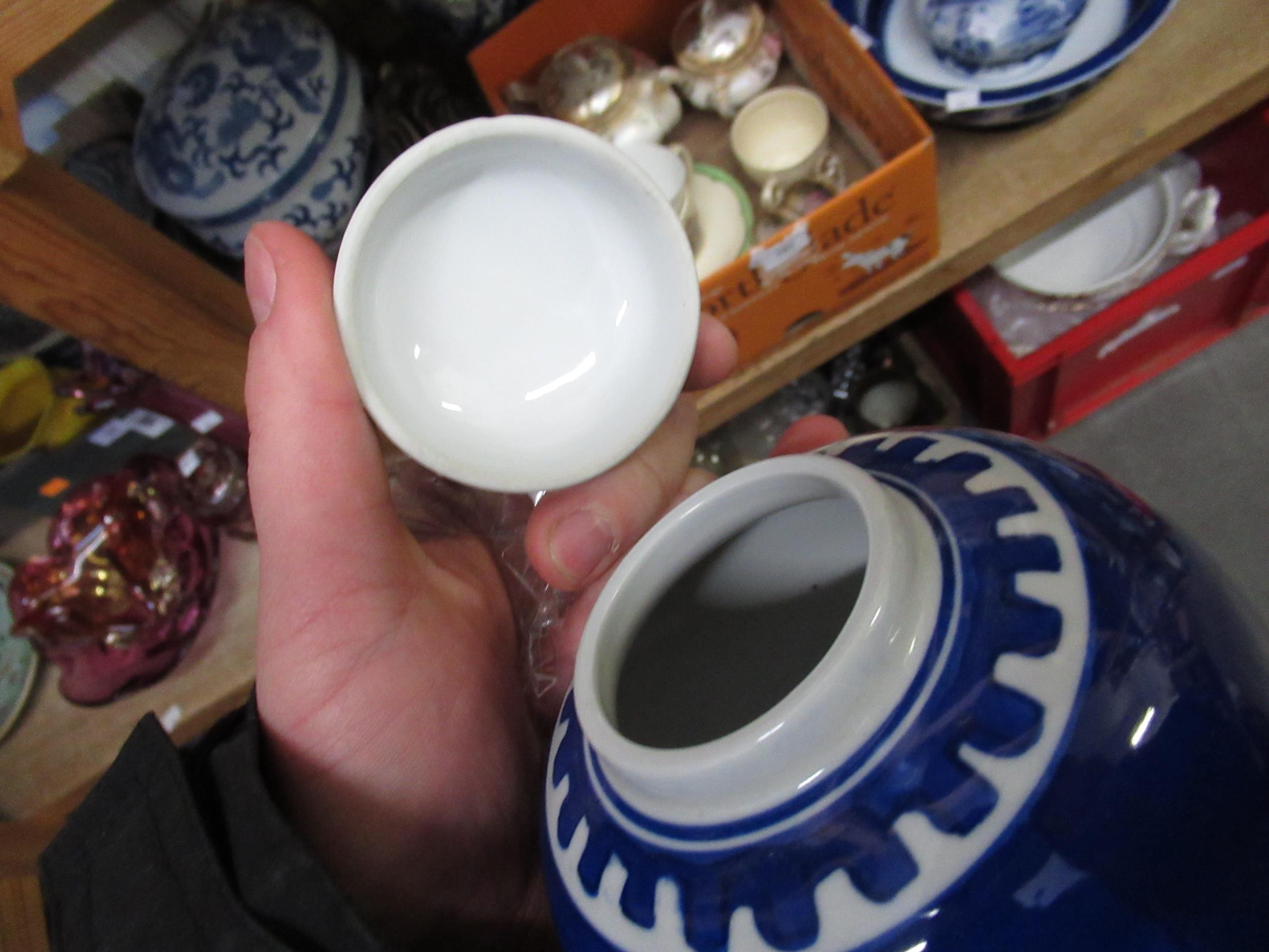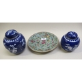 Two Chinese blue and white ginger jars, together with a Canton plate